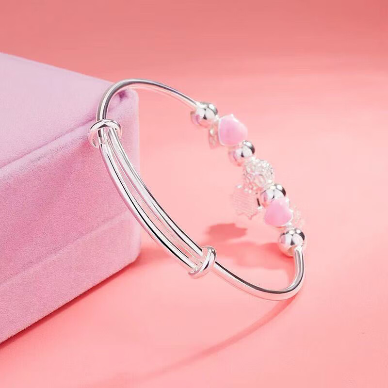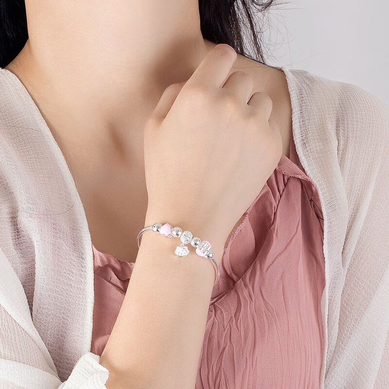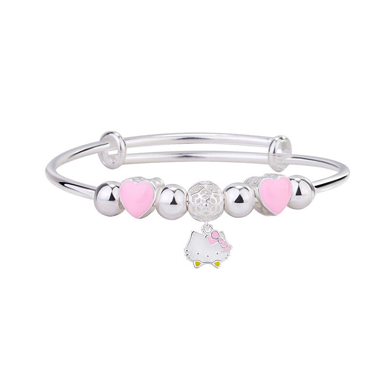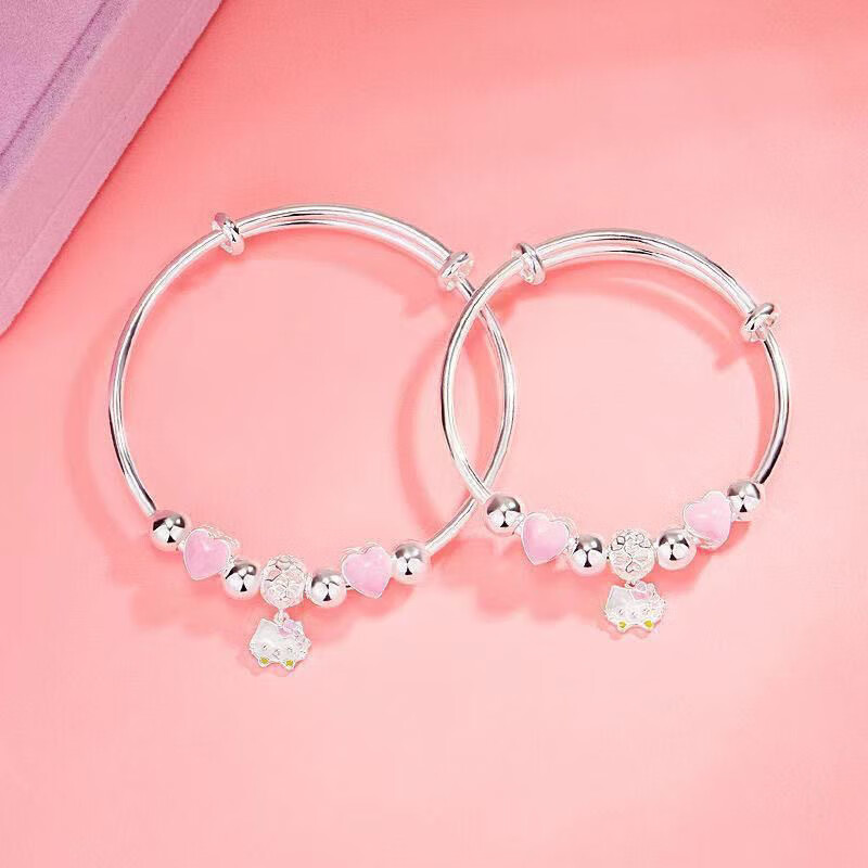 KZDhello kitty 999 sterling silver transfer bracelet female student bracelet Hello Kitty bracelet children's birthday gift hello kitty tag bracelet children's style same style Z166 same style