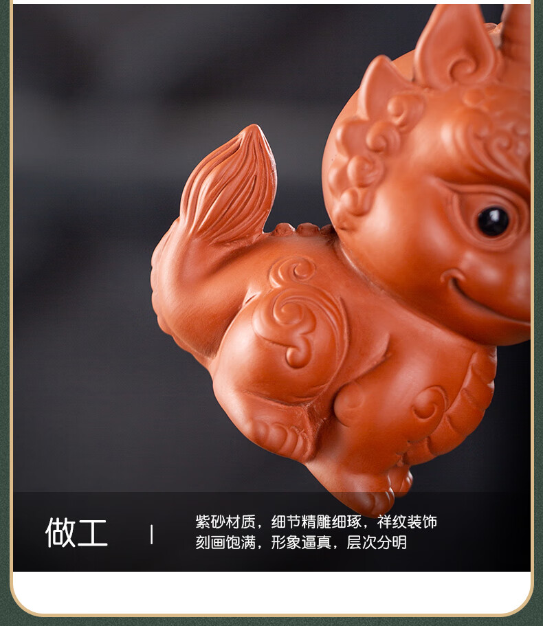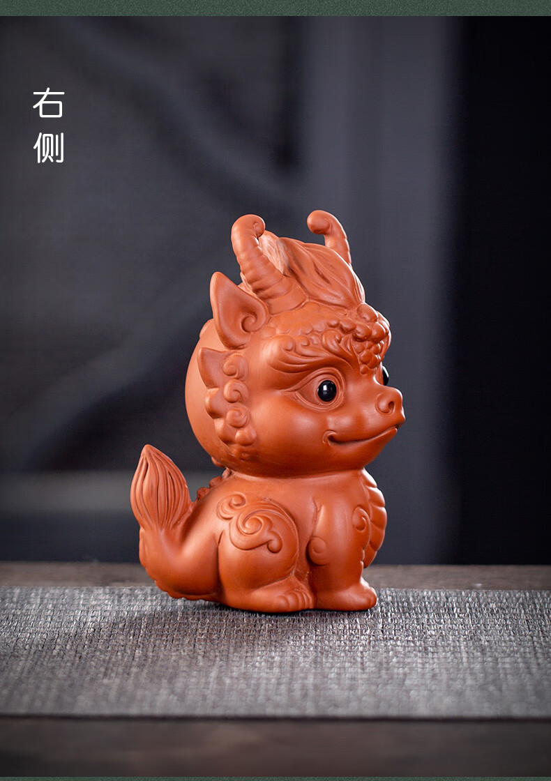 Fujian Yu Zisha Creative Lucky Dragon Tea Pet Ornament Decoration Can Raise Tea Table Mascot Guochao Tea Play Tea Ornament Zhuni-Double-Corned Dragon Tea Pet