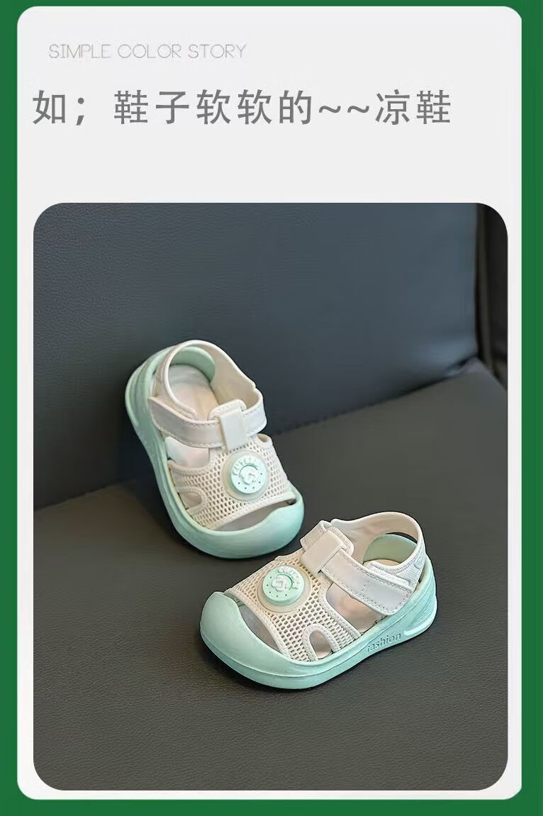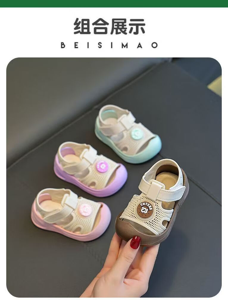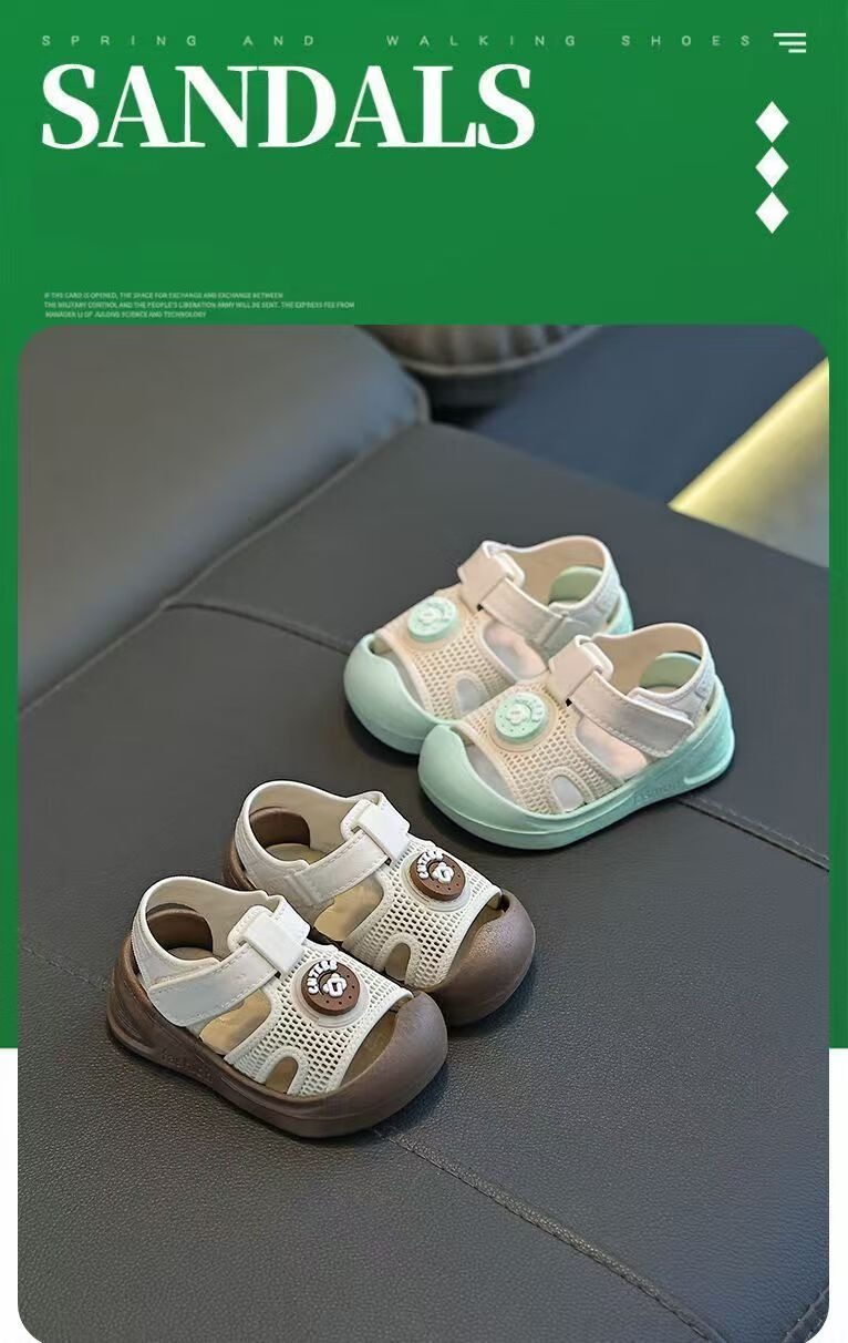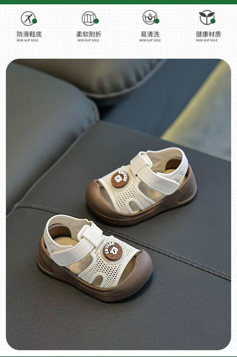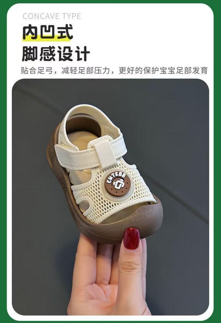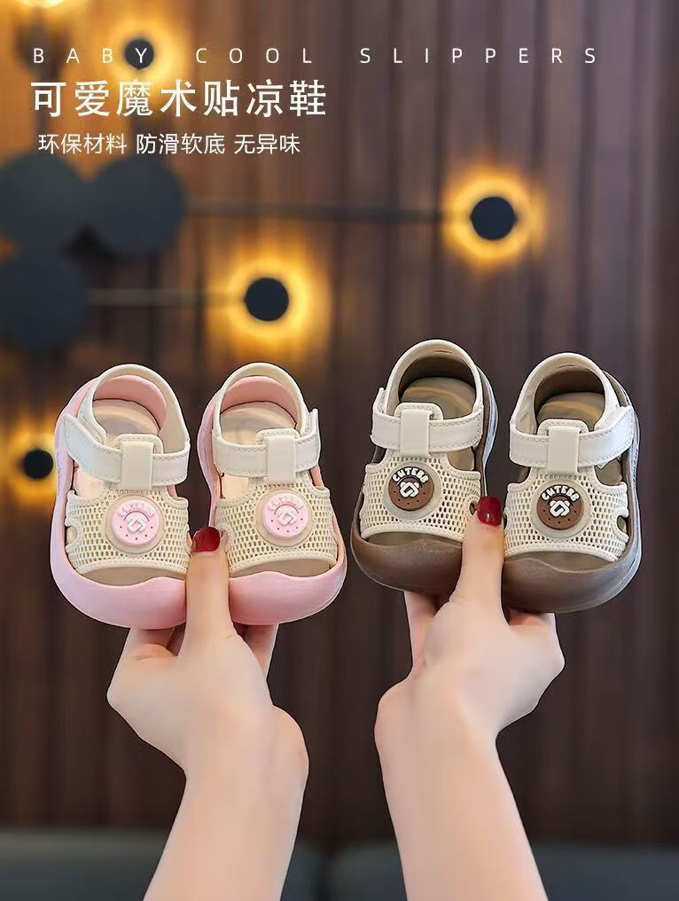 G.duck Little Yellow Duck Baby Toddler Shoes Children's Cute Baotou Anti-collision Anti-slip Fashionable Soft Sole Outer Wear Velcro Sandals Khaki Color 22 Inner Length 13CM
