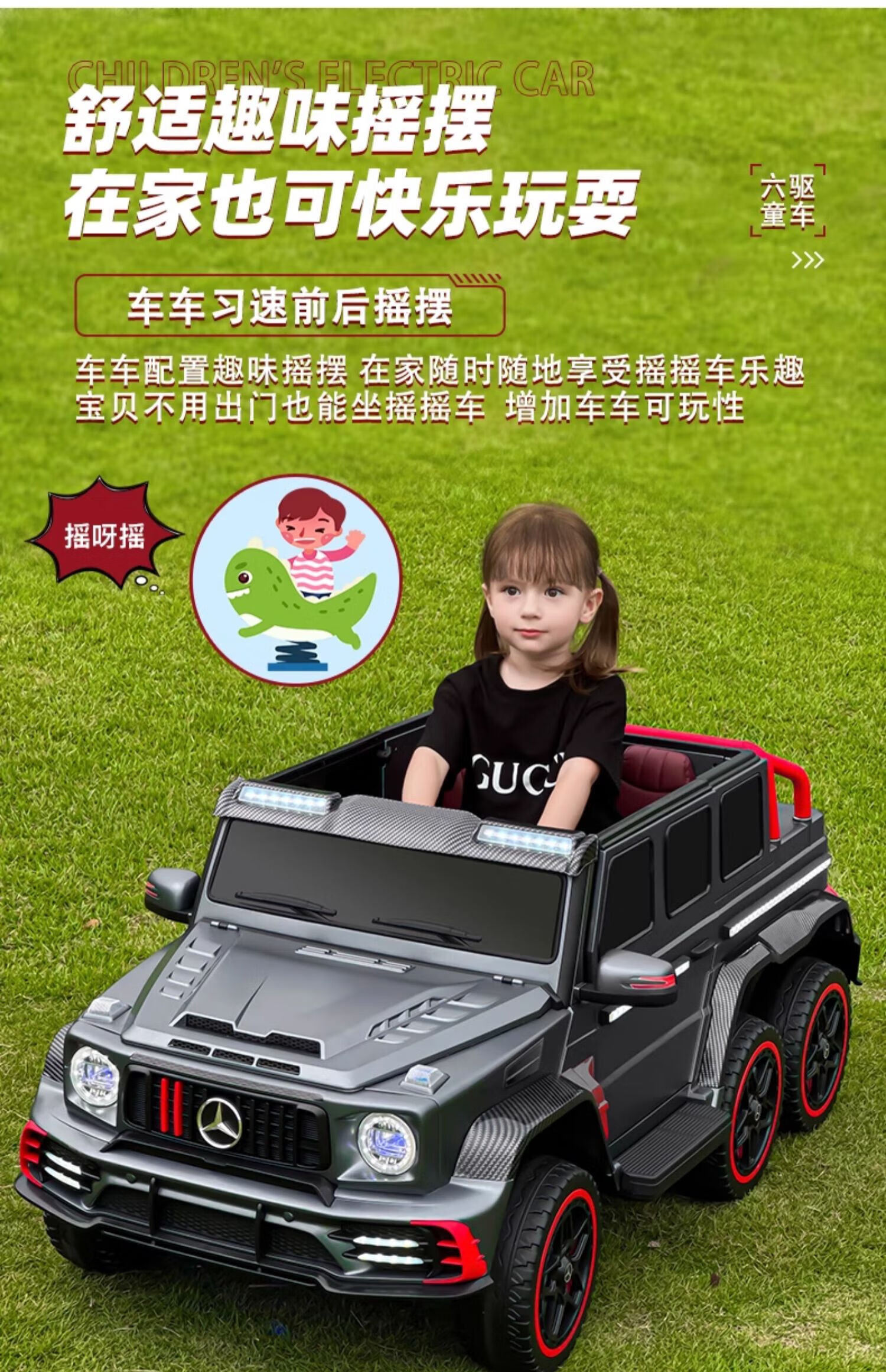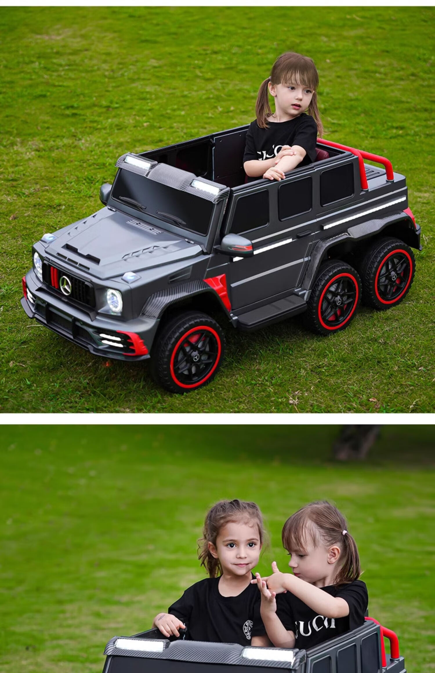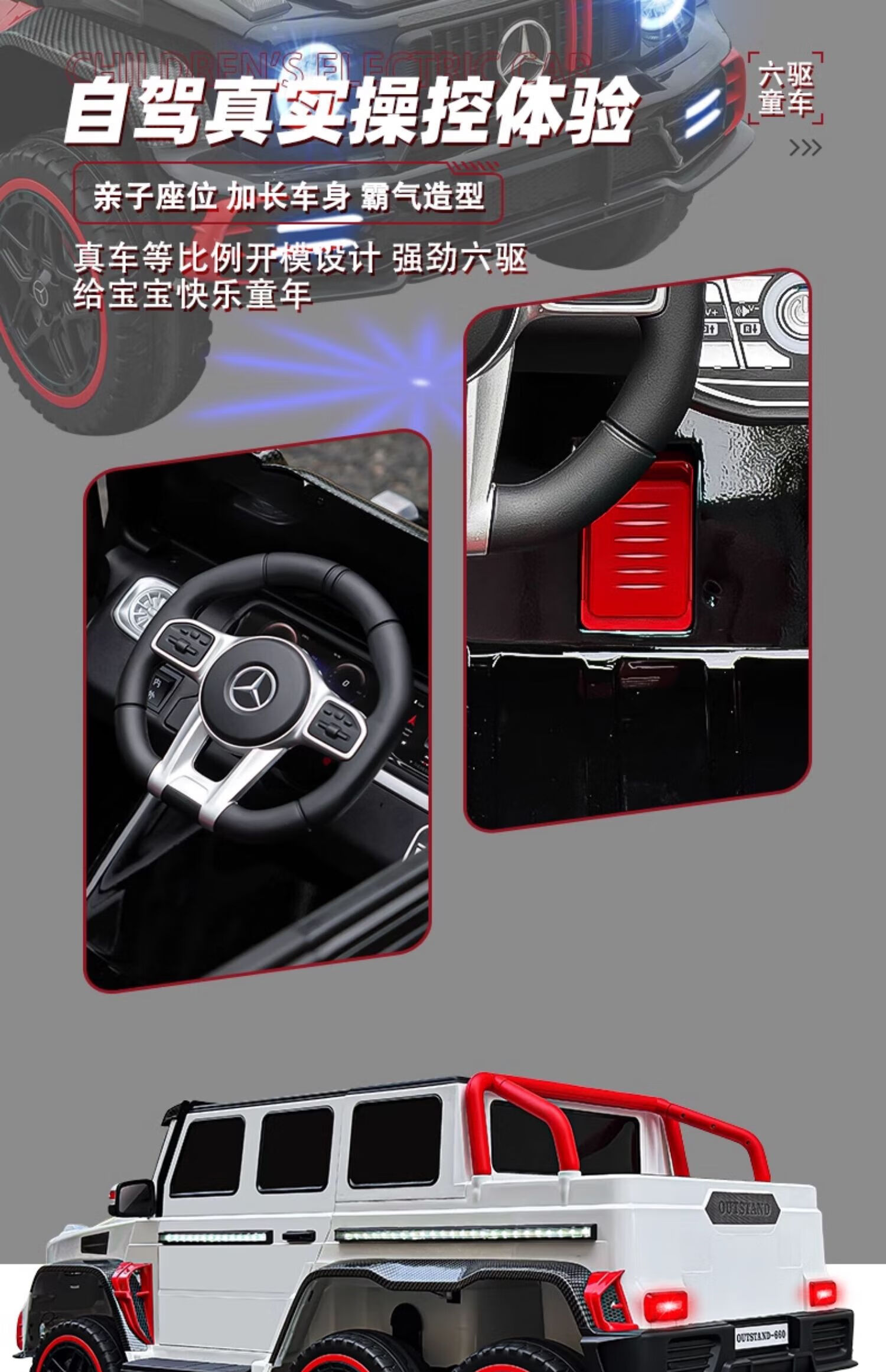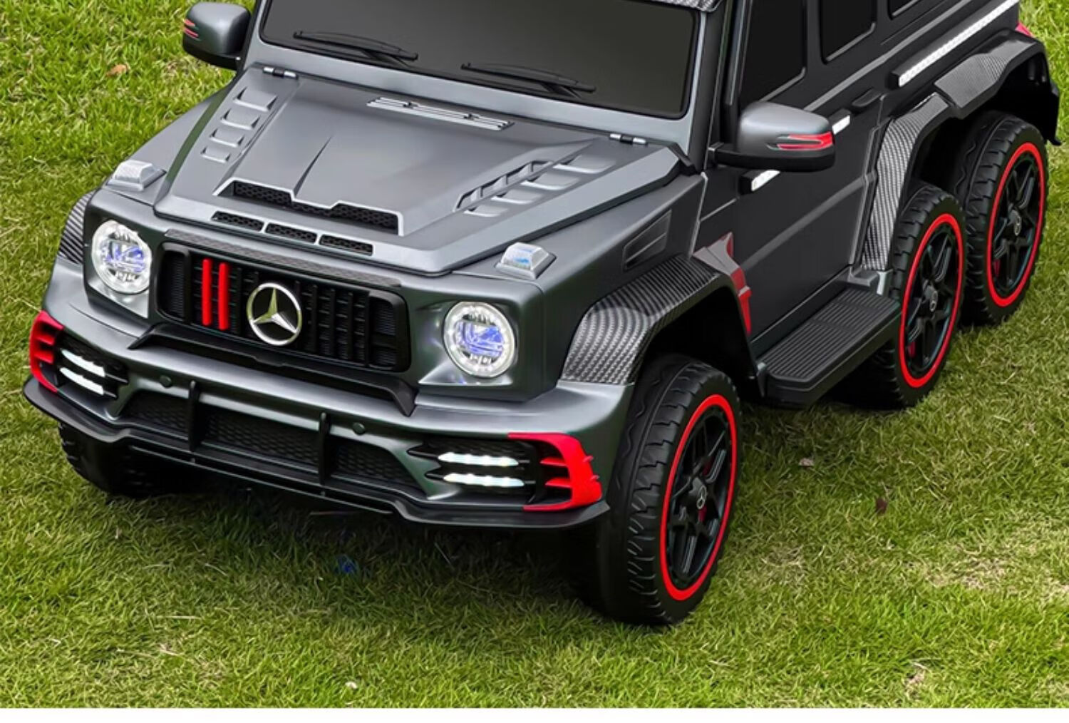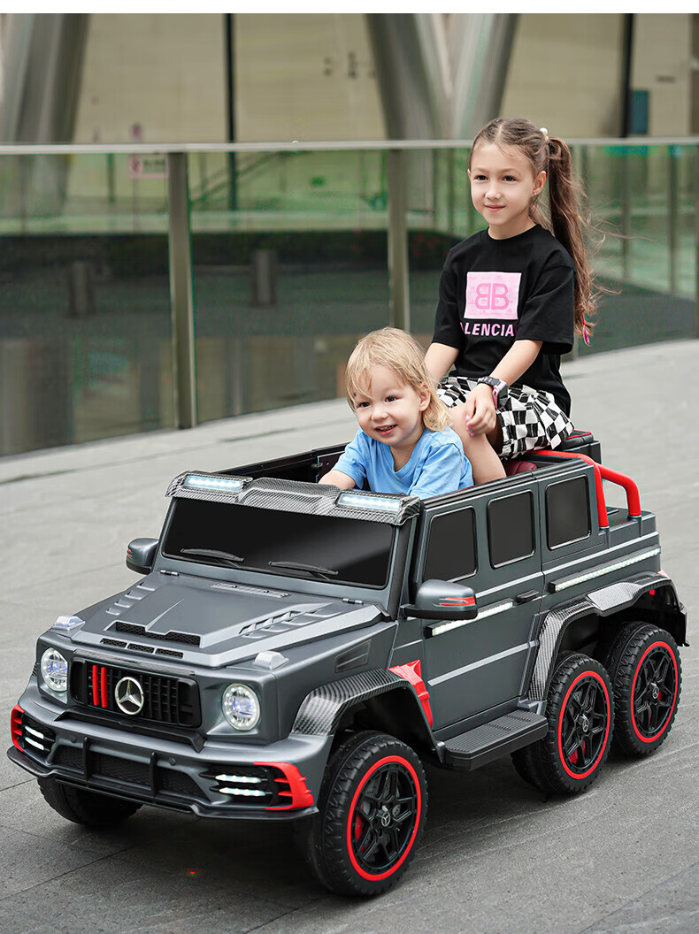 Samat Big G children's electric car with six wheels, can sit adults with remote control, off-road electric car for boys and girls, baby toys, painted gray, can be stored, can sit adults, Chaowei battery six-drive leather seat, soft wheels
