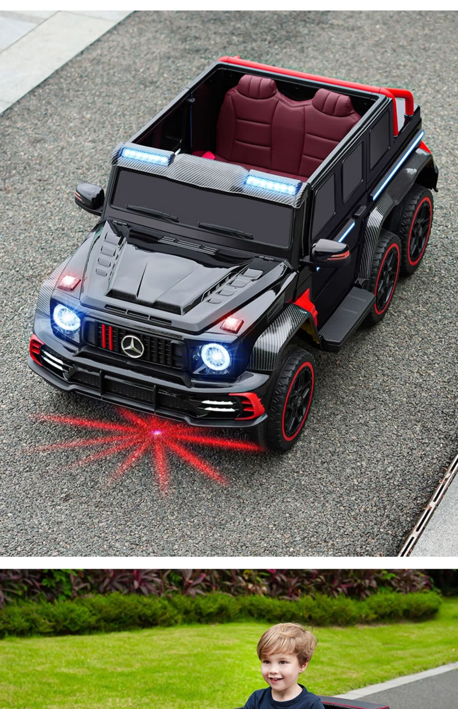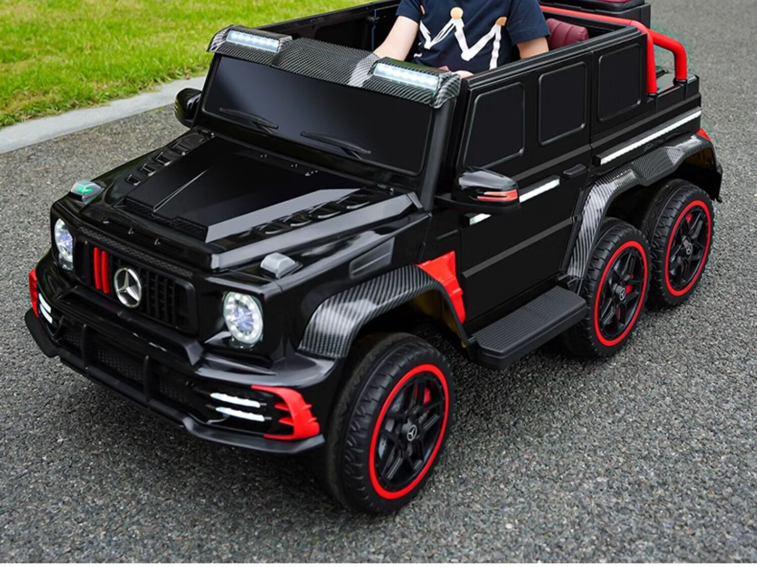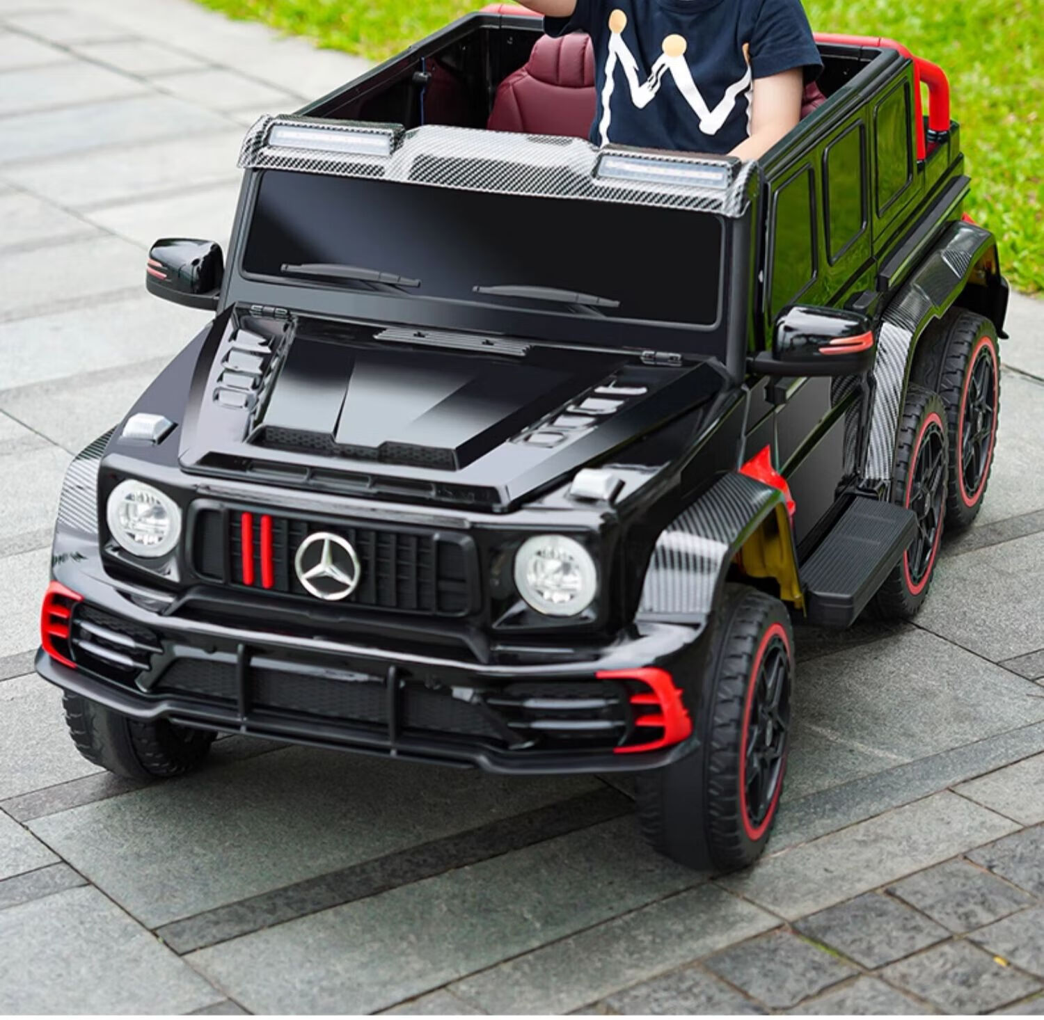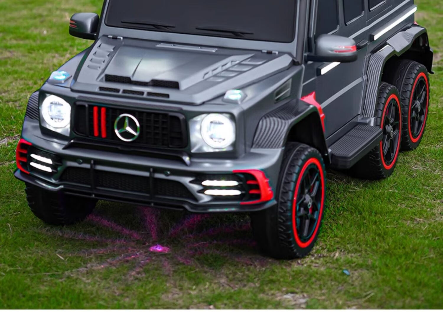 Samat Big G children's electric car with six wheels, can sit adults with remote control, off-road electric car for boys and girls, baby toys, painted gray, can be stored, can sit adults, Chaowei battery six-drive leather seat, soft wheels