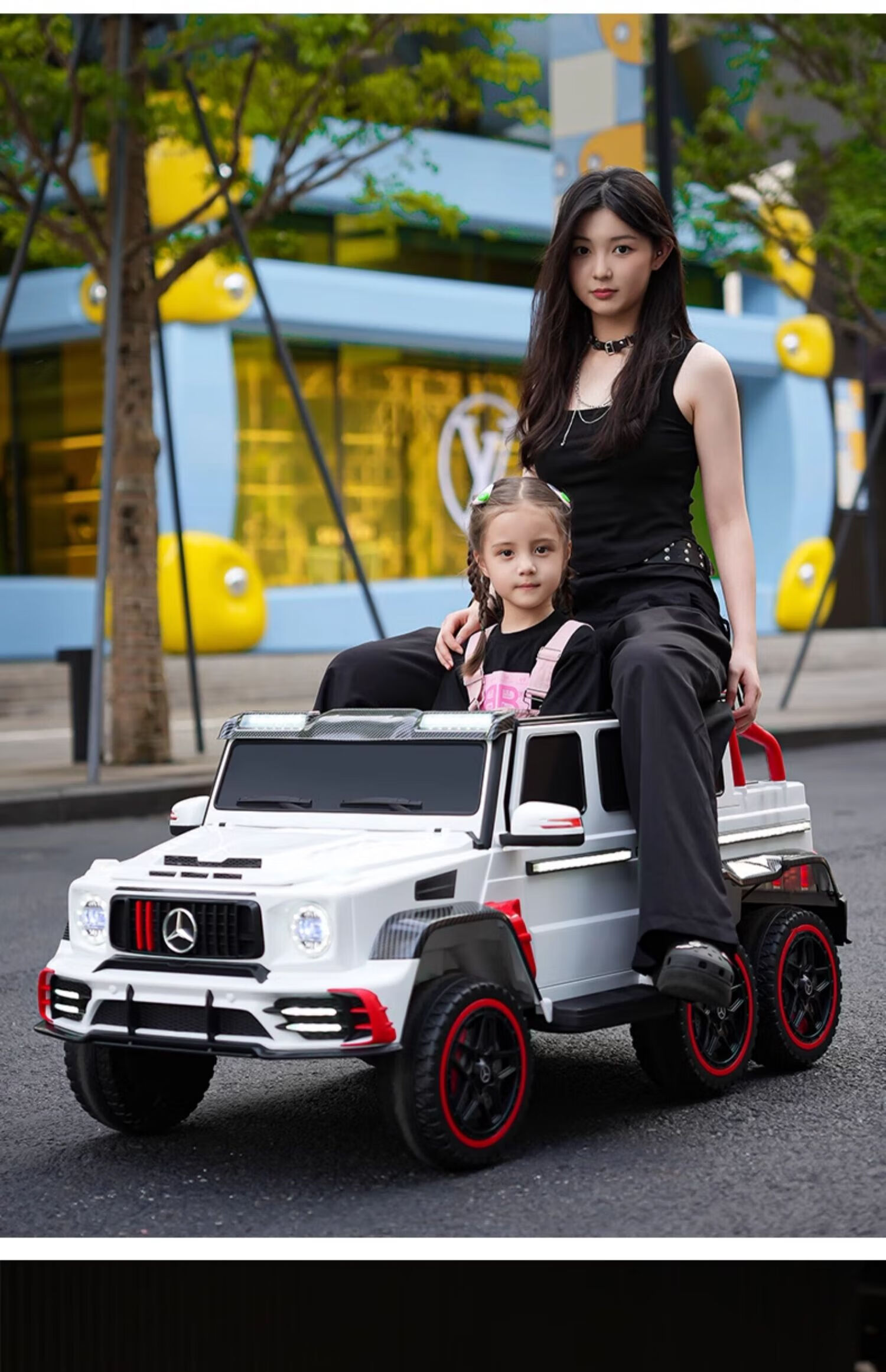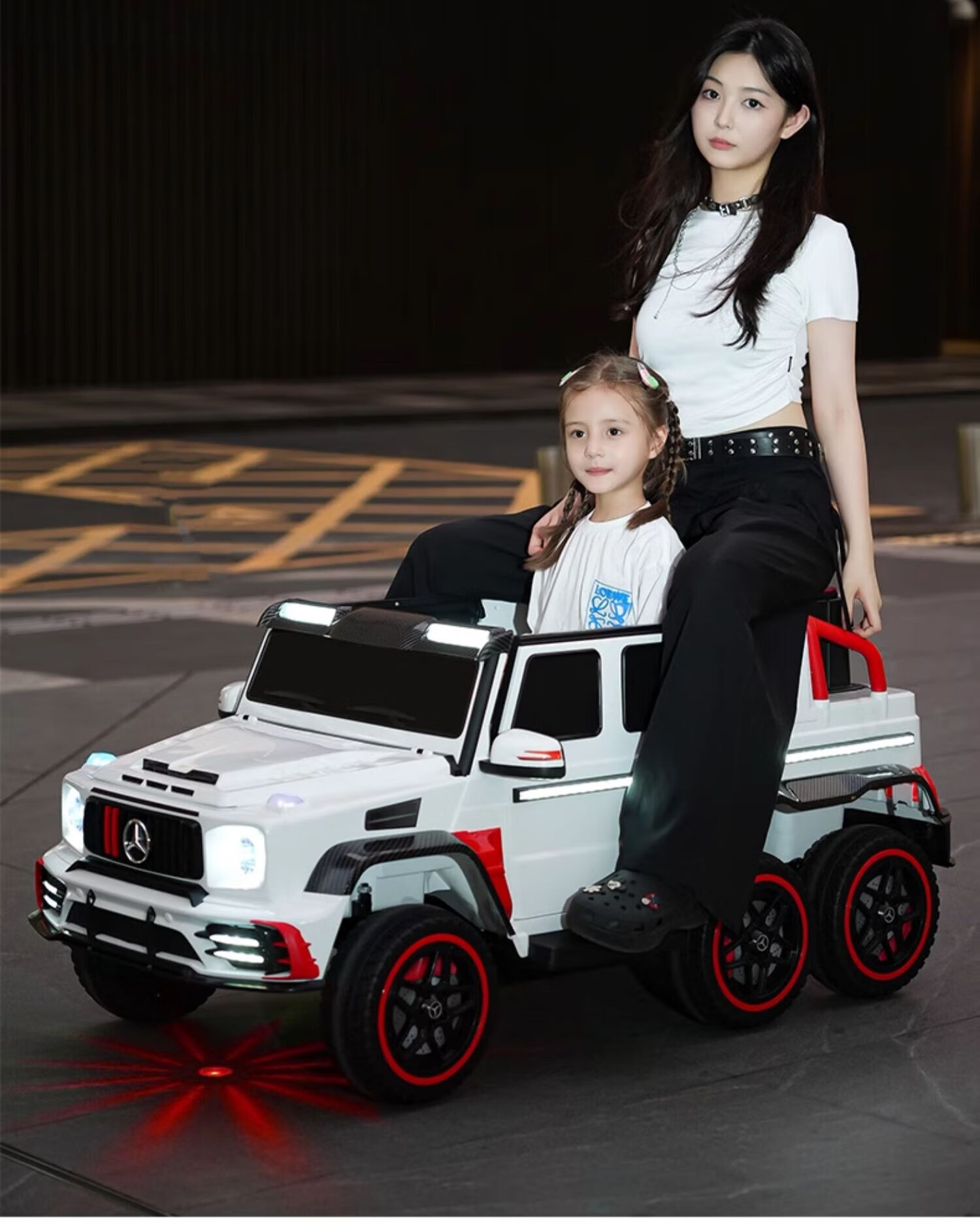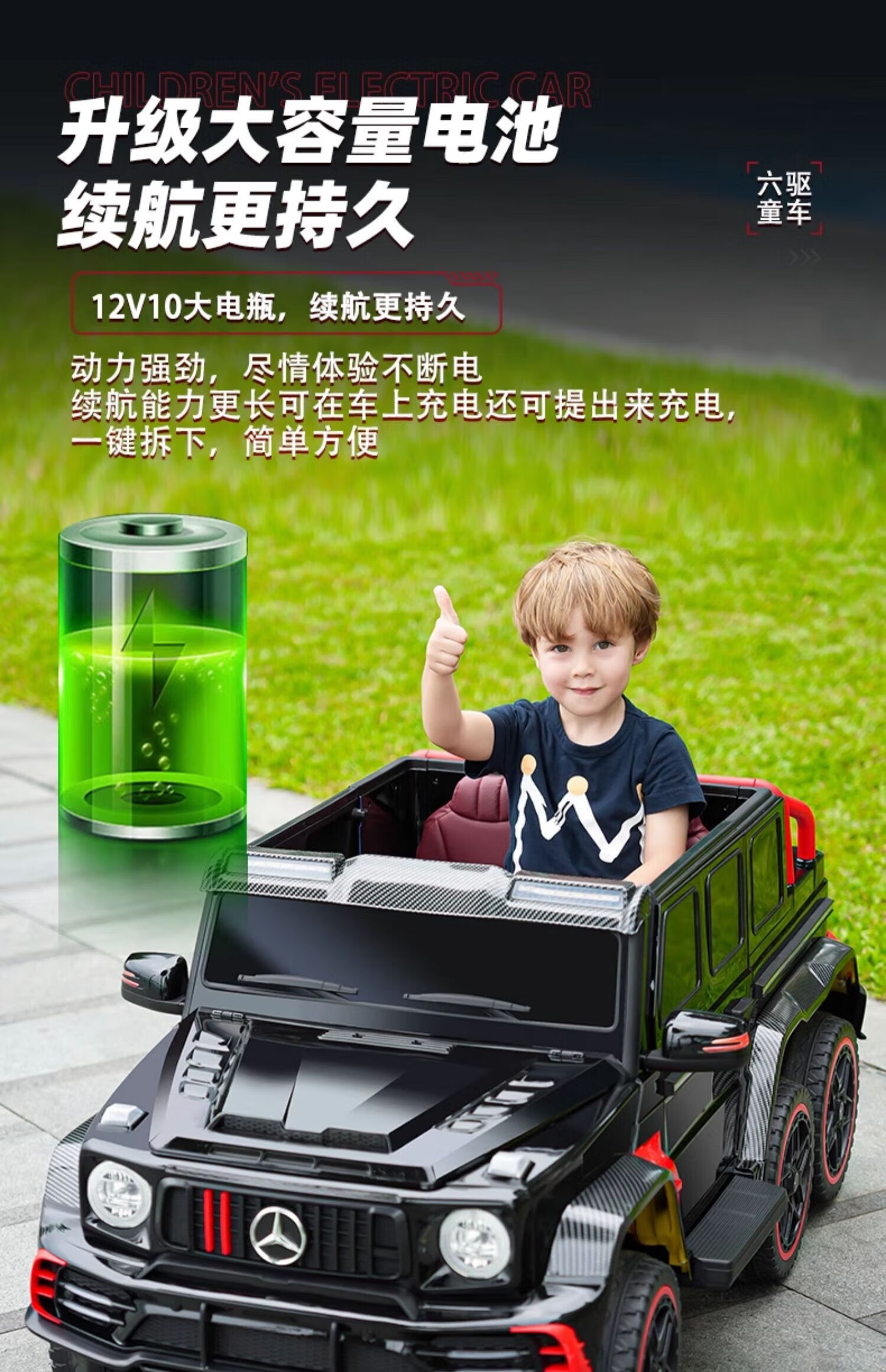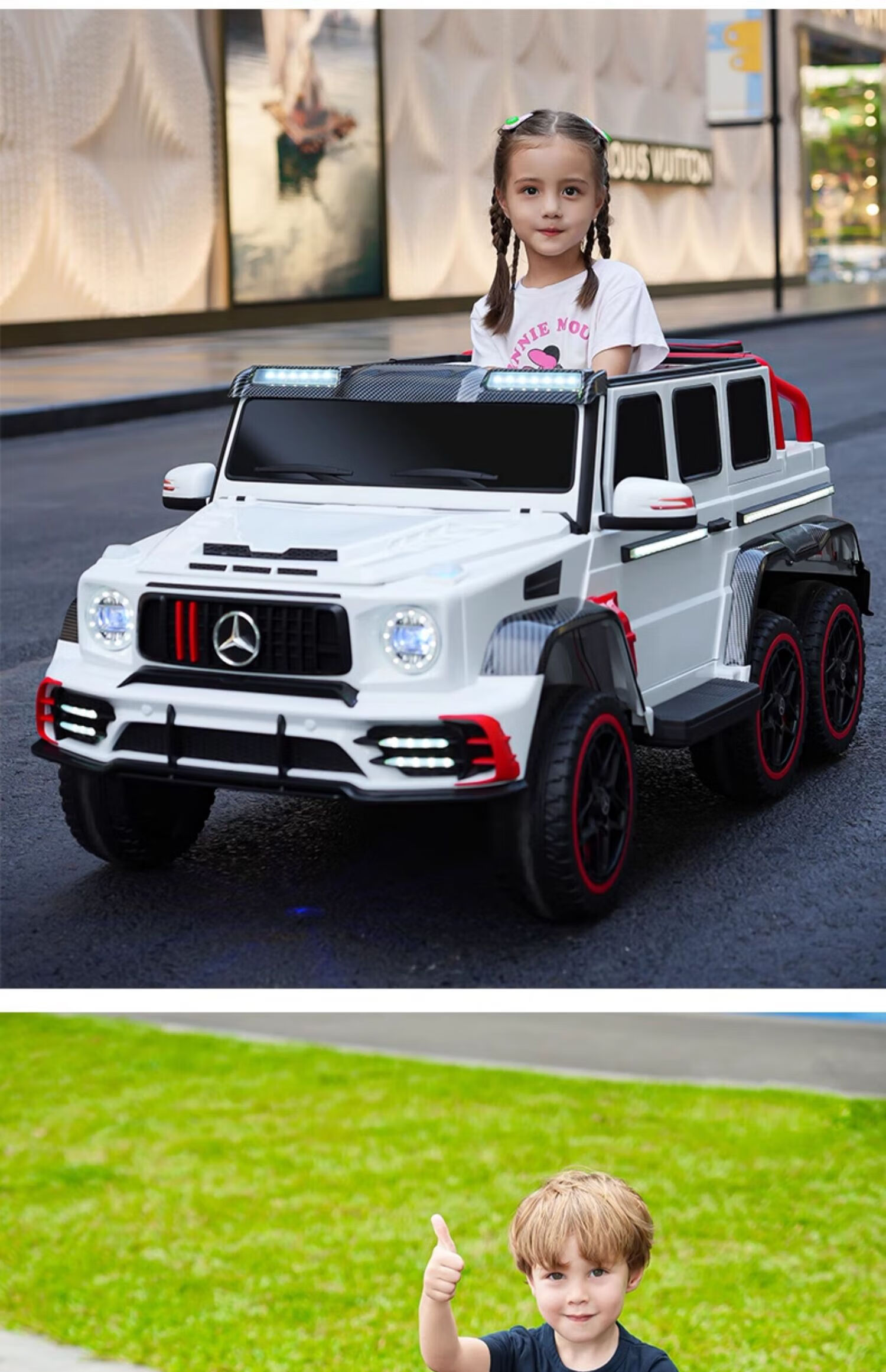 Samat Big G children's electric car with six wheels, can sit adults with remote control, off-road electric car for boys and girls, baby toys, painted gray, can be stored, can sit adults, Chaowei battery six-drive leather seat, soft wheels