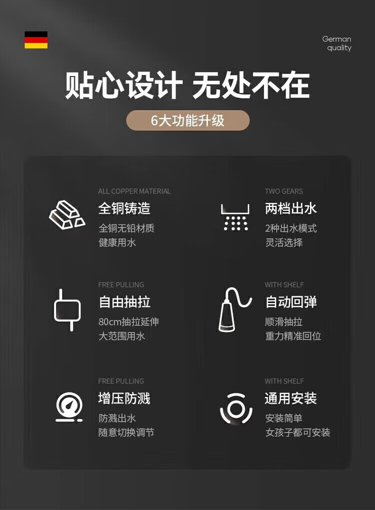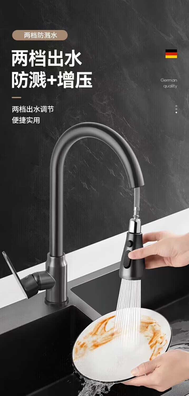 JOMOO all-copper splash-proof hot and cold faucet kitchen pull-out sink faucet gun gray model all-copper pull-out three-position faucet