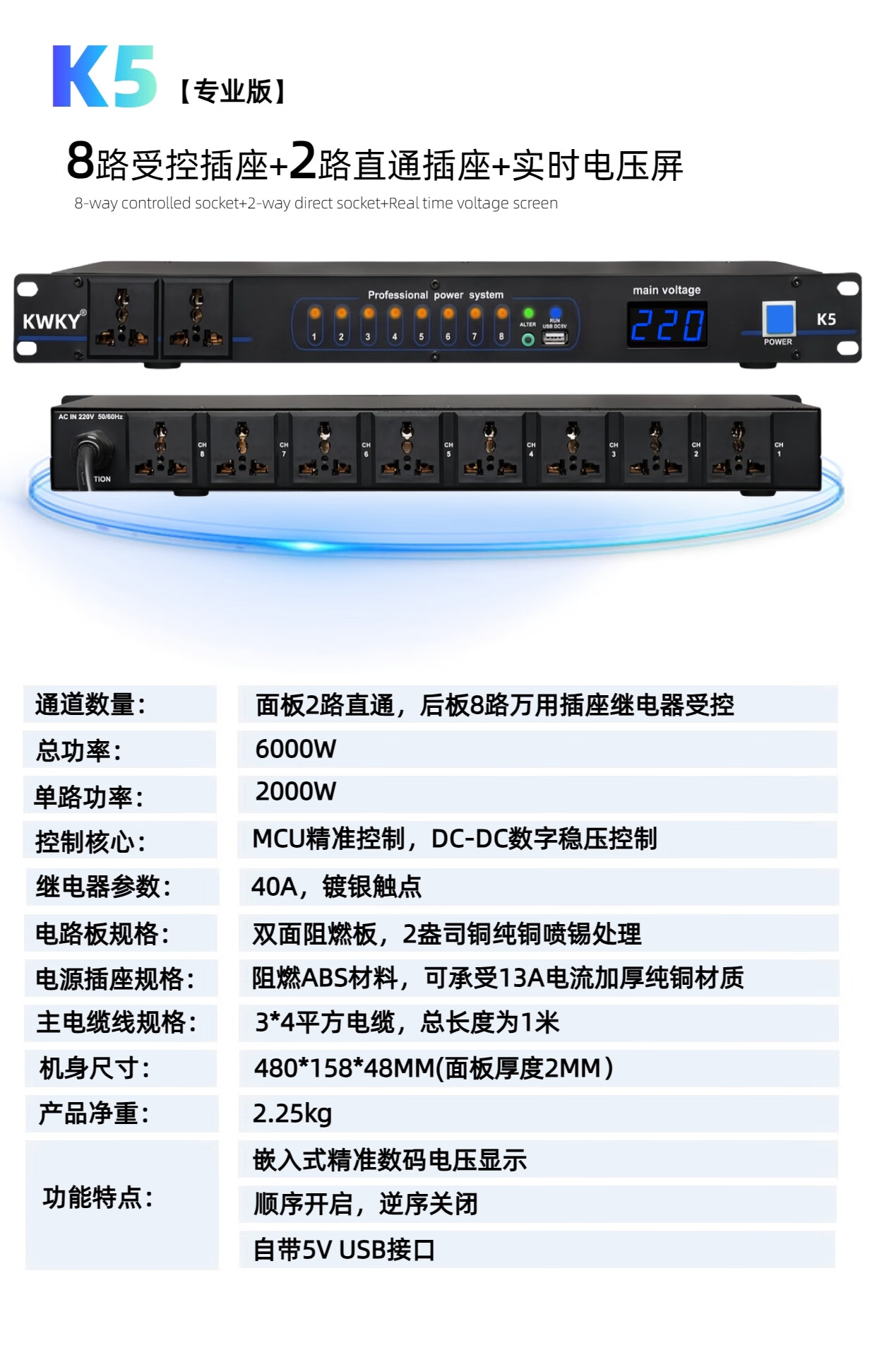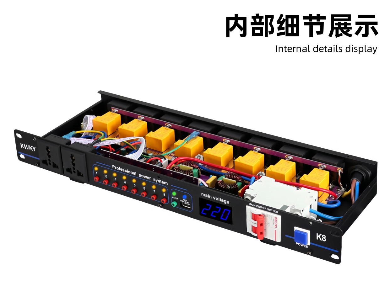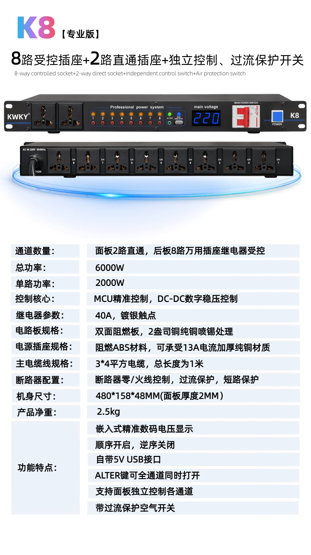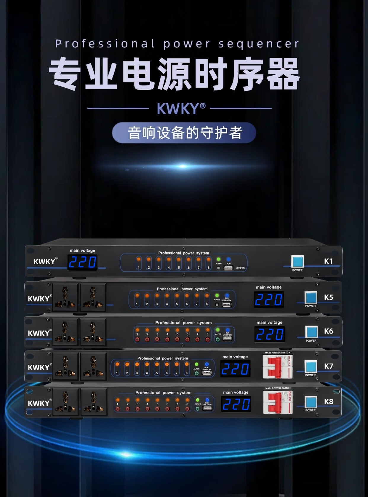 KWKY professional power sequencer with filter engineering conference stage wedding household air switch independent switching power supply controller 8-way high power + voltage screen K1 filter model