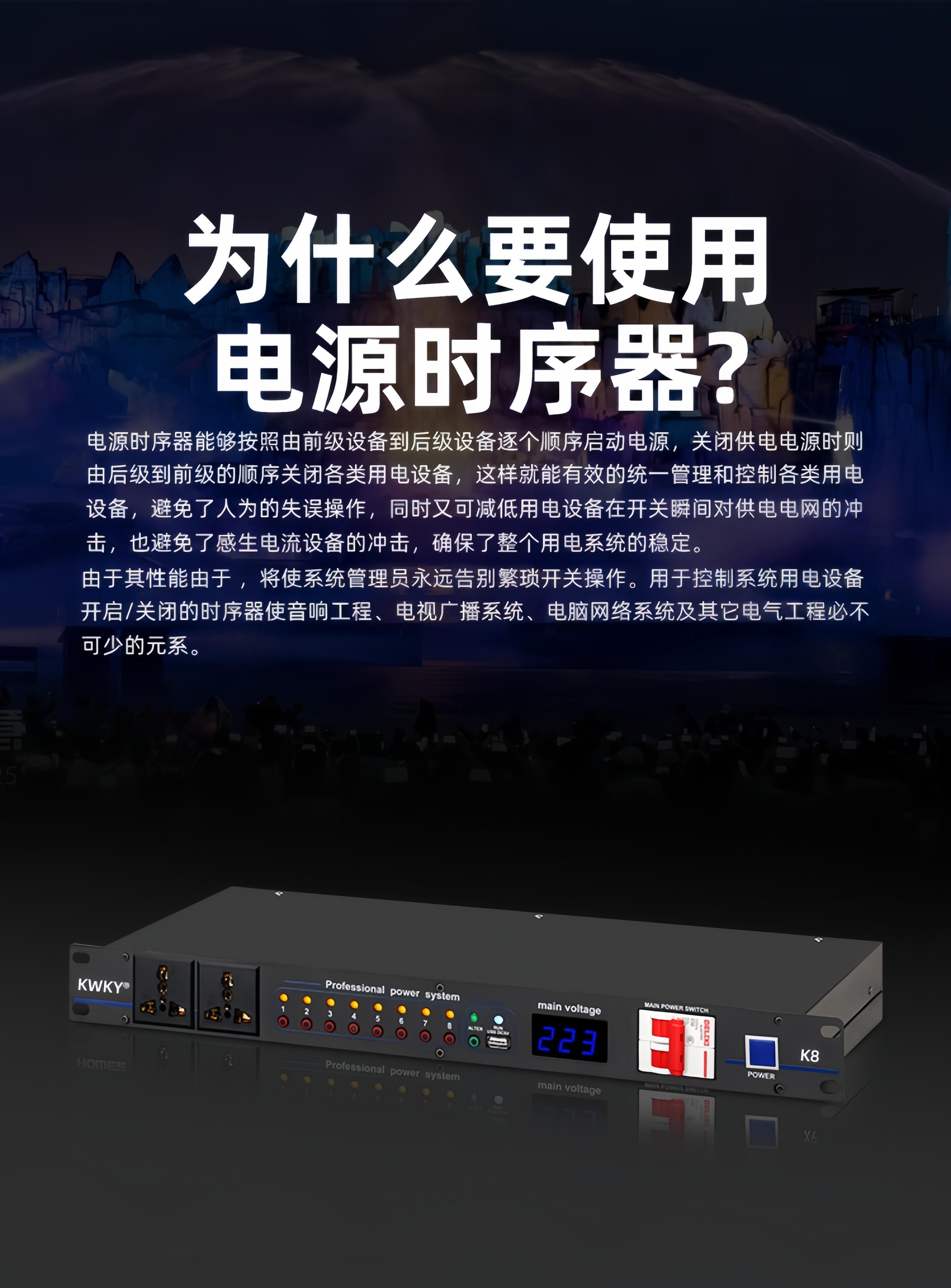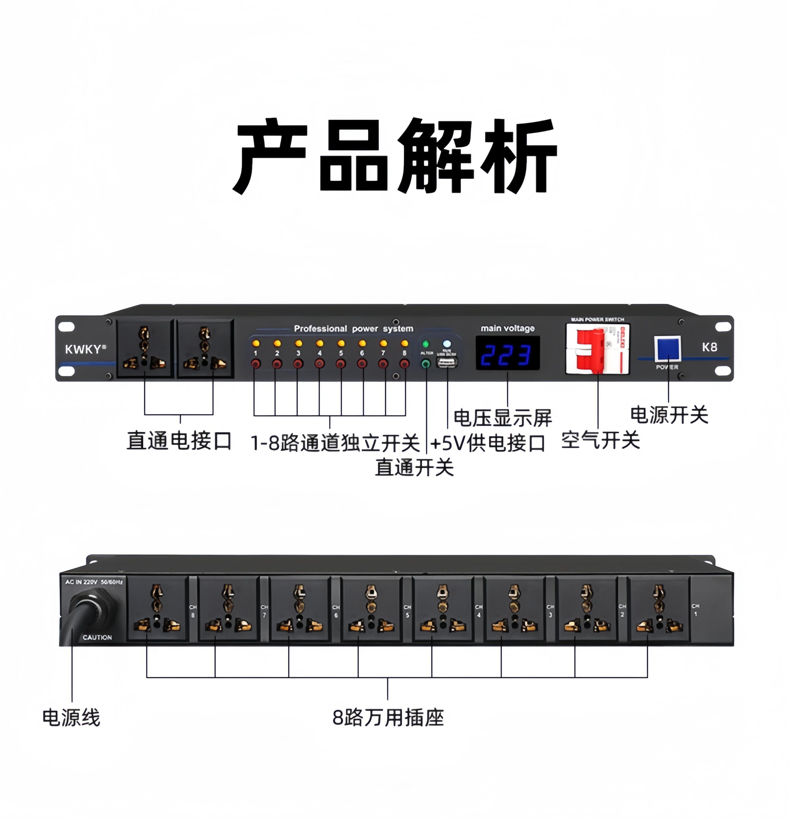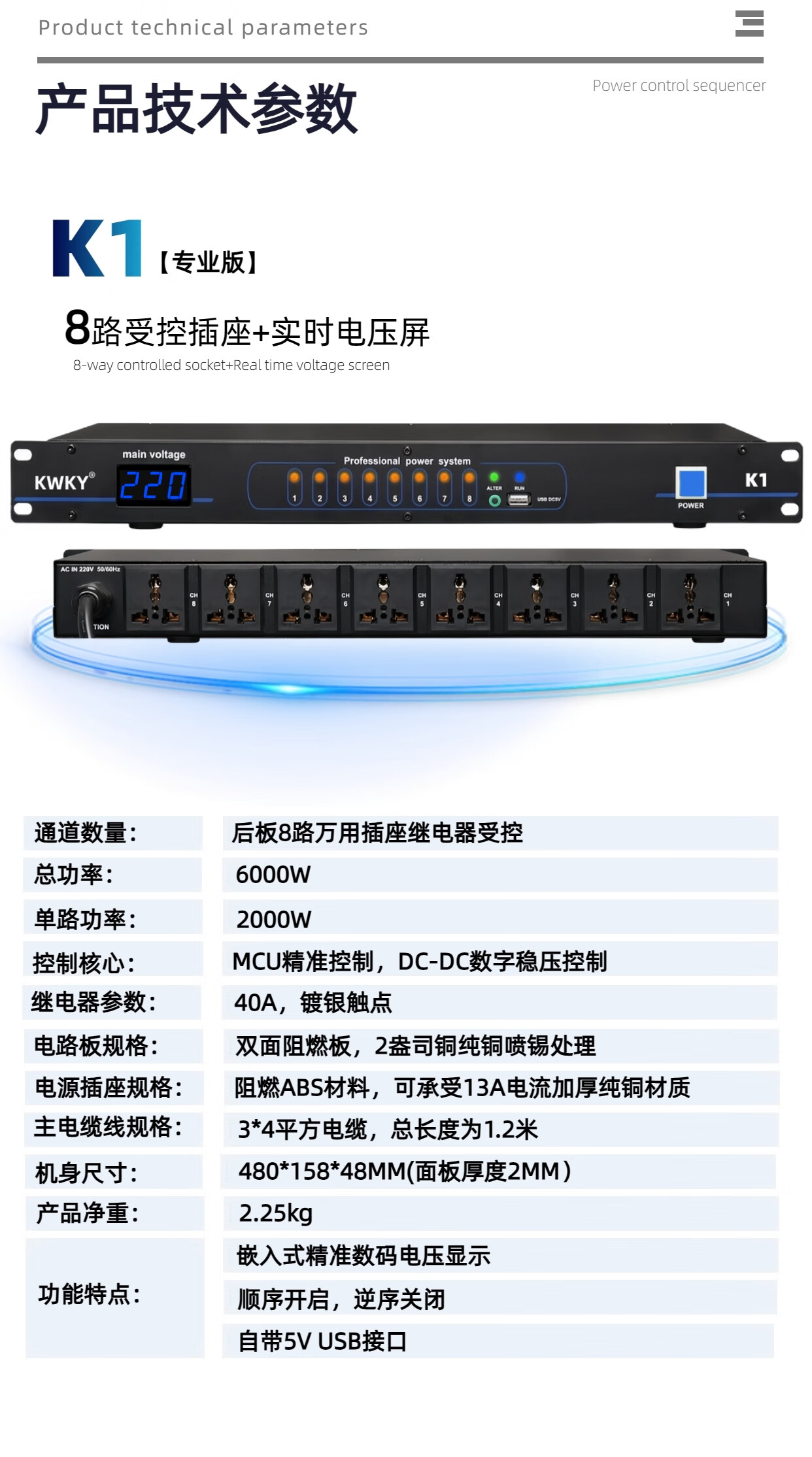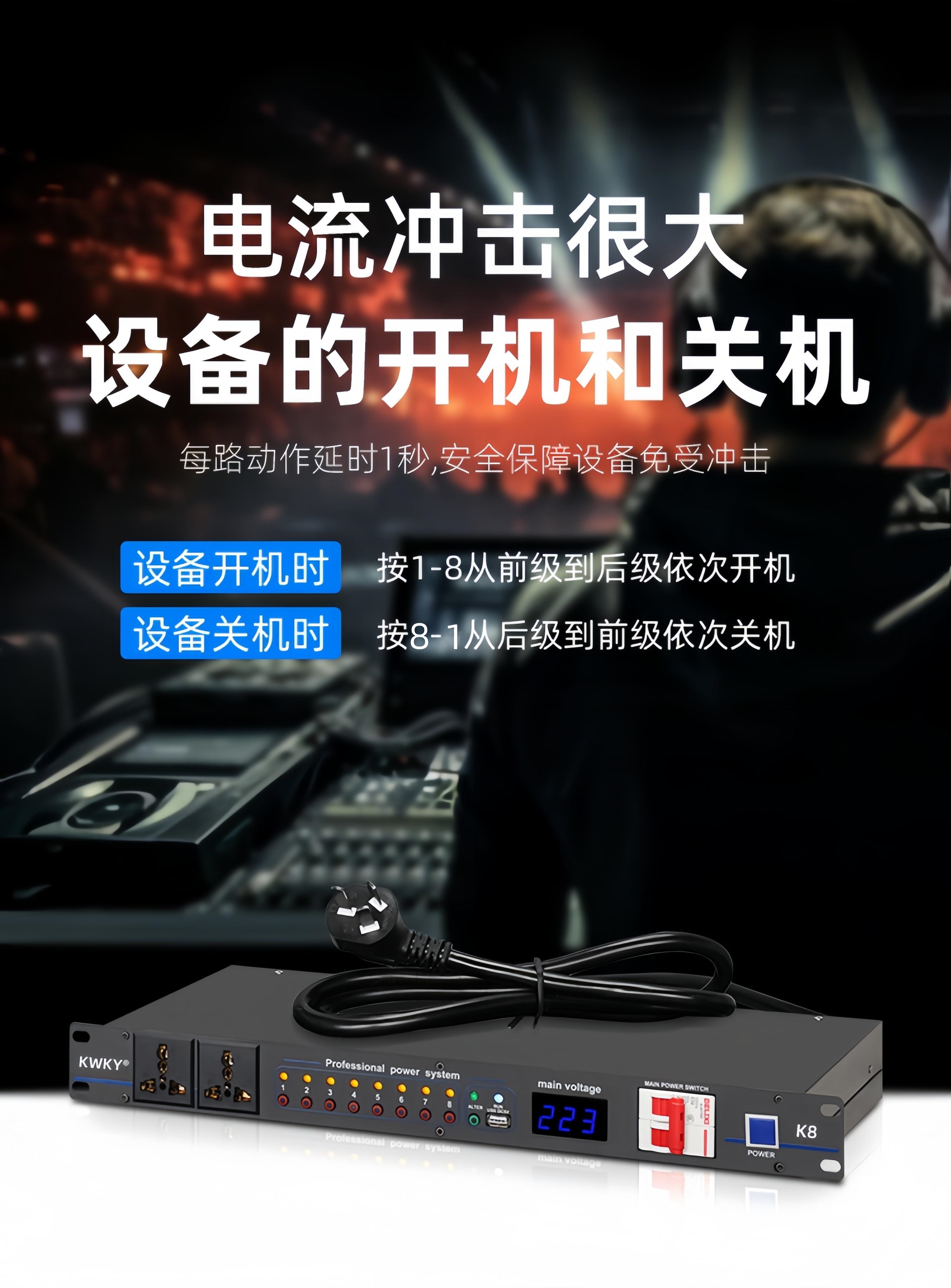 KWKY professional power sequencer with filter engineering conference stage wedding household air switch independent switching power supply controller 8-way high power + voltage screen K1 filter model