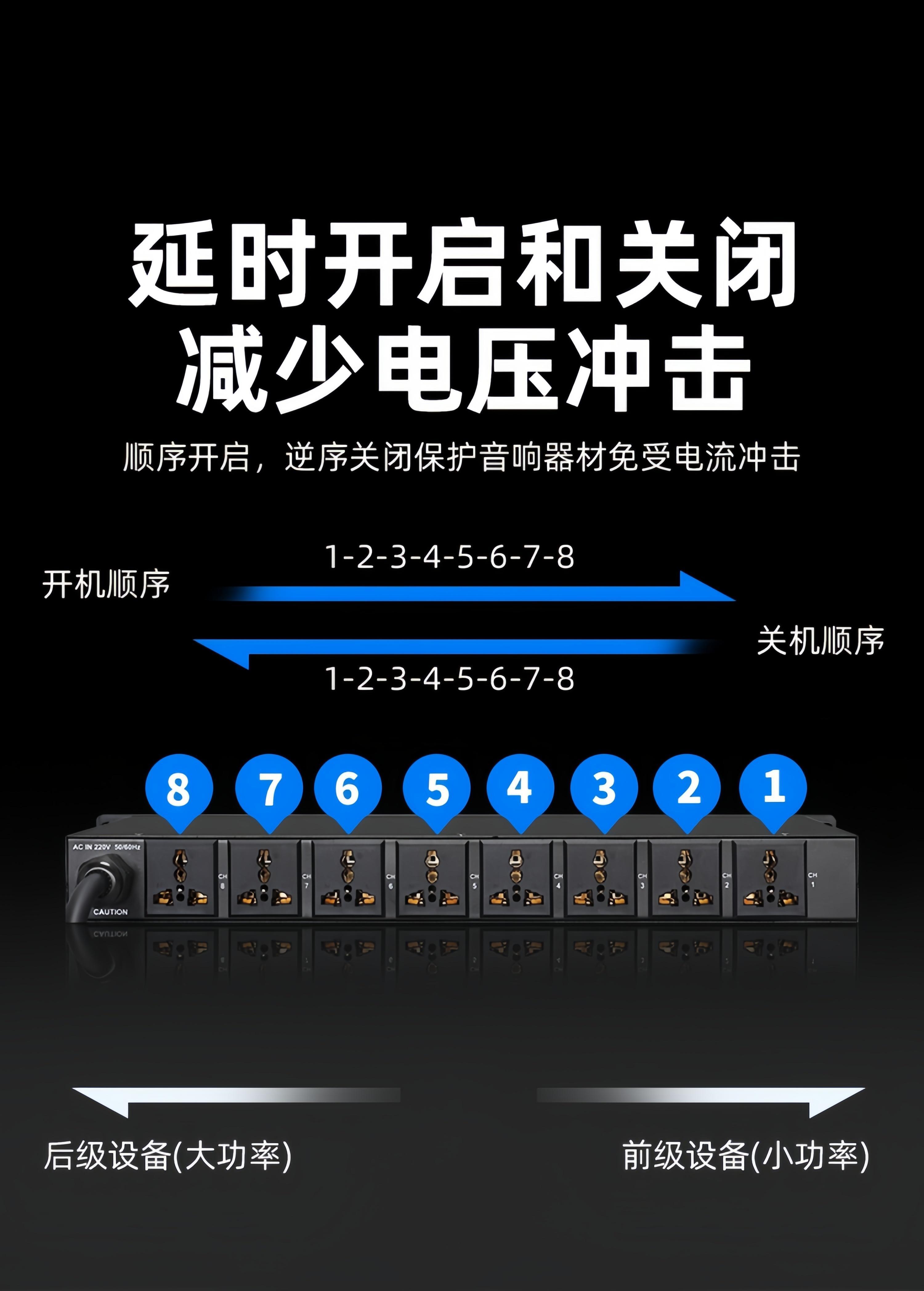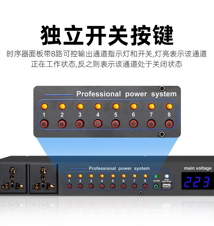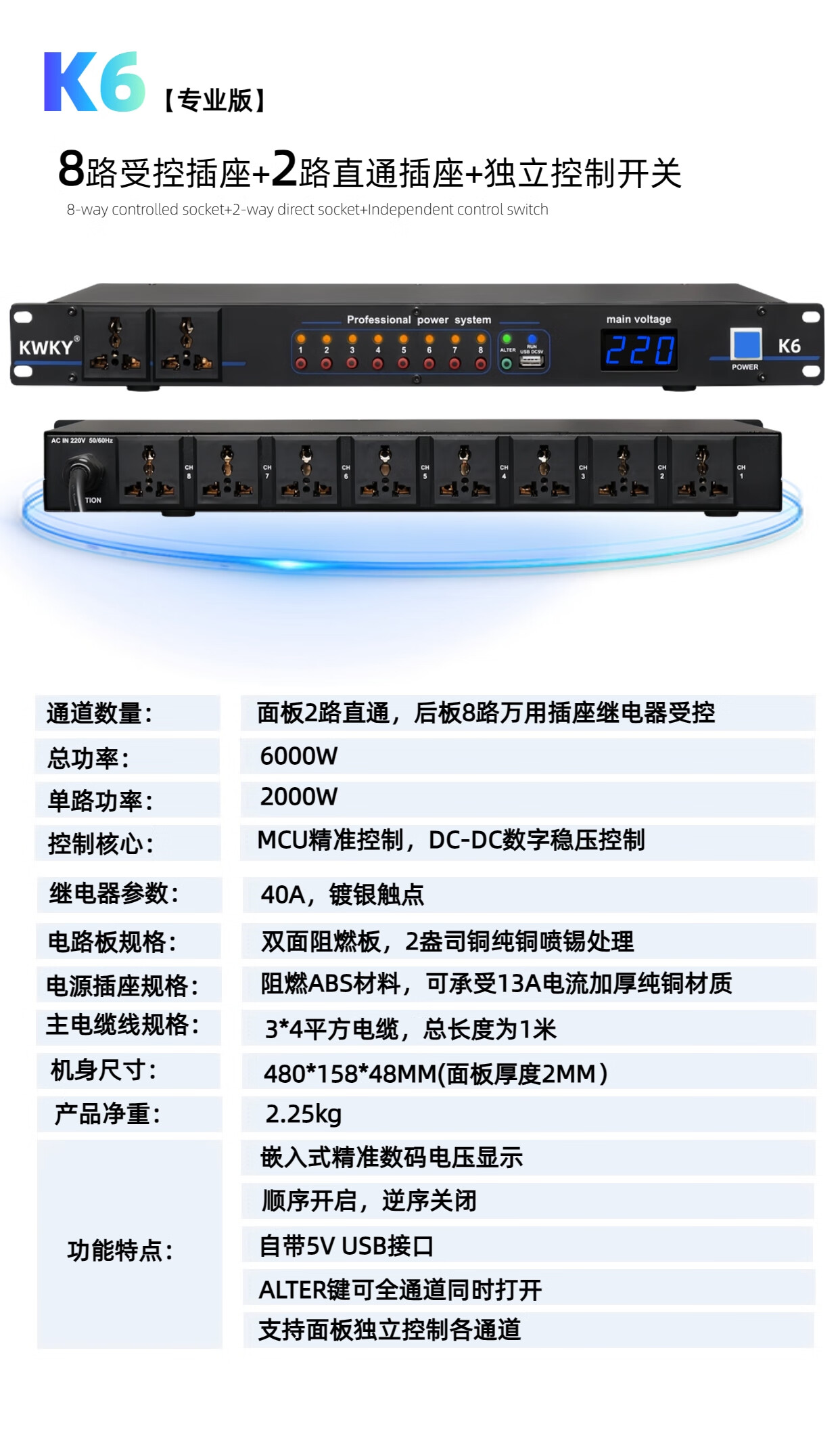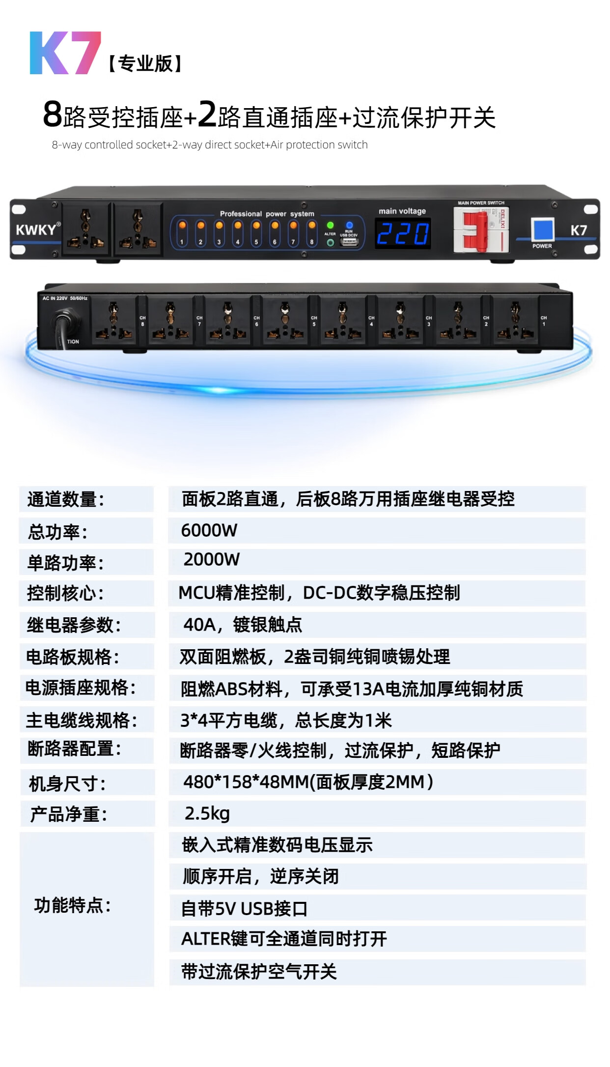 KWKY professional power sequencer with filter engineering conference stage wedding household air switch independent switching power supply controller 8-way high power + voltage screen K1 filter model