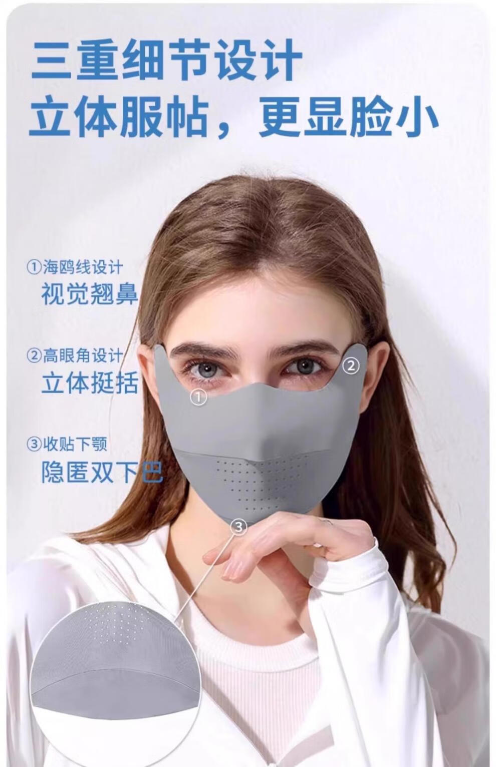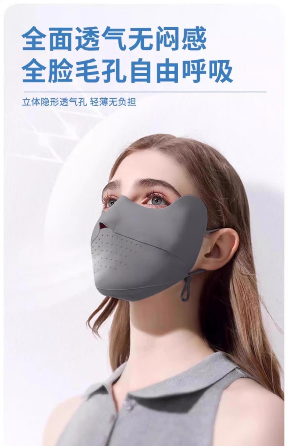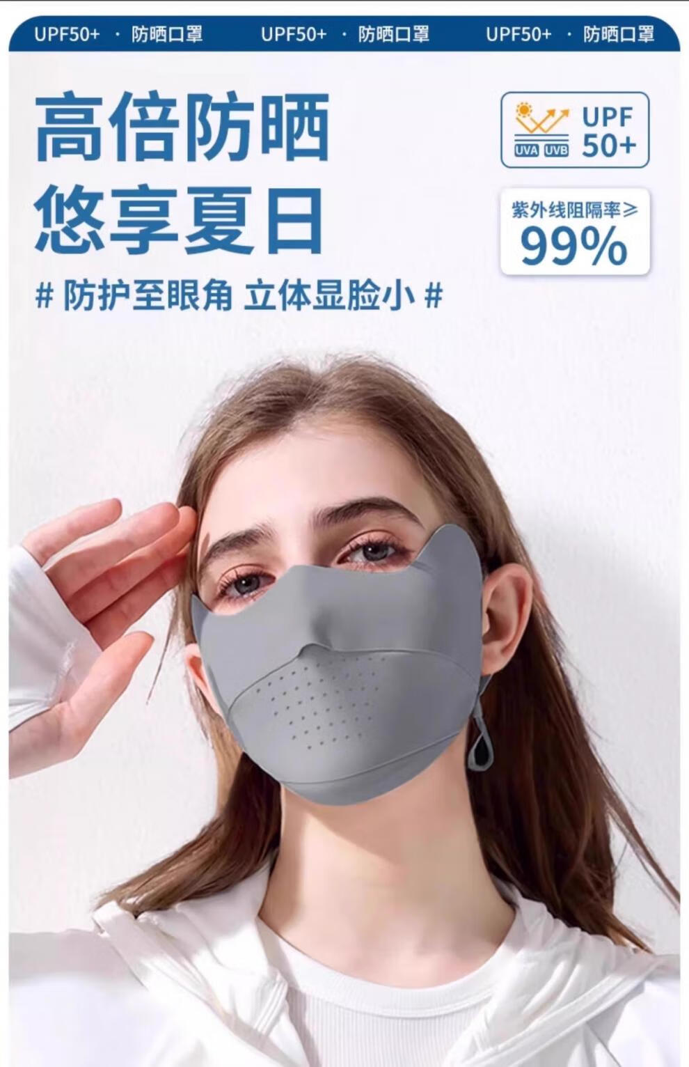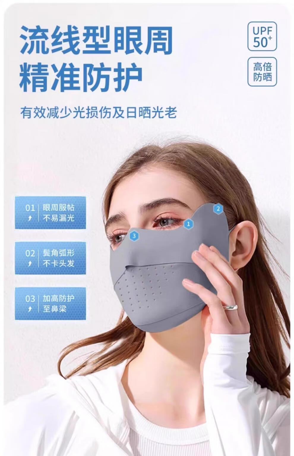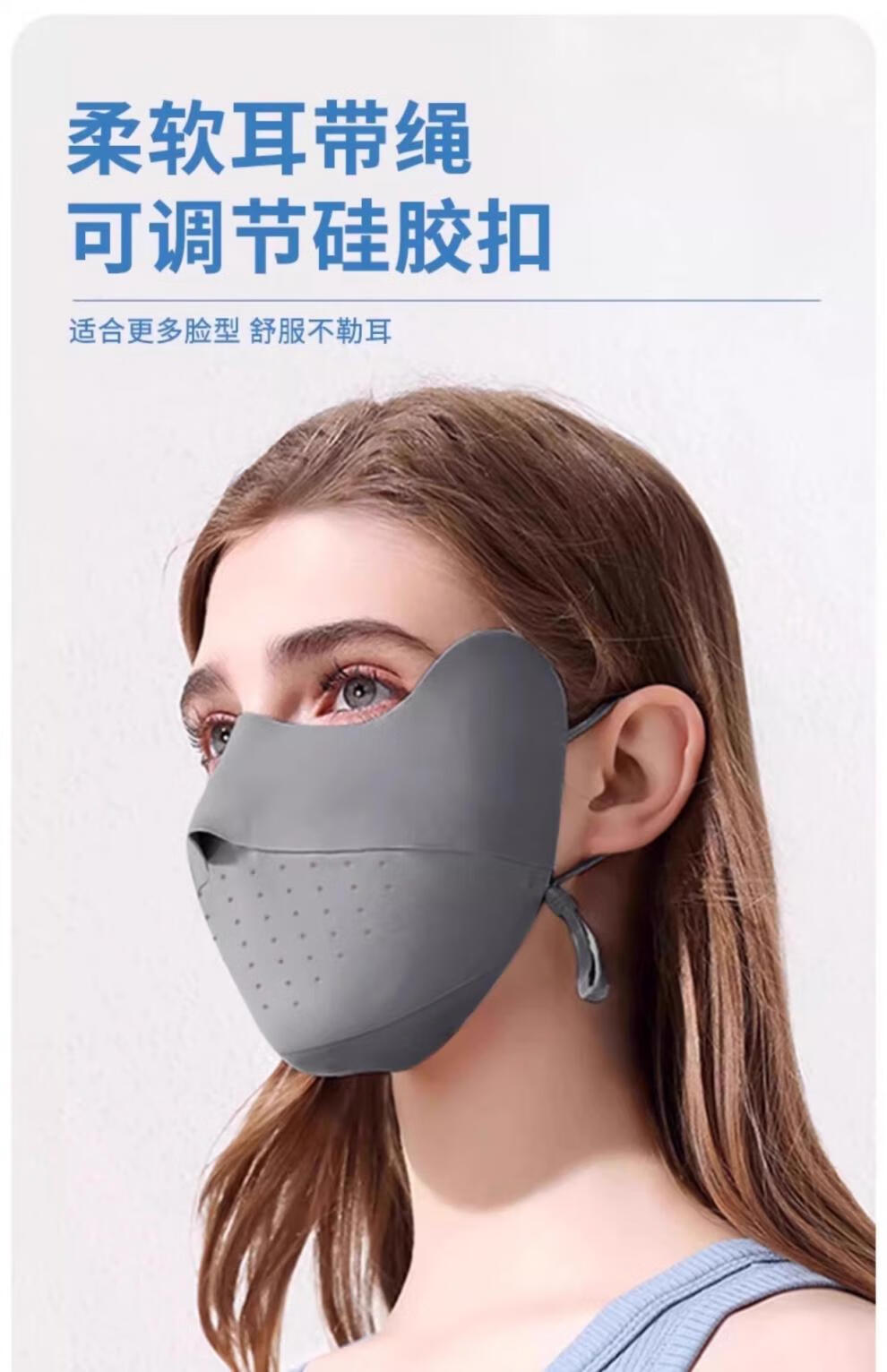 Jiaoxiafan Seamless Sunscreen Mask for Women, Anti-UV Ice Silk Eye Corner Covering Face, Thin Sunscreen Mask, Temperament Gray, Ice Feel Sunscreen UFP50+