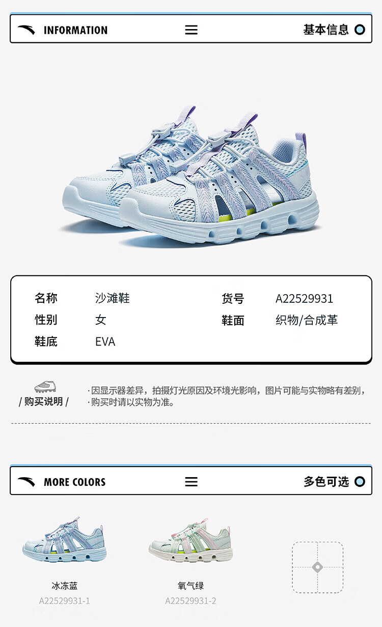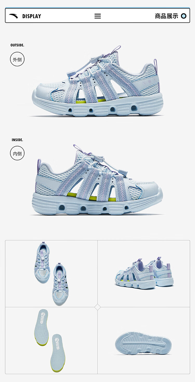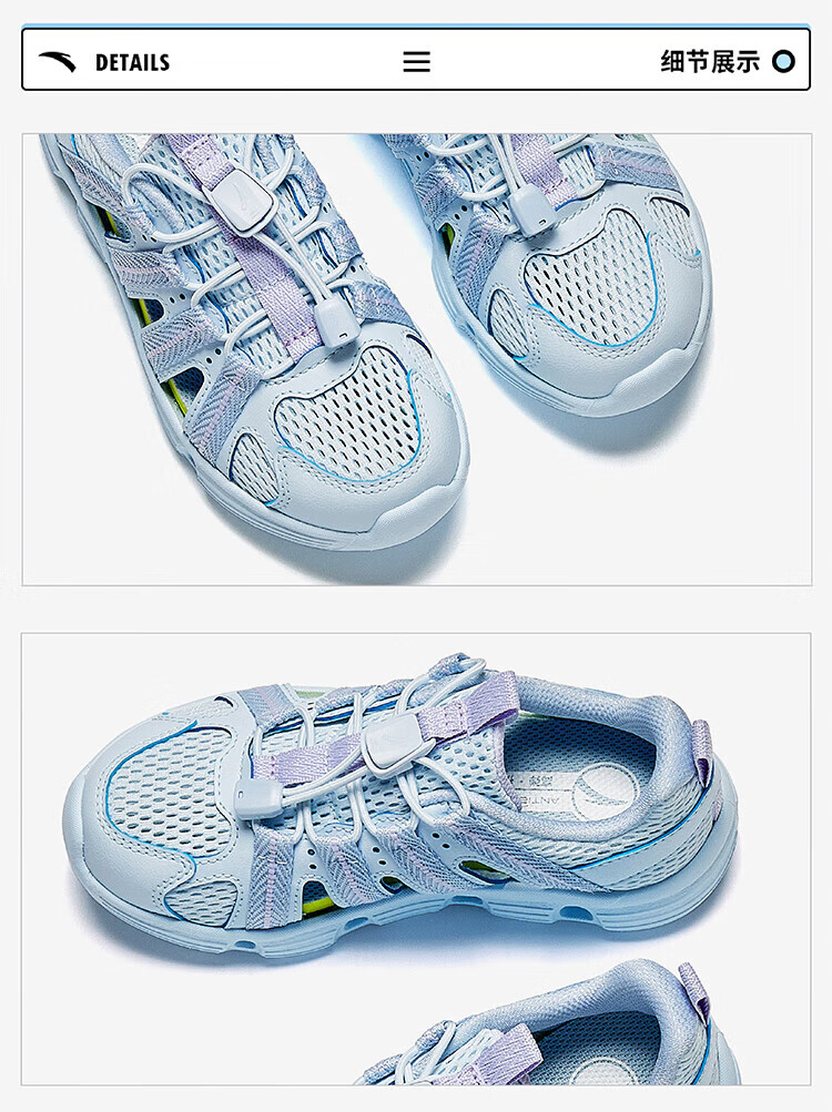ANTA Children's Shoes Children's Sandals Girls' Shoes 2025 Summer New Outdoor River Tracing Shoes Baotou Beach Shoes Crocs Frozen Blue-1 28