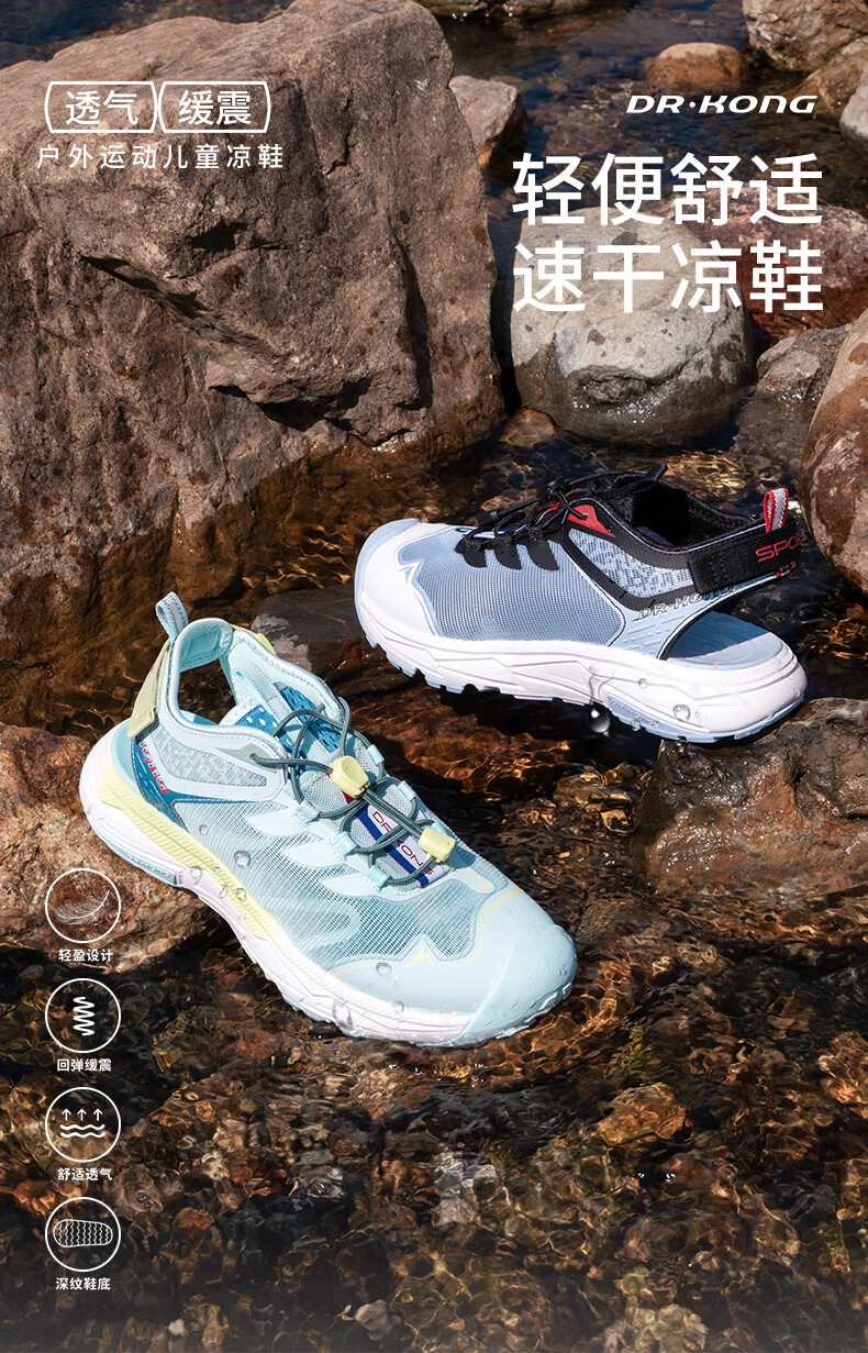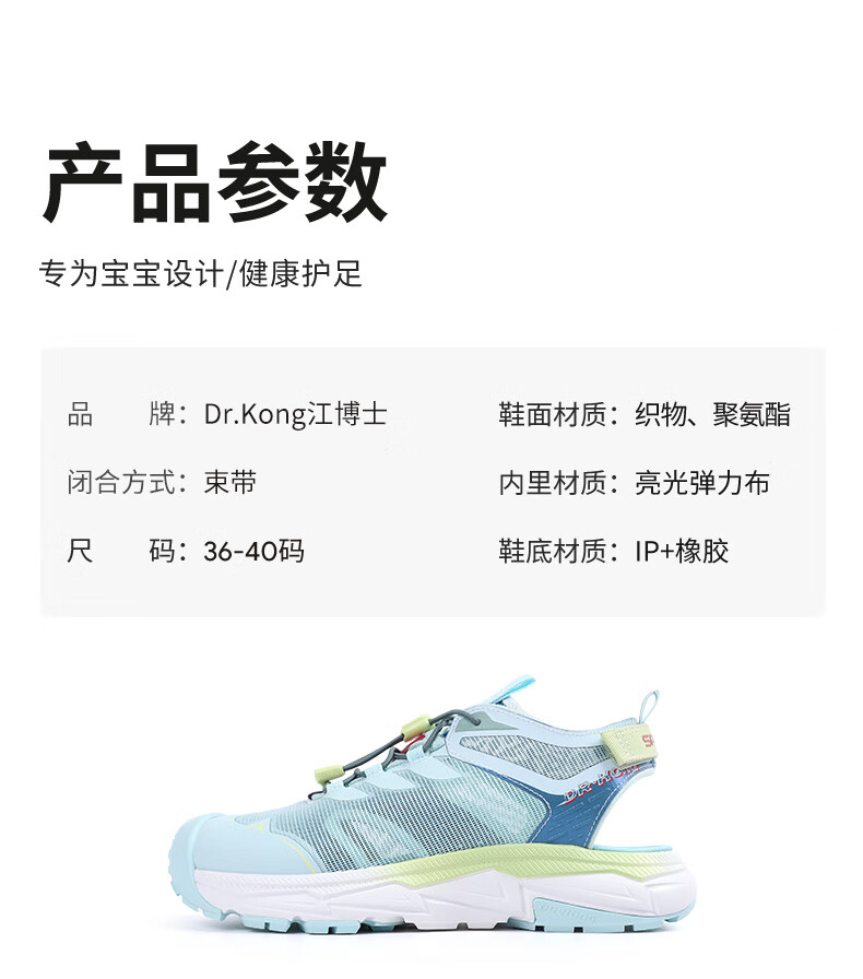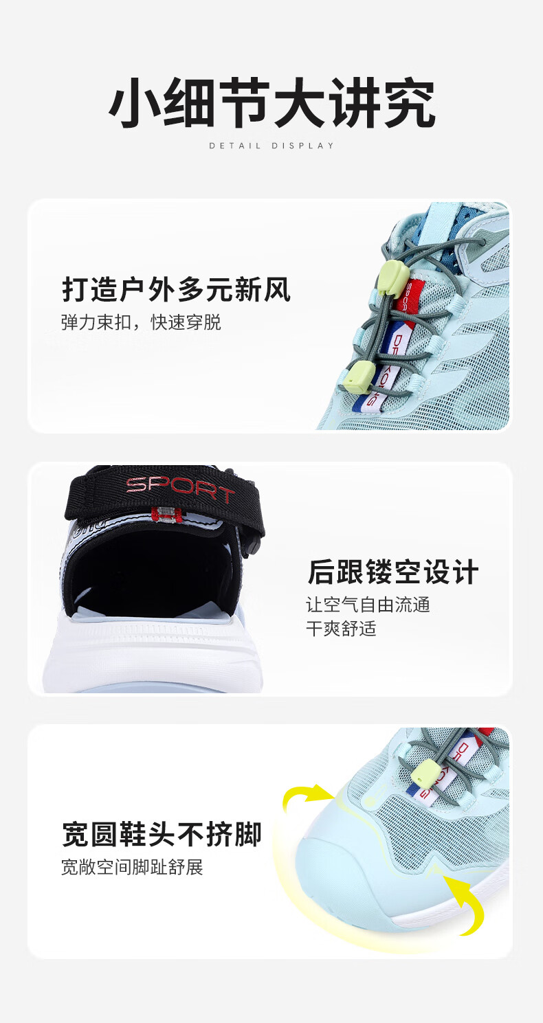 Dr. Jiang's summer boys' breathable sports-style toe-cap sandals, belted large children's domestic children's sandals, green 36, foot length approximately 22.8-23.4
