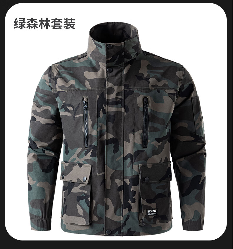 Work-specific labor protection camouflage suit men's spring outdoor work clothes plus velvet and thickening for protection Green Jungle 2XL (180) Recommended 140-160Jin Jin equals 0.5 kg