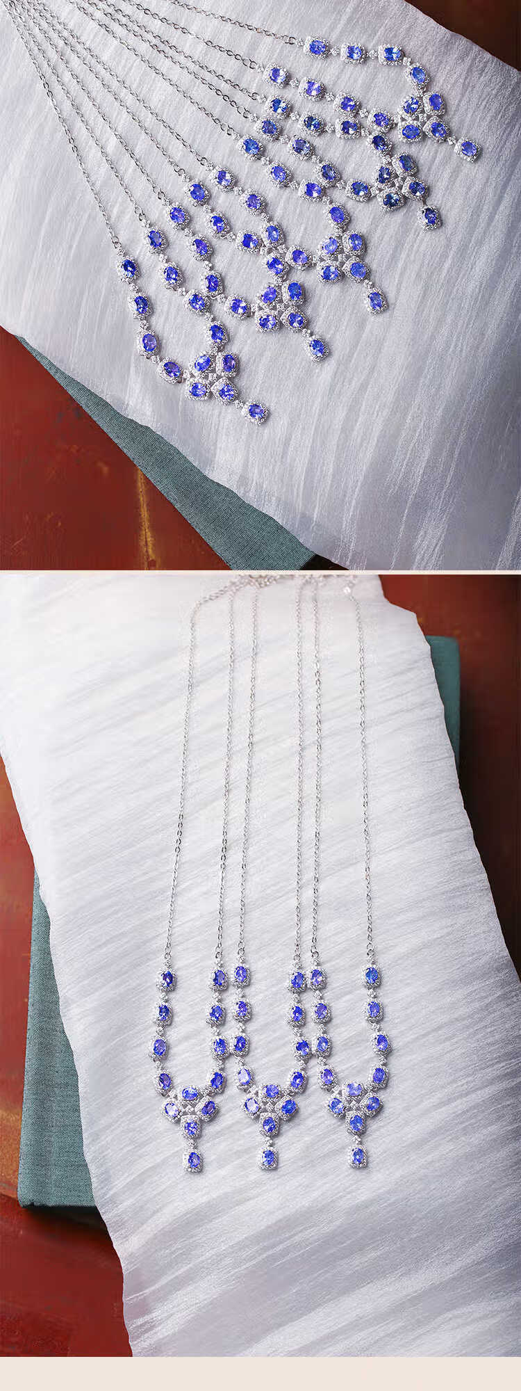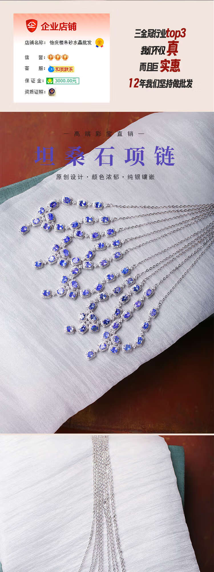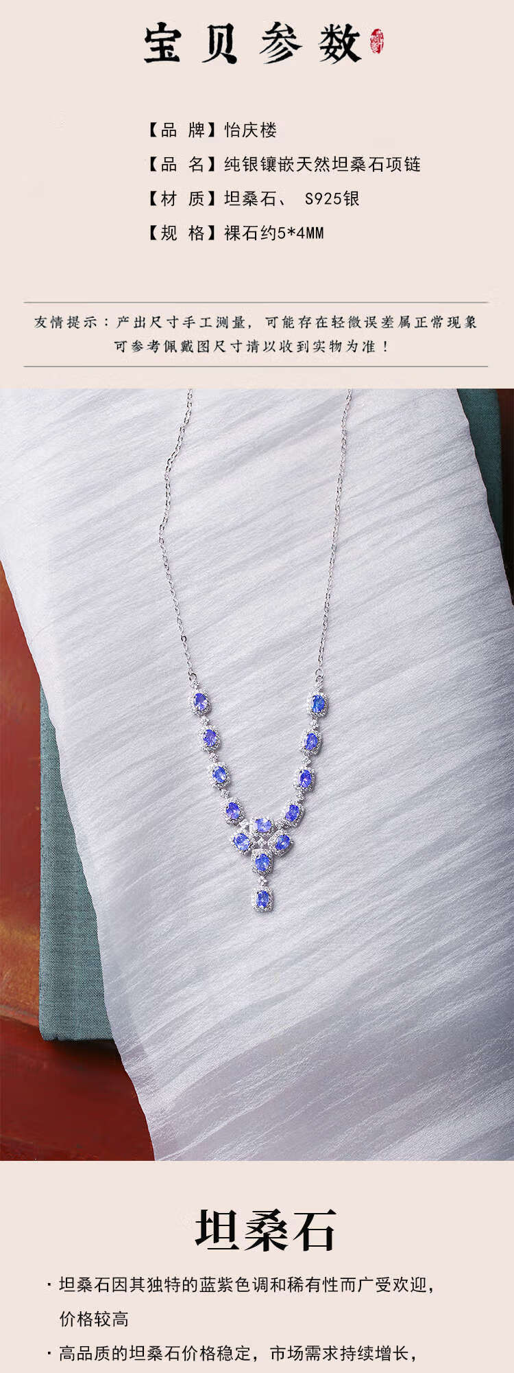 Red Shadow Boutique Colored Treasure Natural Tanzanite Pure Silver Inlaid Clavicle Chain Women's Seiko Silver Inlaid Colored Treasure Jewelry Gift Bare Stone Approximately 4*5MM Send One Piece