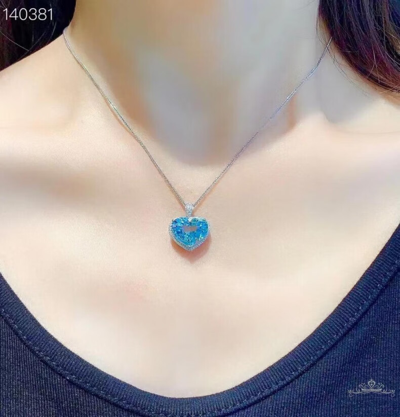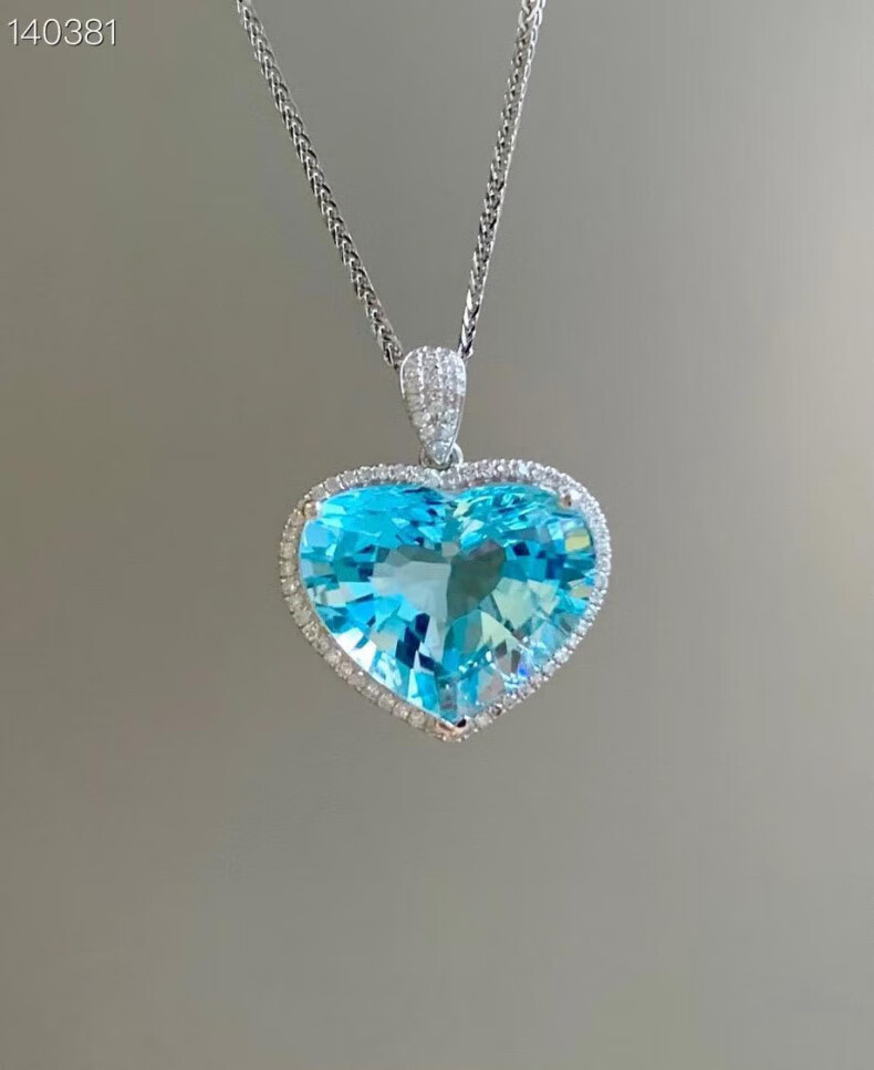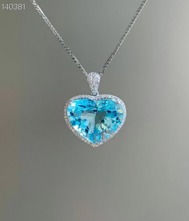 HEEKAIYI Heart of the Ocean Aquamarine Necklace Diamond Luxury Jewelry Chinese Valentine's Day Birthday Gift for Wife and Girlfriend Selected 5.8 Carat Santa Maria Color Aquamarine Necklace