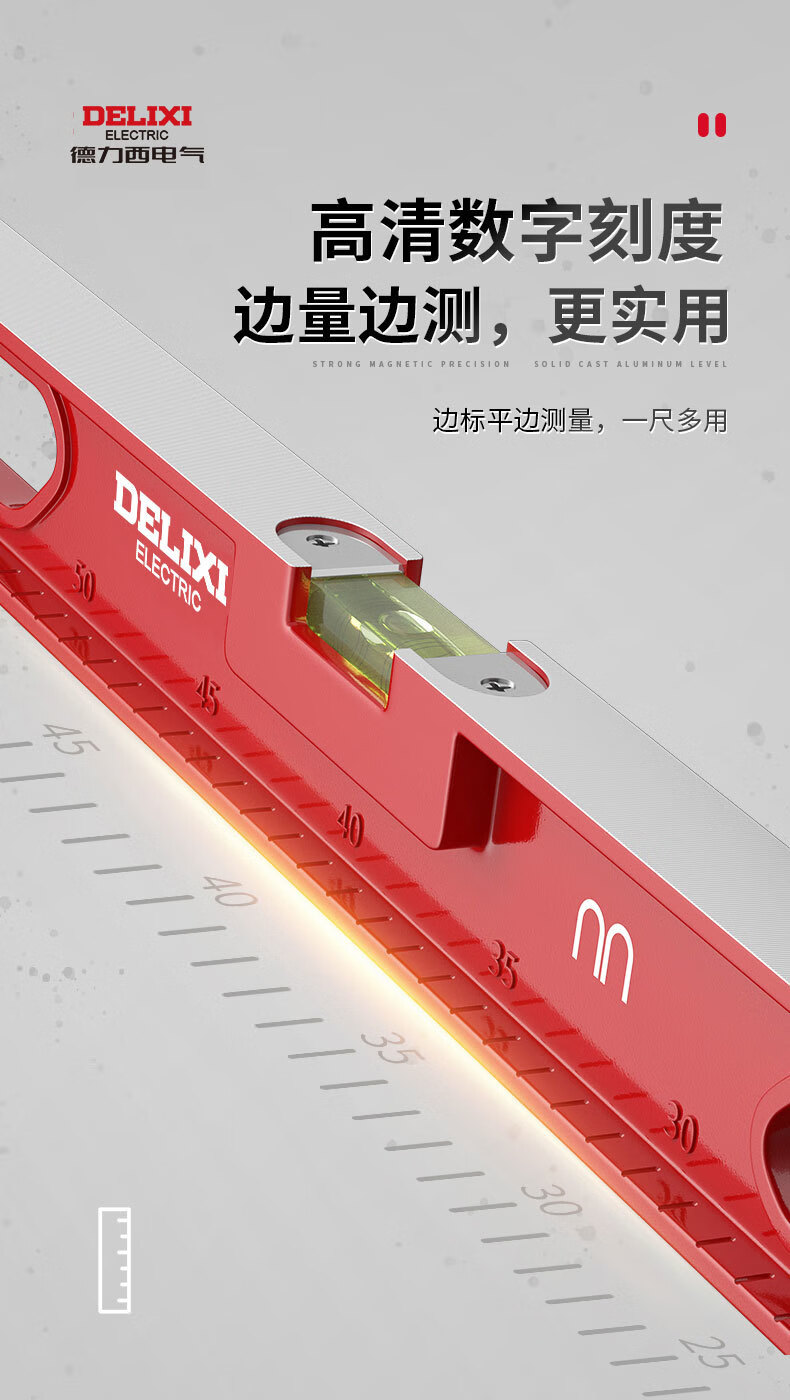 Qinkai level high-precision solid cast aluminum industrial grade heavy-duty all-aluminum alloy multi-functional anti-fall ruler for decoration strong magnetic type solid cast aluminum-600mm