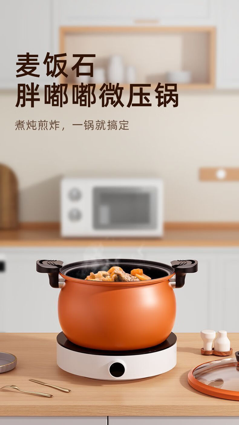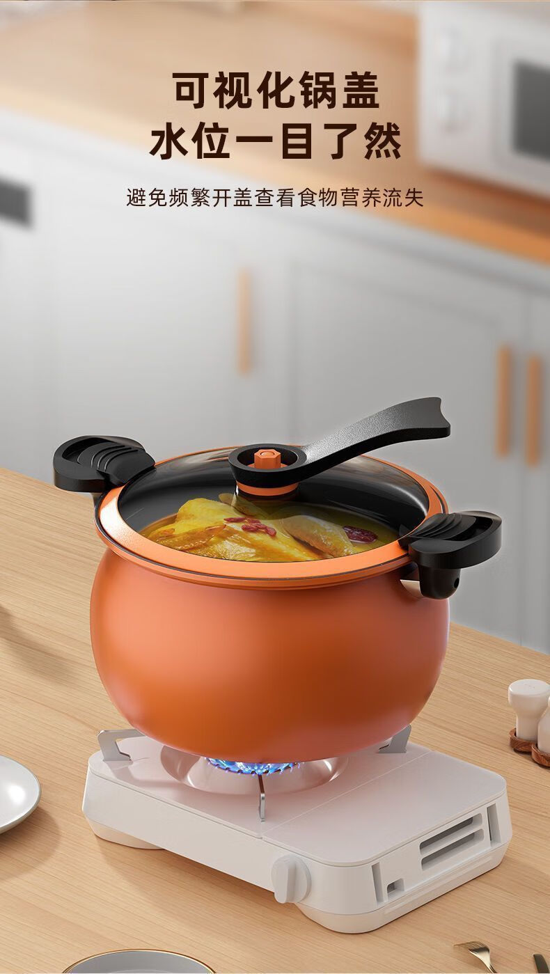 New kitchen micro-pressure cooker Pang Dudu household large-capacity stew and soup pot multi-functional non-stick pan quick-stuffing universal large-capacity micro-pressure stew pot orange 28cm 8L Don't rush to wait at this time.
