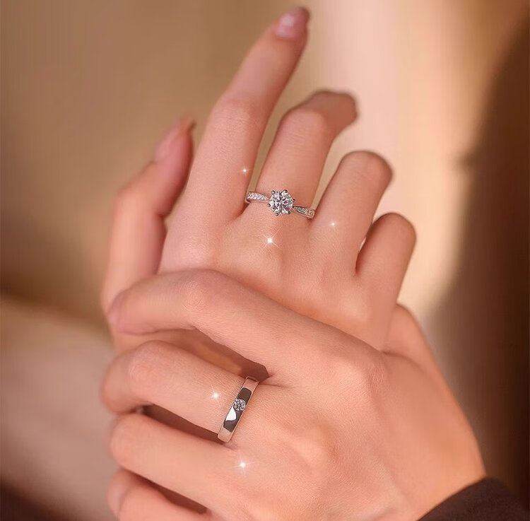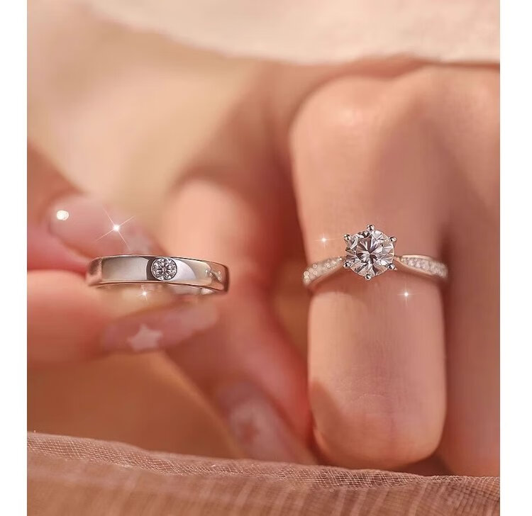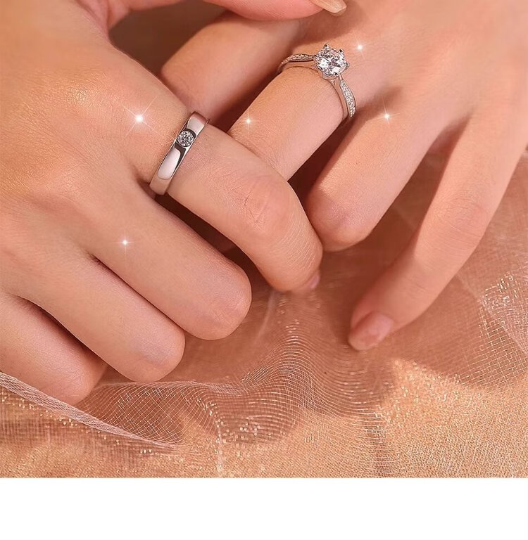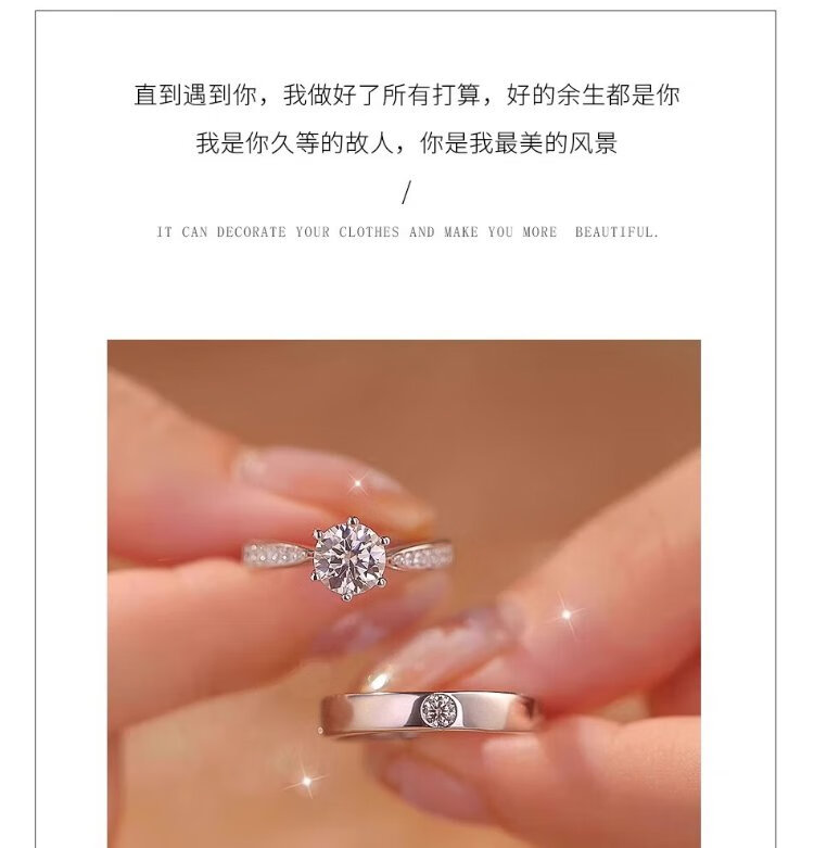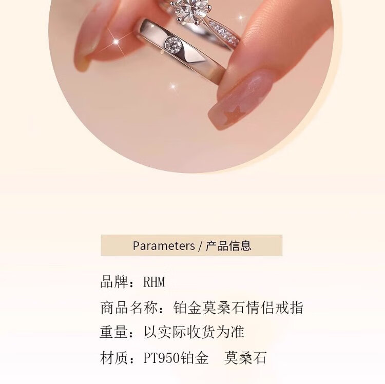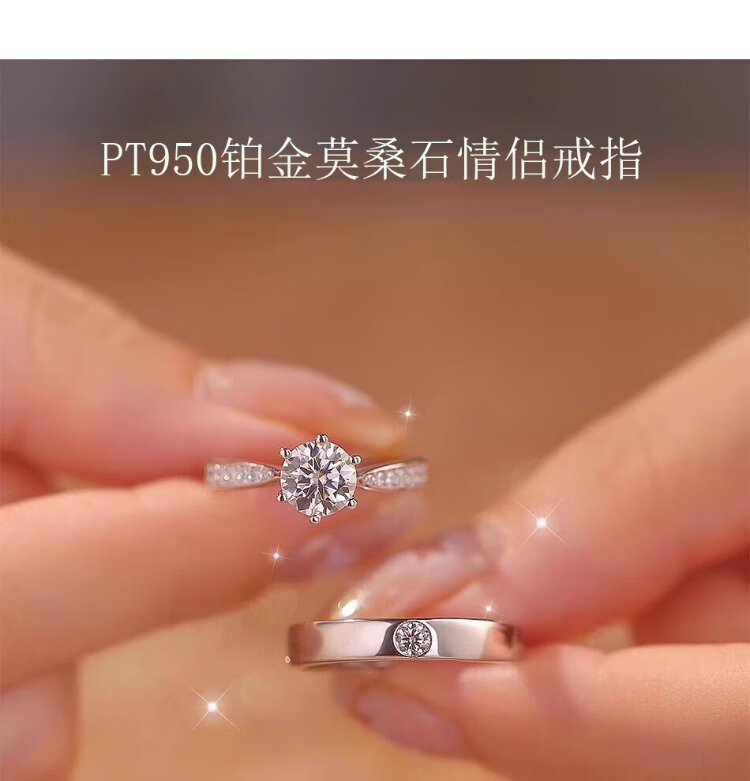 RHM platinum couple rings, moissanite diamond ring, platinum six-claw wedding ring, a pair of Valentine's Day gifts for girlfriend, a pair of platinum couple rings + certificate + gift box