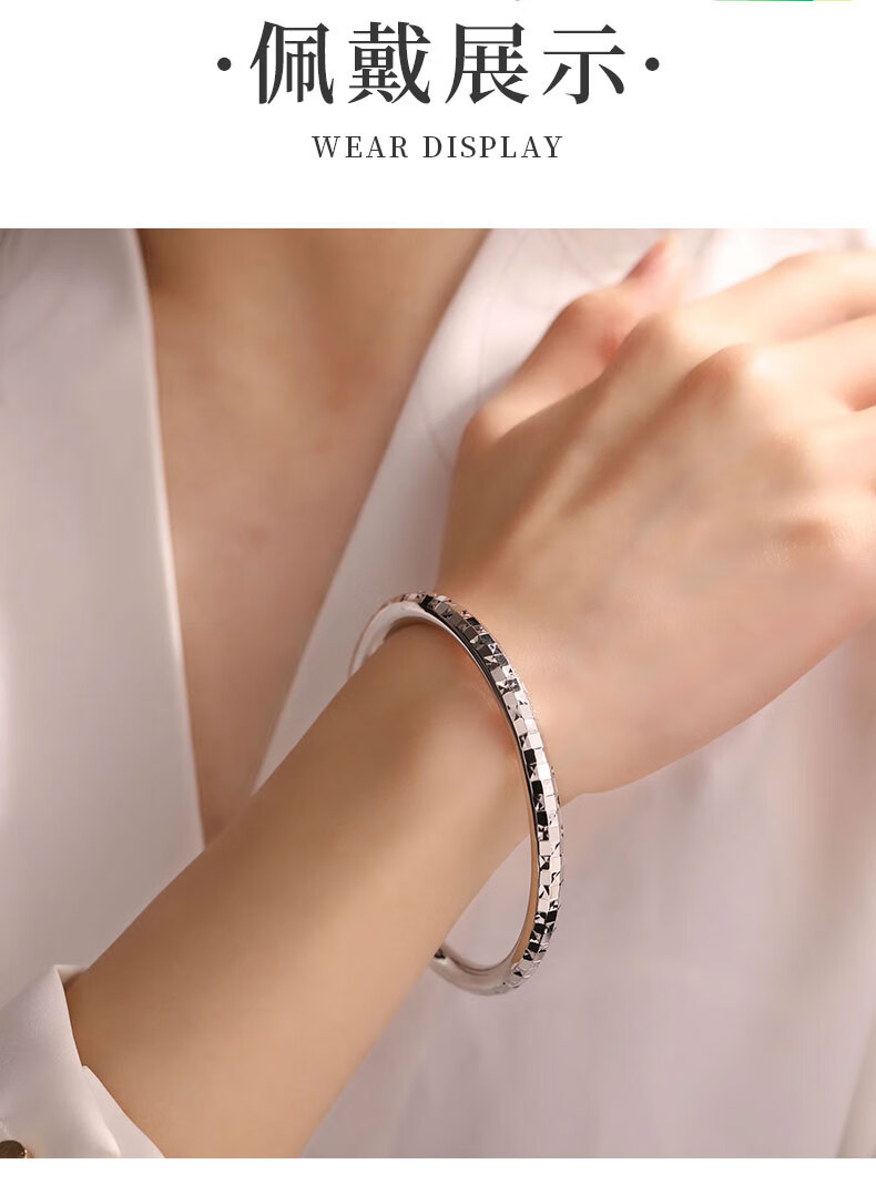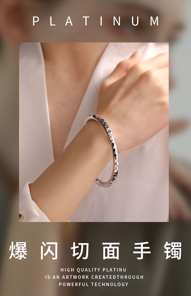 Duozun genuine pt950 platinum bracelet for women, pure platinum flash faceted bracelet, platinum semi-solid bracelet, new style for women, inner diameter 53mm, weight 31-32g, thickness about 5.6mm