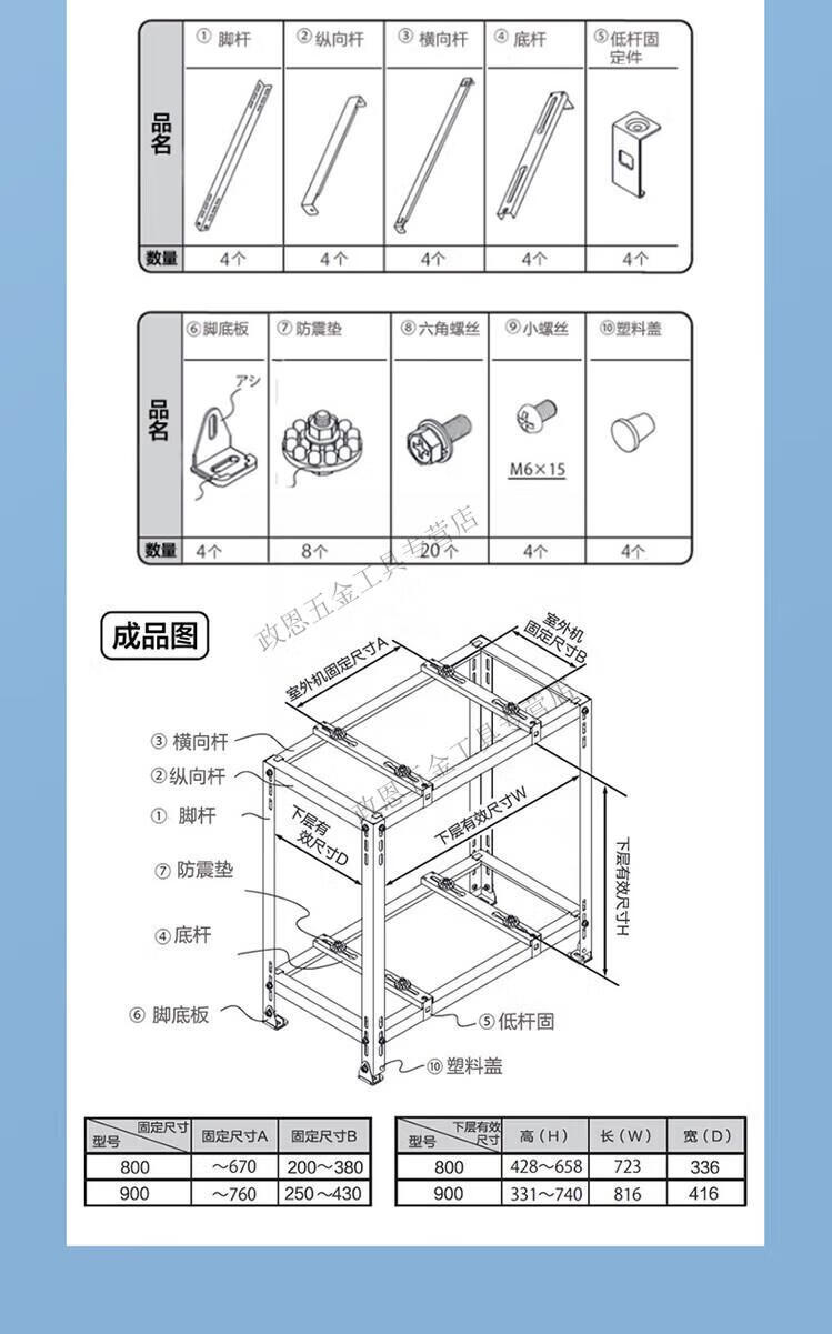 Pupan air conditioner outdoor unit bracket accessories save space, floor-standing double-layer stacked shock-proof, shock-proof and noise-reducing shelf 3p XE-C1-800*800*4001 hp