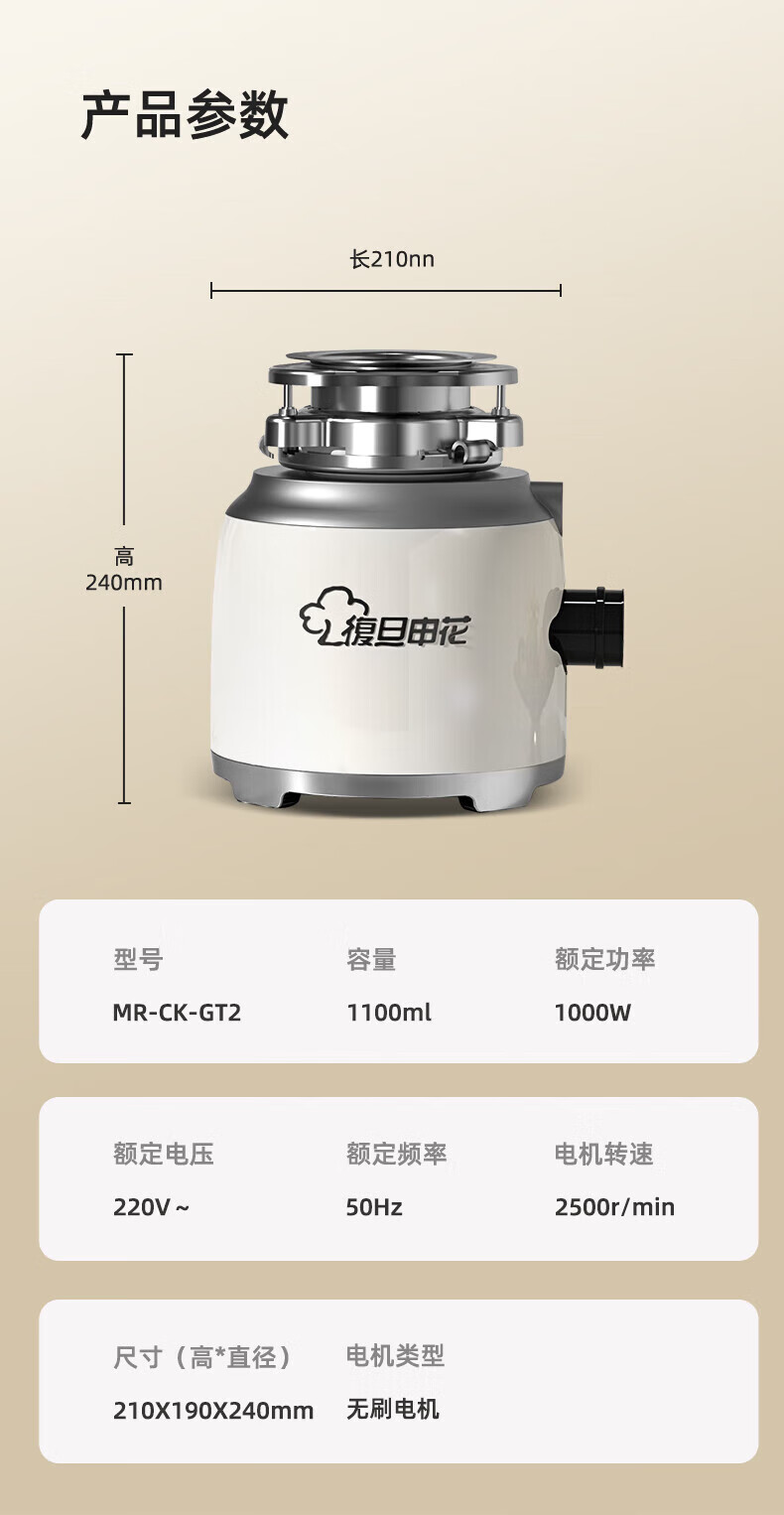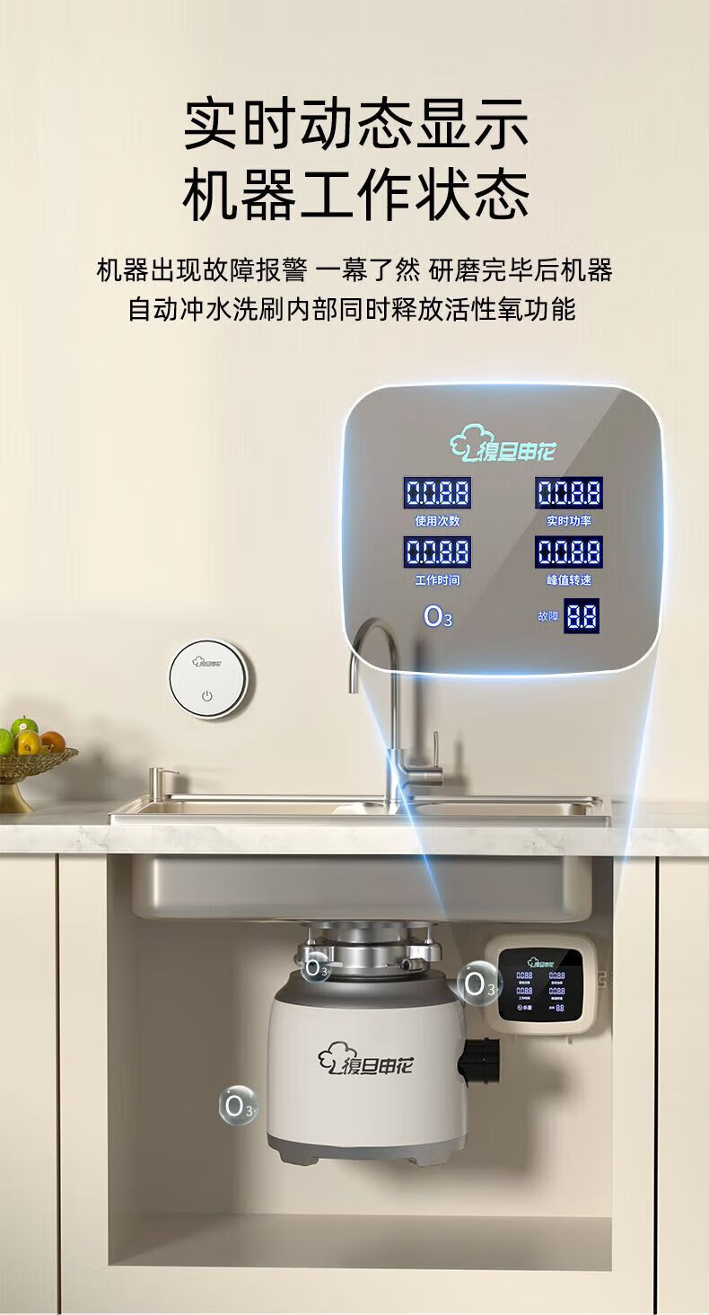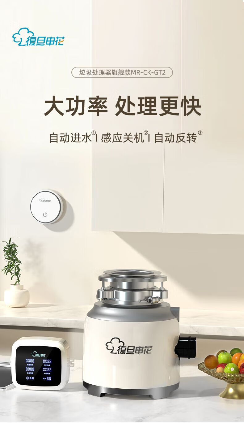 Fudan Shenhua GT2 garbage disposer automatic water inlet food waste crusher household kitchen food waste treatment truffle white