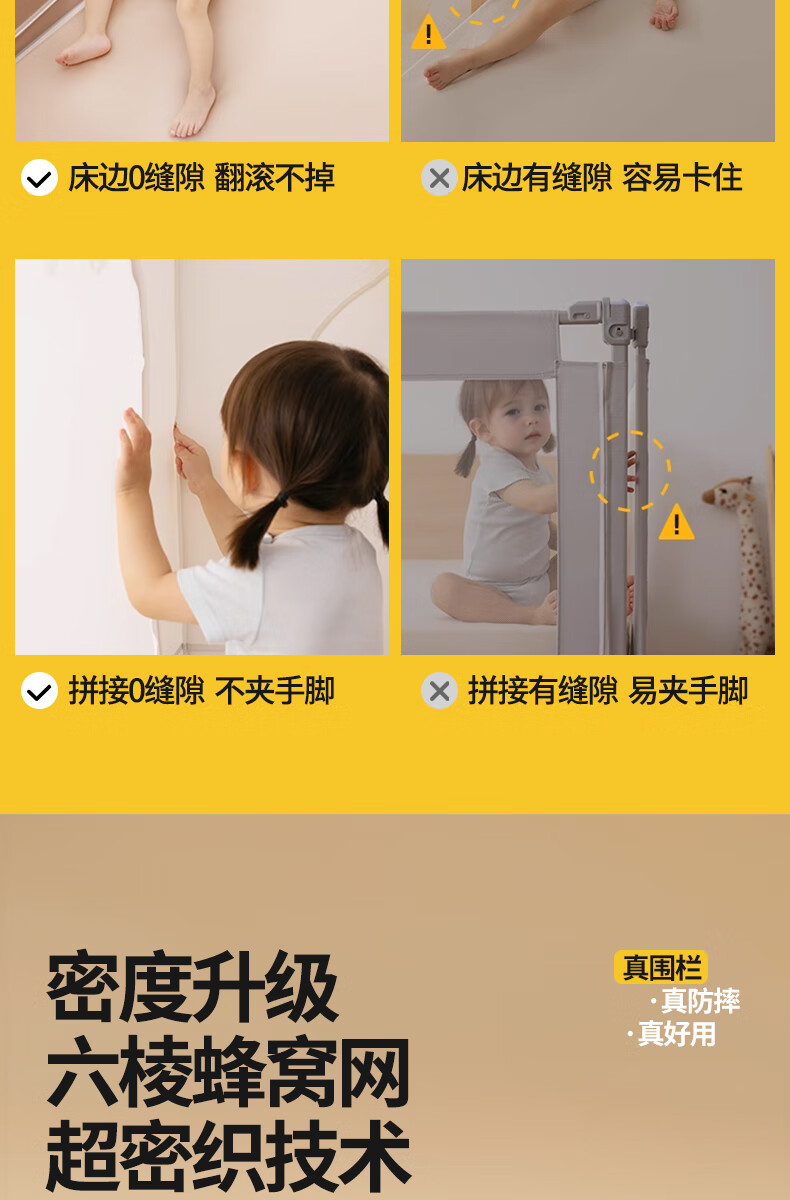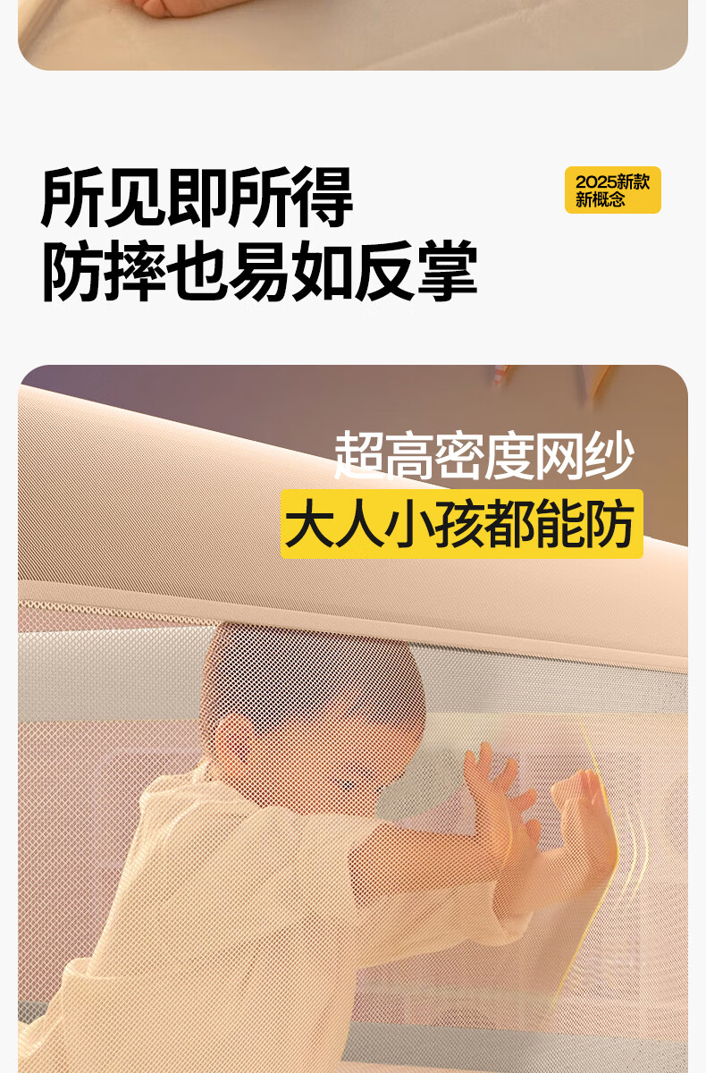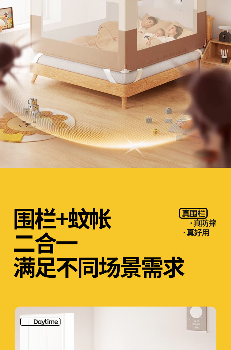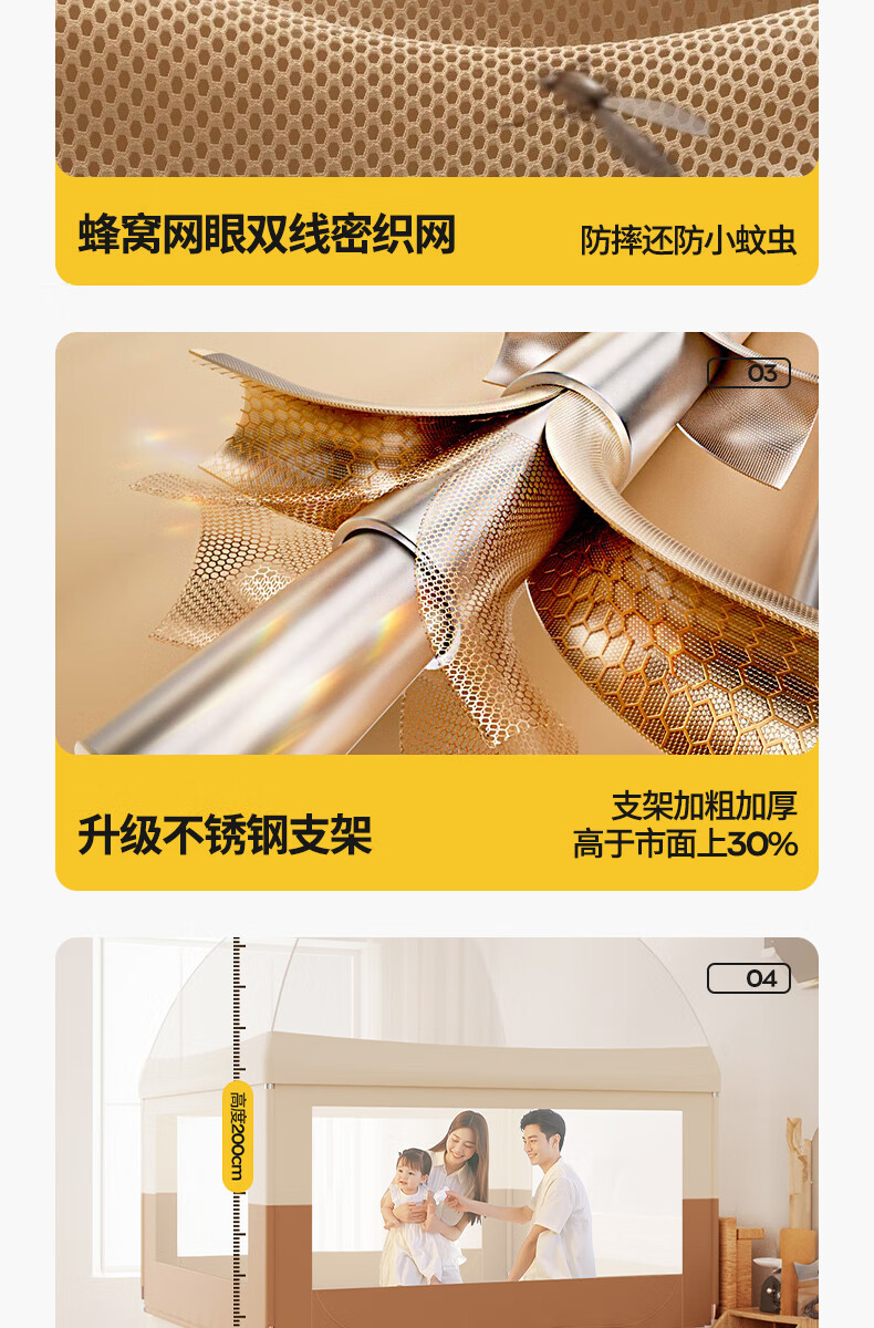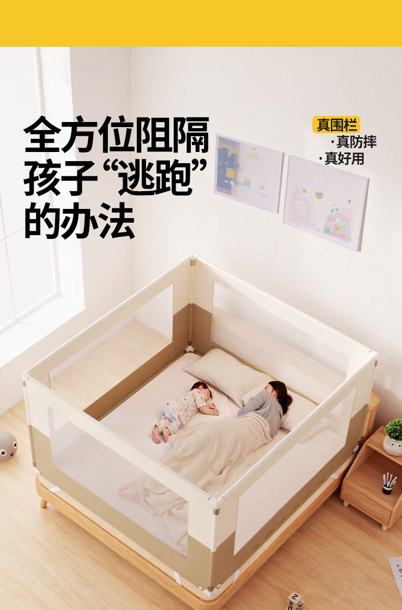 Montover anti-fall bed fence pattern mosquito net frame one-piece fully surrounded and installation-free 1.8x2m household baby three-door upgrade model bed guardrail + yurt mosquito net + dustproof soft light top 180cm*200cm*180cm 1.8m bed