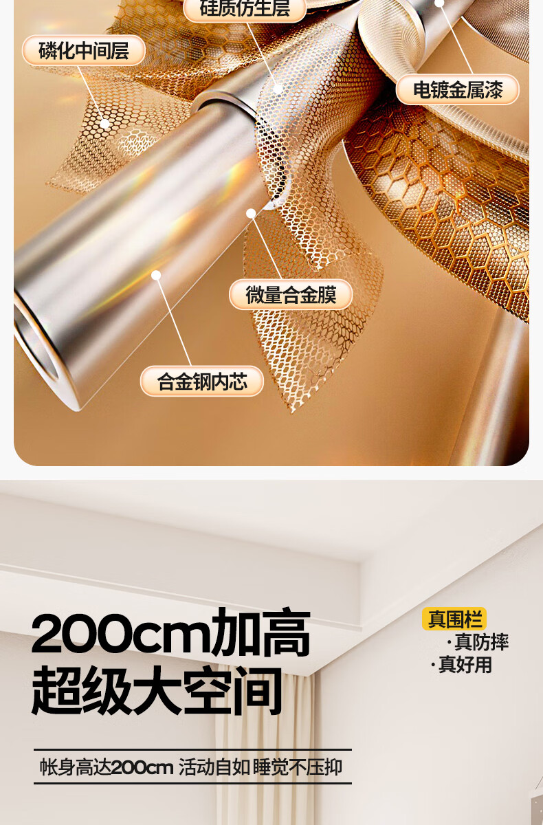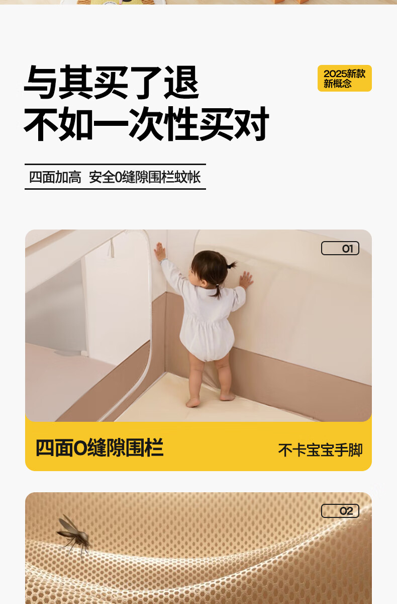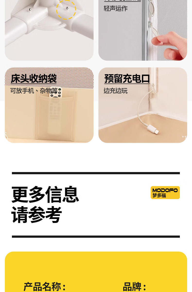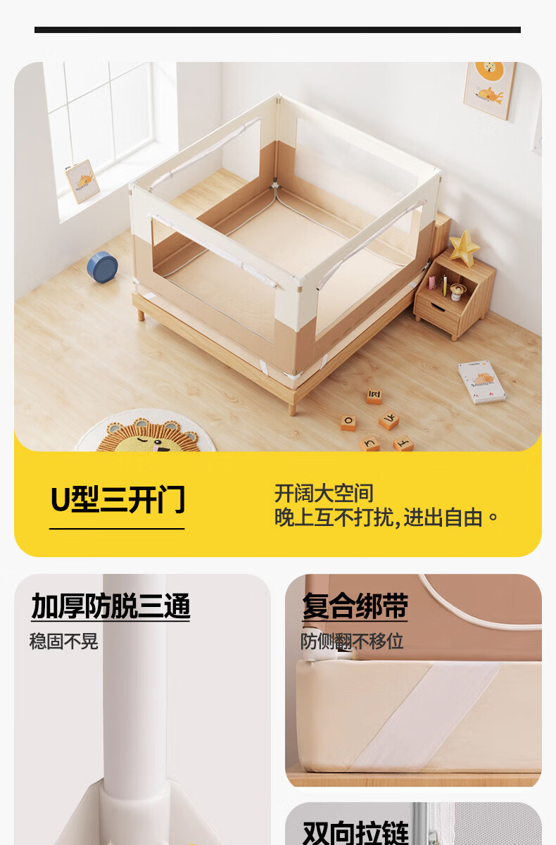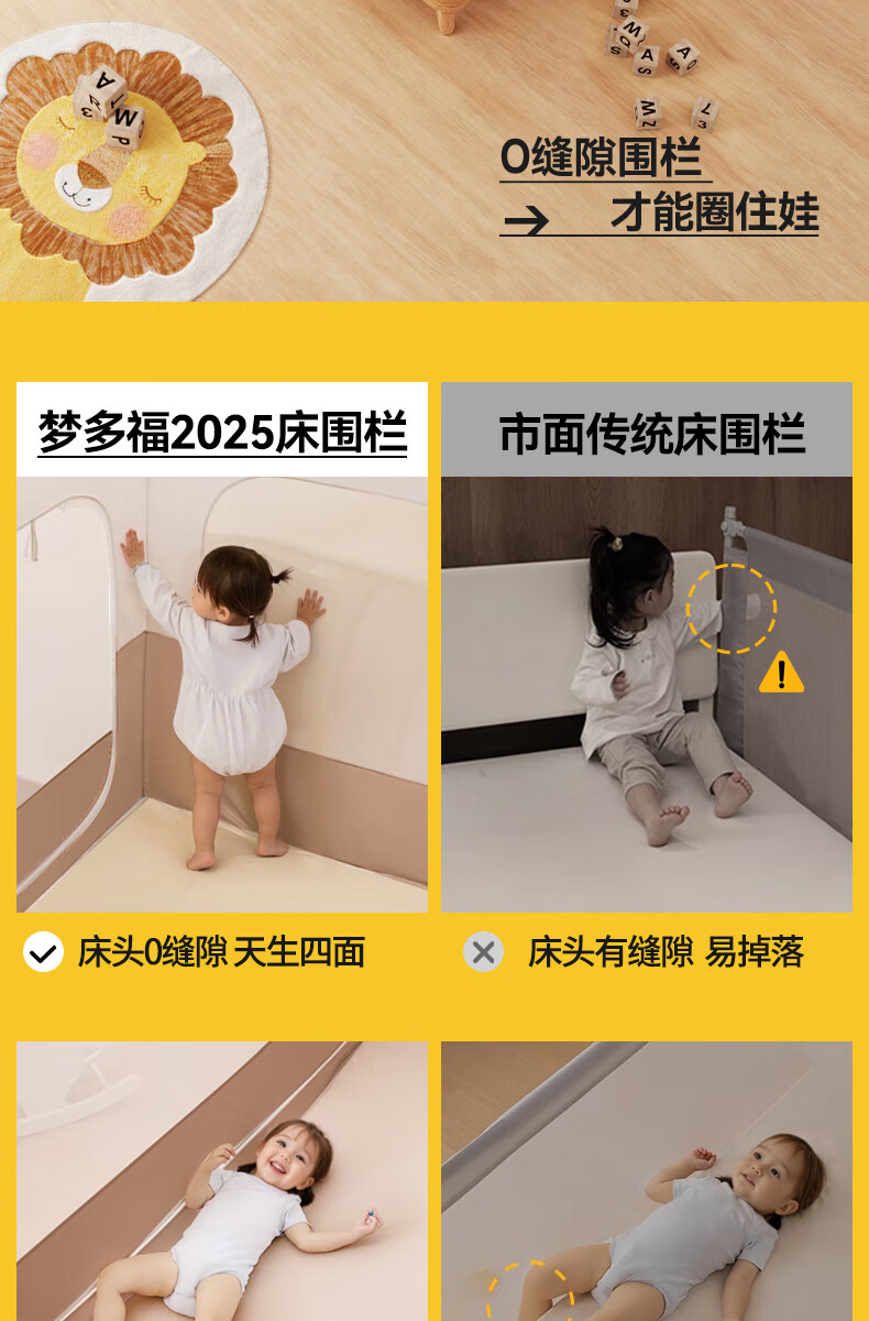 Montover anti-fall bed fence pattern mosquito net frame one-piece fully surrounded and installation-free 1.8x2m household baby three-door upgrade model bed guardrail + yurt mosquito net + dustproof soft light top 180cm*200cm*180cm 1.8m bed