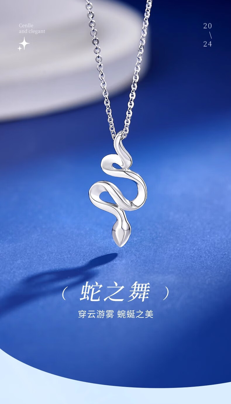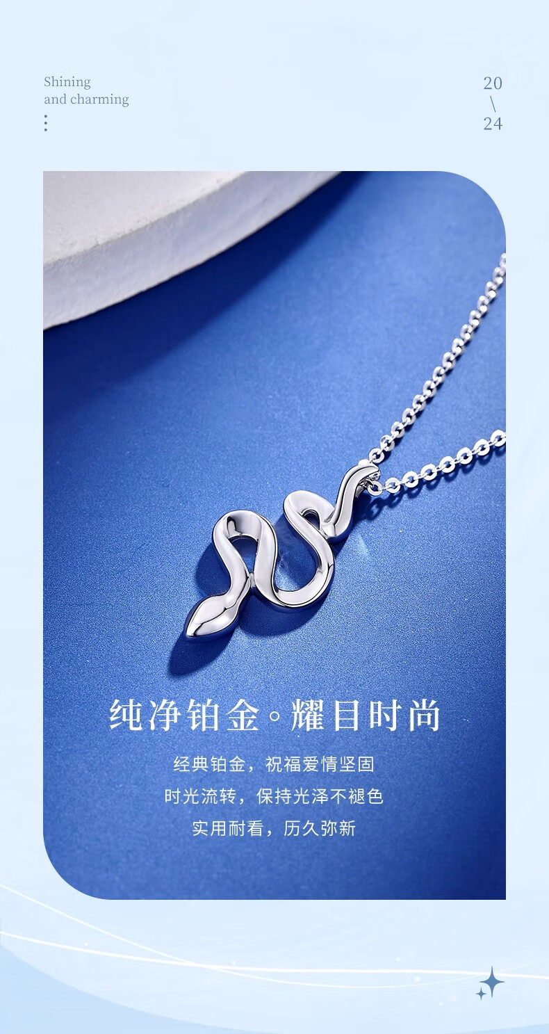 CHINA GOLD Coiled Snake Platinum Necklace Female Zodiac Sign Snake Platinum Pendant Clavicle Chain Wedding Gift for Girlfriend Birthday Platinum Snake Necklace Approximately 4.6g