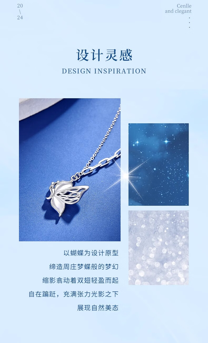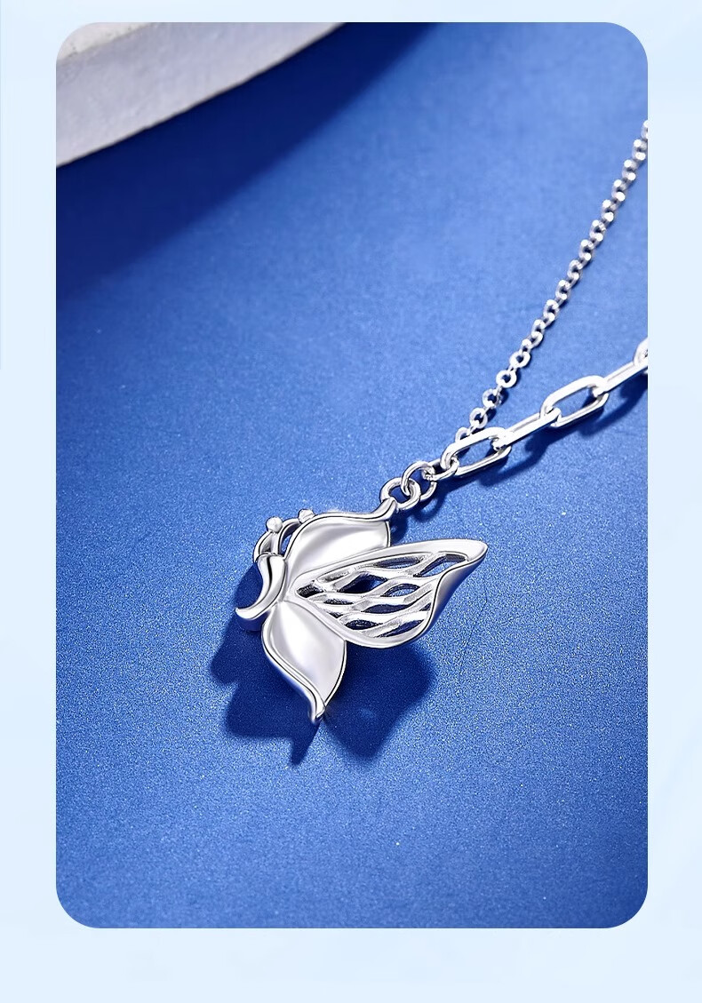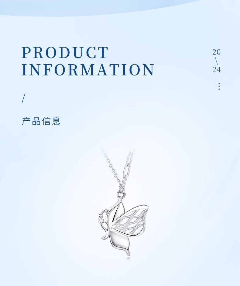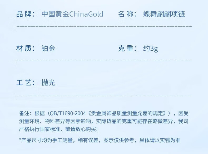 China Gold (CHINA GOLD) Butterfly Platinum Necklace for Women PT950 Platinum Pendant Clavicle Chain Wedding and Birthday Gift for Girlfriend and Wife PT950 Platinum Butterfly Necklace About 3.1g