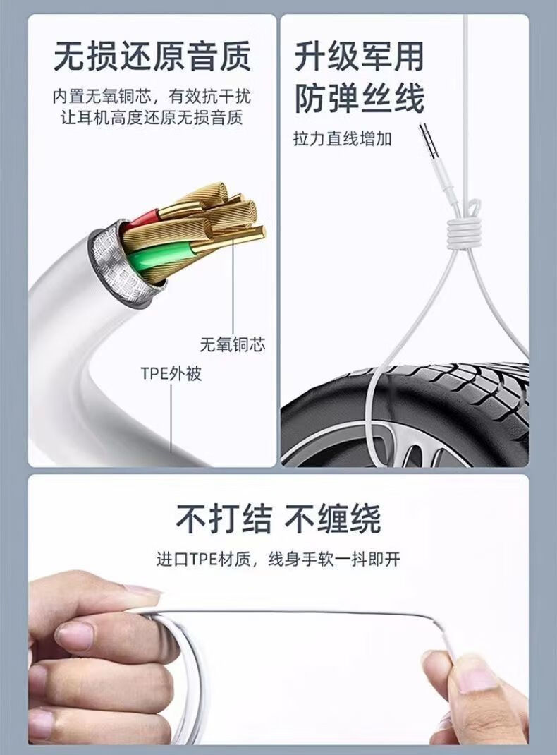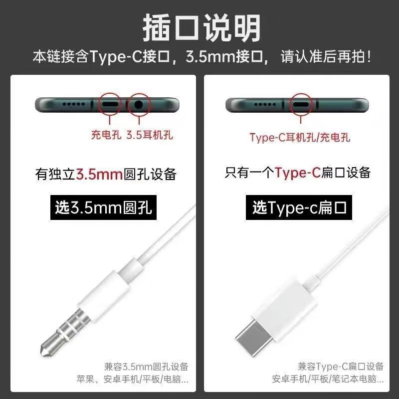 Hot-selling wired earphones semi-in-ear 3.5mm round hole type-c flat mouth suitable for Huawei Apple oppovivo Xiaomi with microphone karaoke digital audio fully compatible typec interface-PER diaphragm with microphone without tuning-digital audio