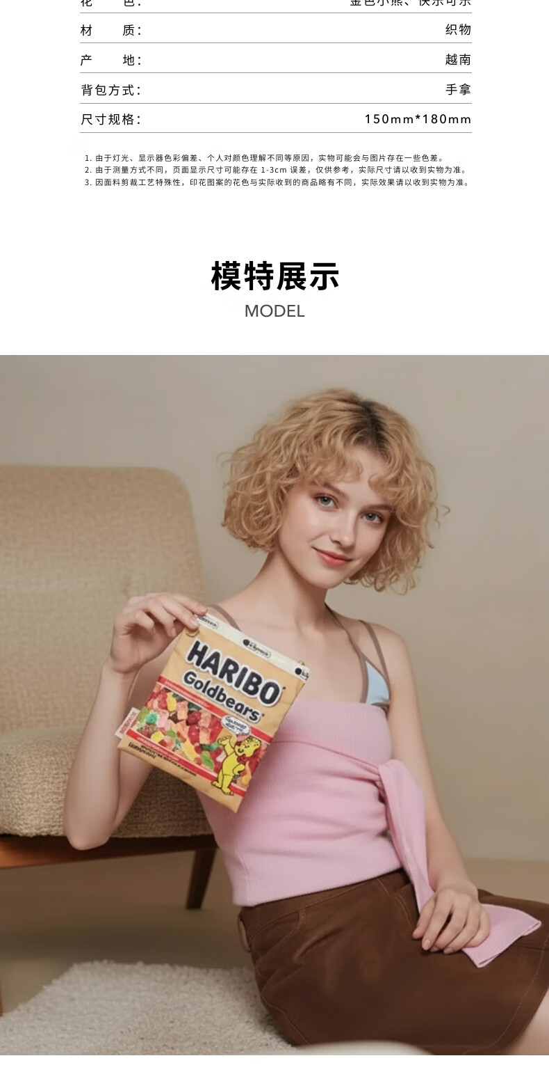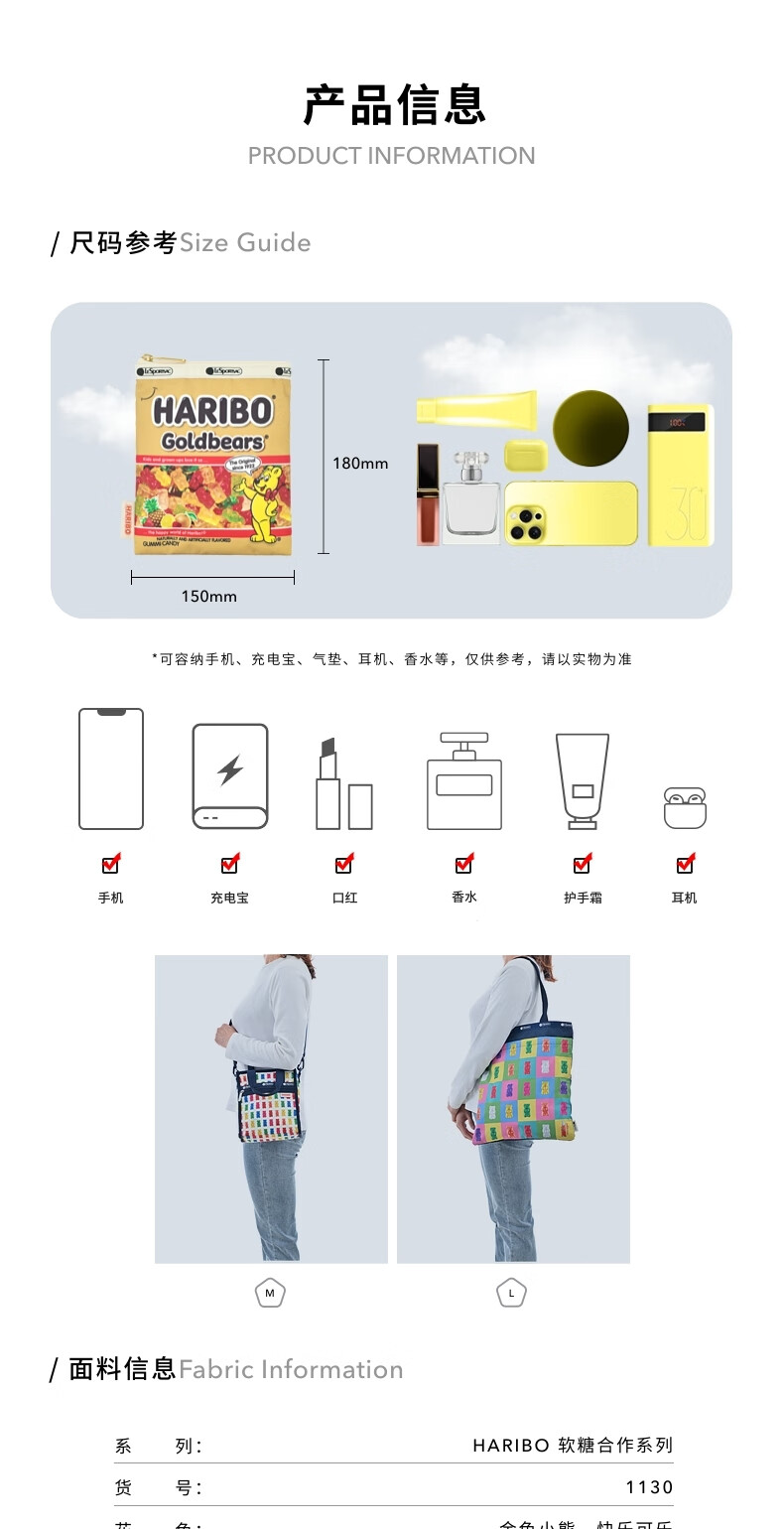 LeSportsac HARIBO Cute Gummy Bear Portable Storage Bag Clutch Bag Fashion Bag Women's Bag Happy Coke