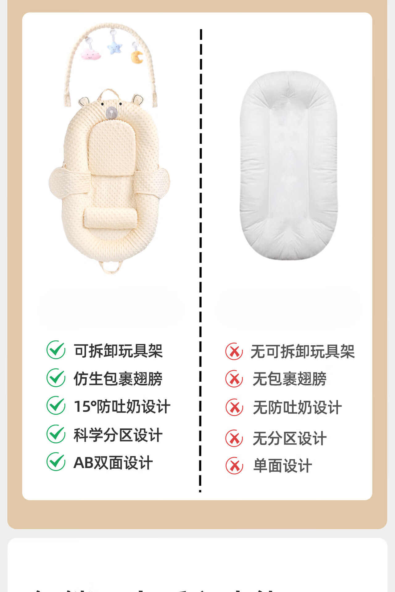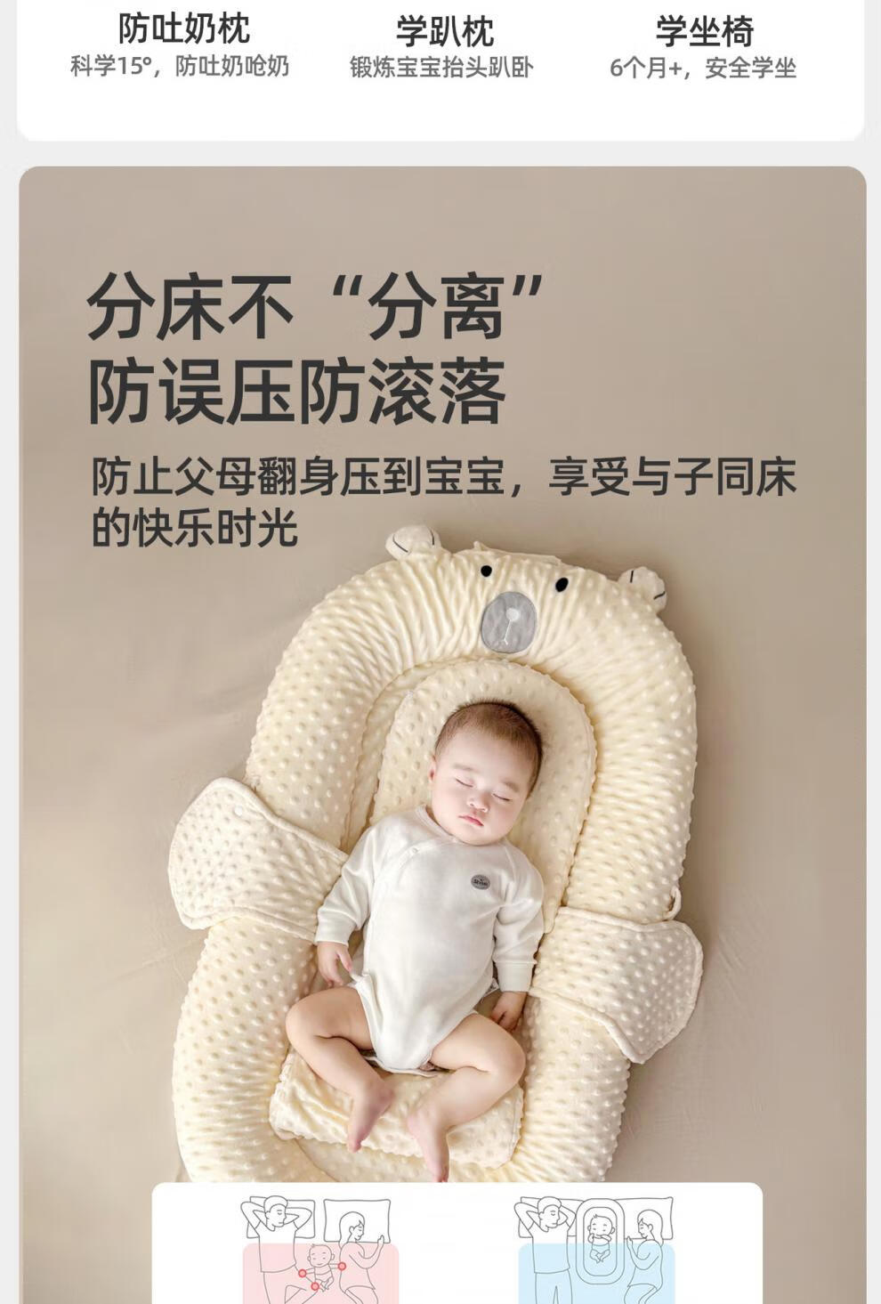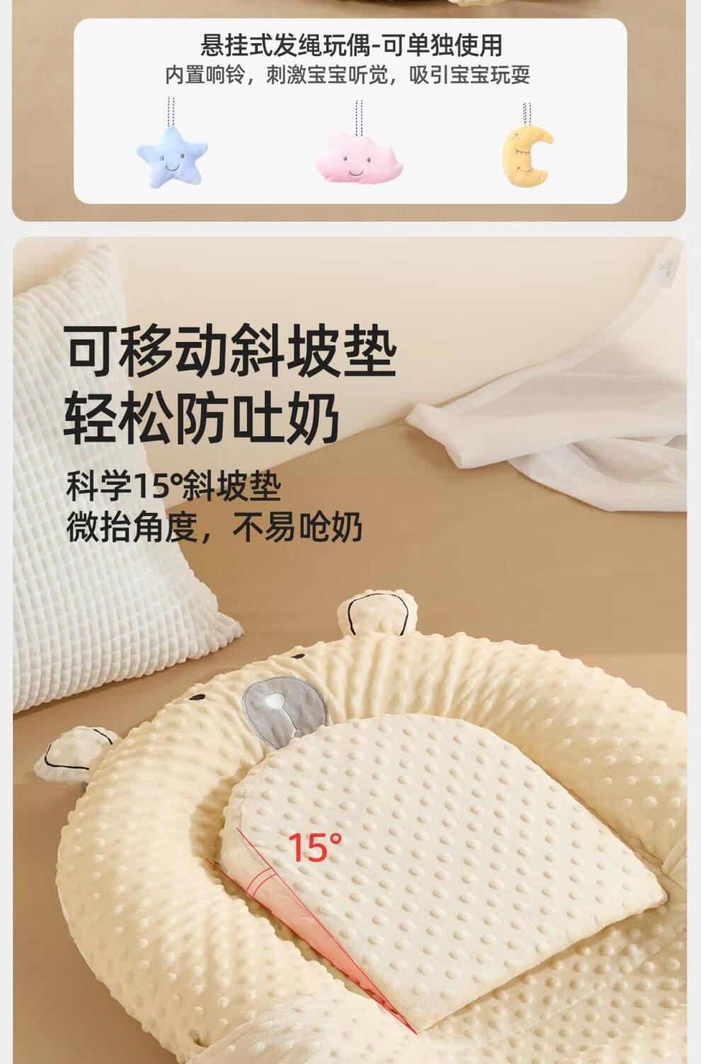 Babyjianle baby anti-vomiting soothing uterus slope newborn bionic bed anti-jump removable crib single bed (AB side comfort) + slope mat-Mi Xiaoxiong does not include mat