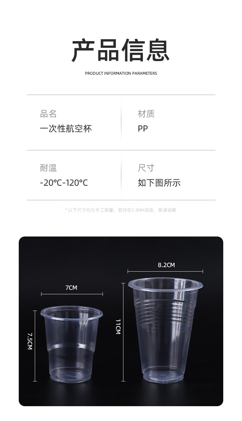 Disposable cup plastic water cup wholesale food grade household thickened tea cup commercial full box large aviation cup small package 180ML 20 pieces (1 pack)