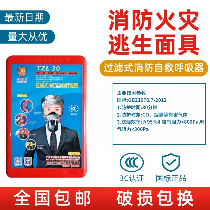 Xing'an fire mask, anti-virus, anti-smoke, fire-proof mask, hotel home fire escape self-rescue respirator mask TZL30 lead safety brand new national standard 3C certification