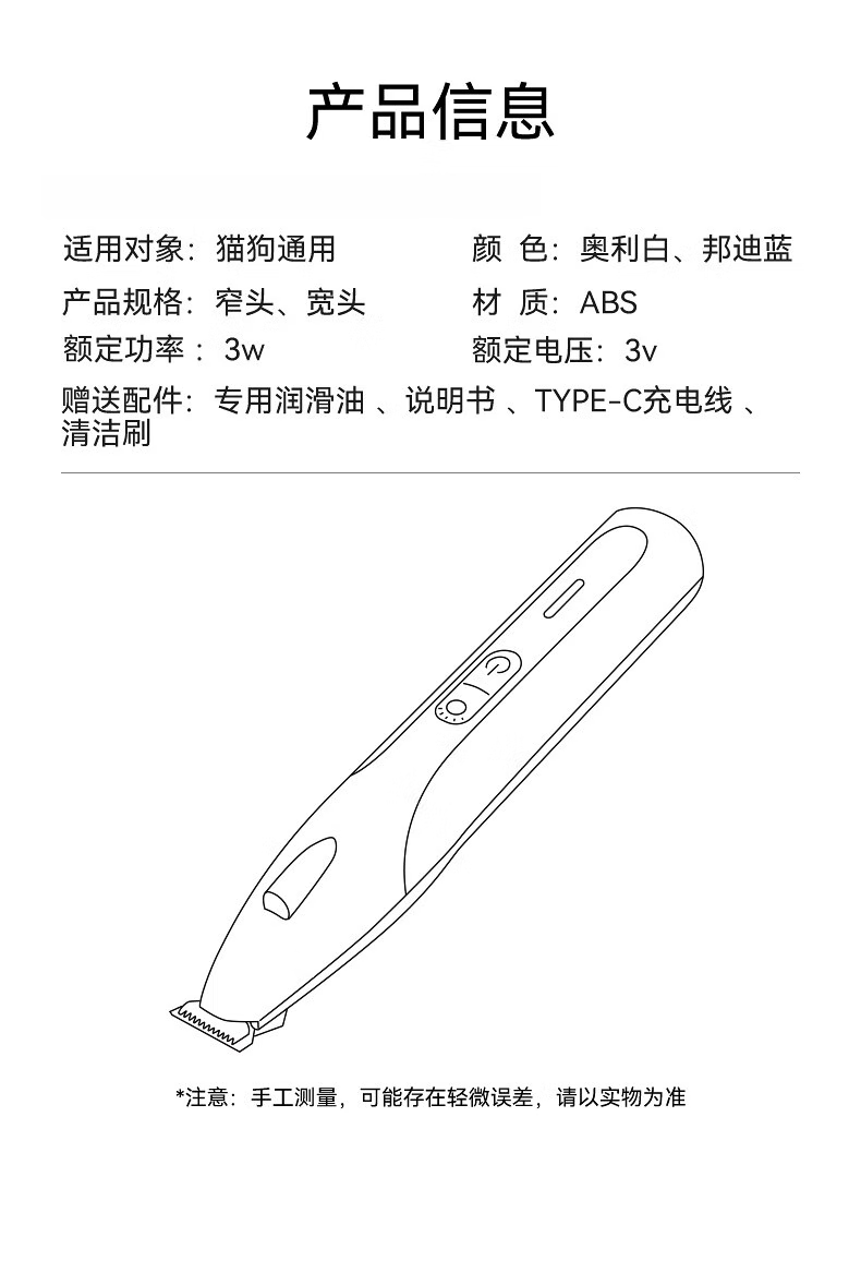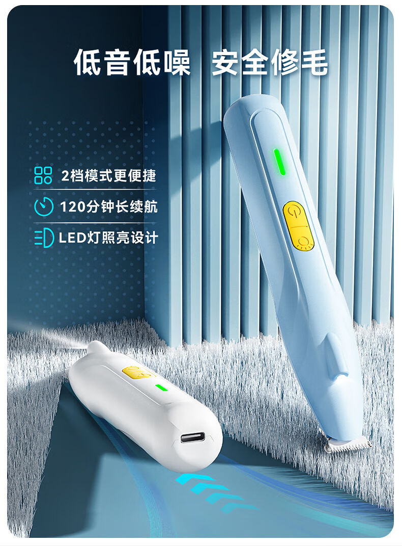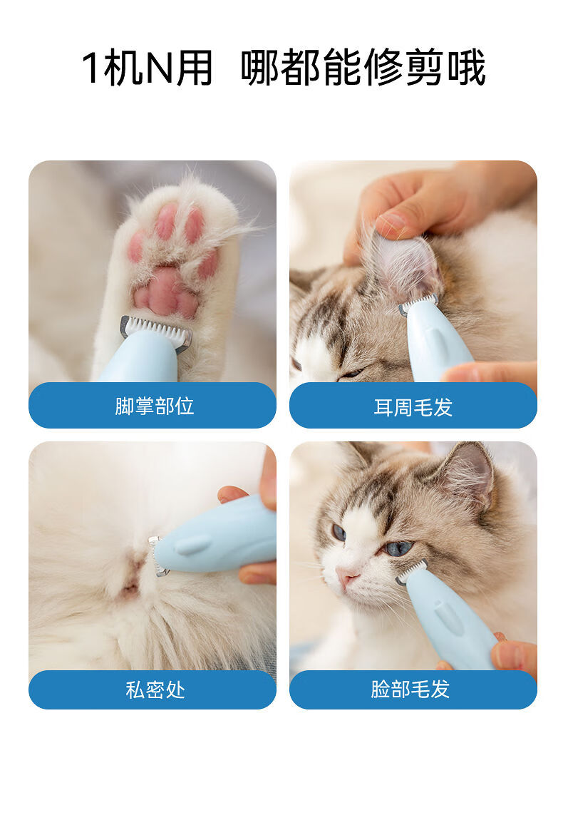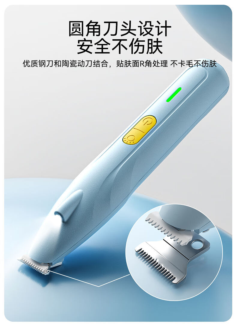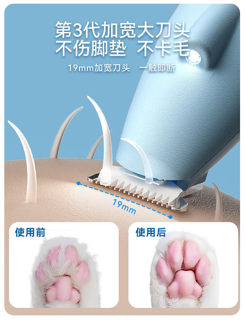 OUOETY pet shaver, cat foot shaver, cat hair clipper, hair clipper for dogs, sole trimmer for dog hair, LED charging model with light - Bondi blue, upgraded and widened