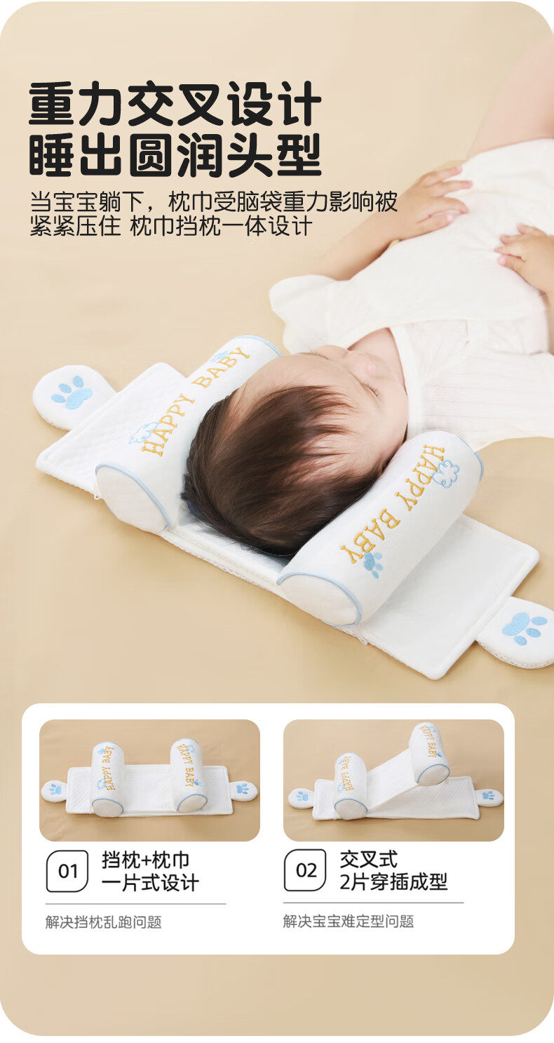Manletu Baby Shaping Pillow Newborn Head Shape Correction 0-1 Years Old Adjustable Soothing Sleeping Artifact Bear Print (Gravity Cross Design + Adjustable)
