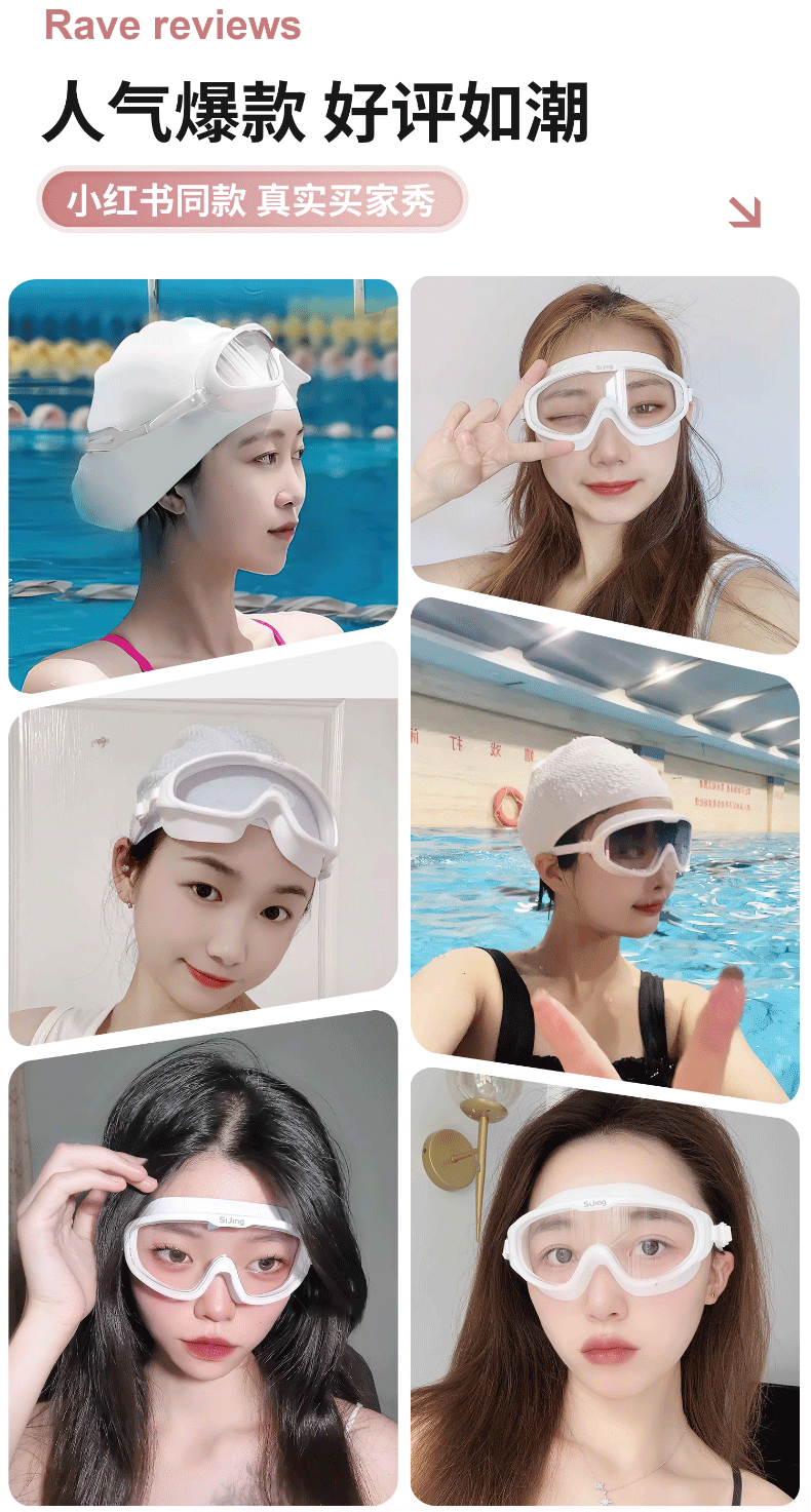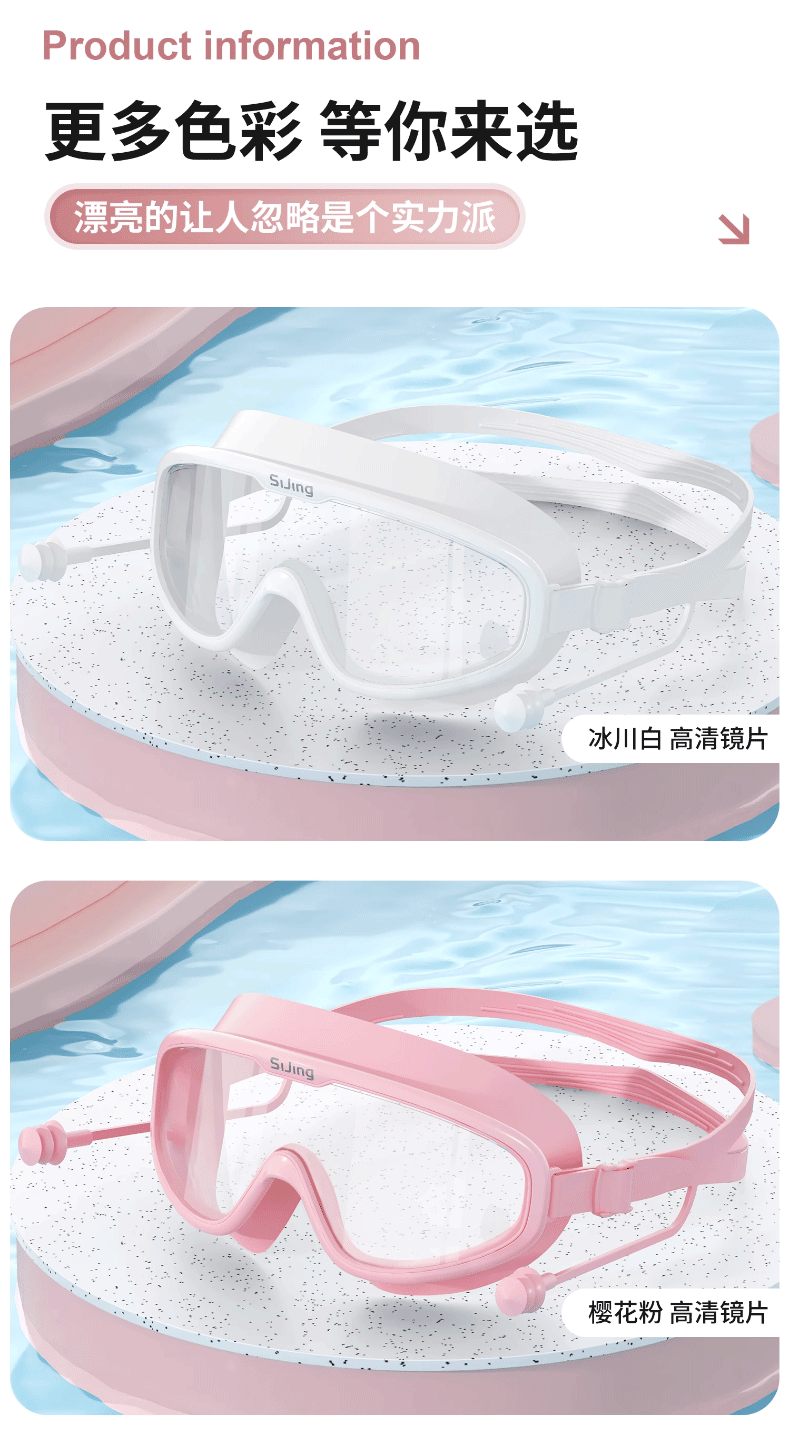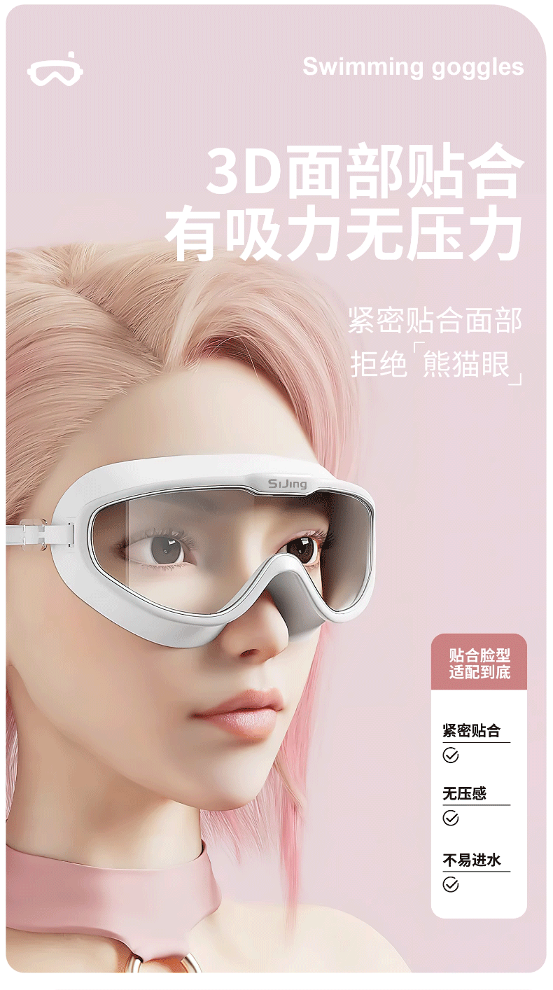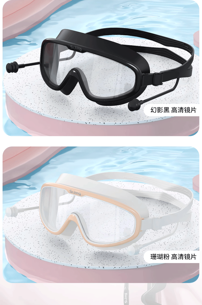 Silent swimming goggles waterproof and anti-fog high-definition professional men and women large-frame myopia swimming goggles children's diving cap set equipment adult glacier white (waterproof and anti-fog) basic package