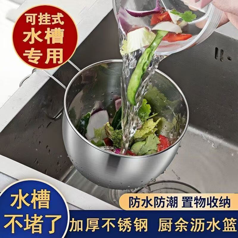 Kitchen sink stainless steel drain basket can be hung to wash vegetables and fruits, chopsticks and spoon basket to filter food residue and tea leaves, sink hanging drain rack, 1 pack