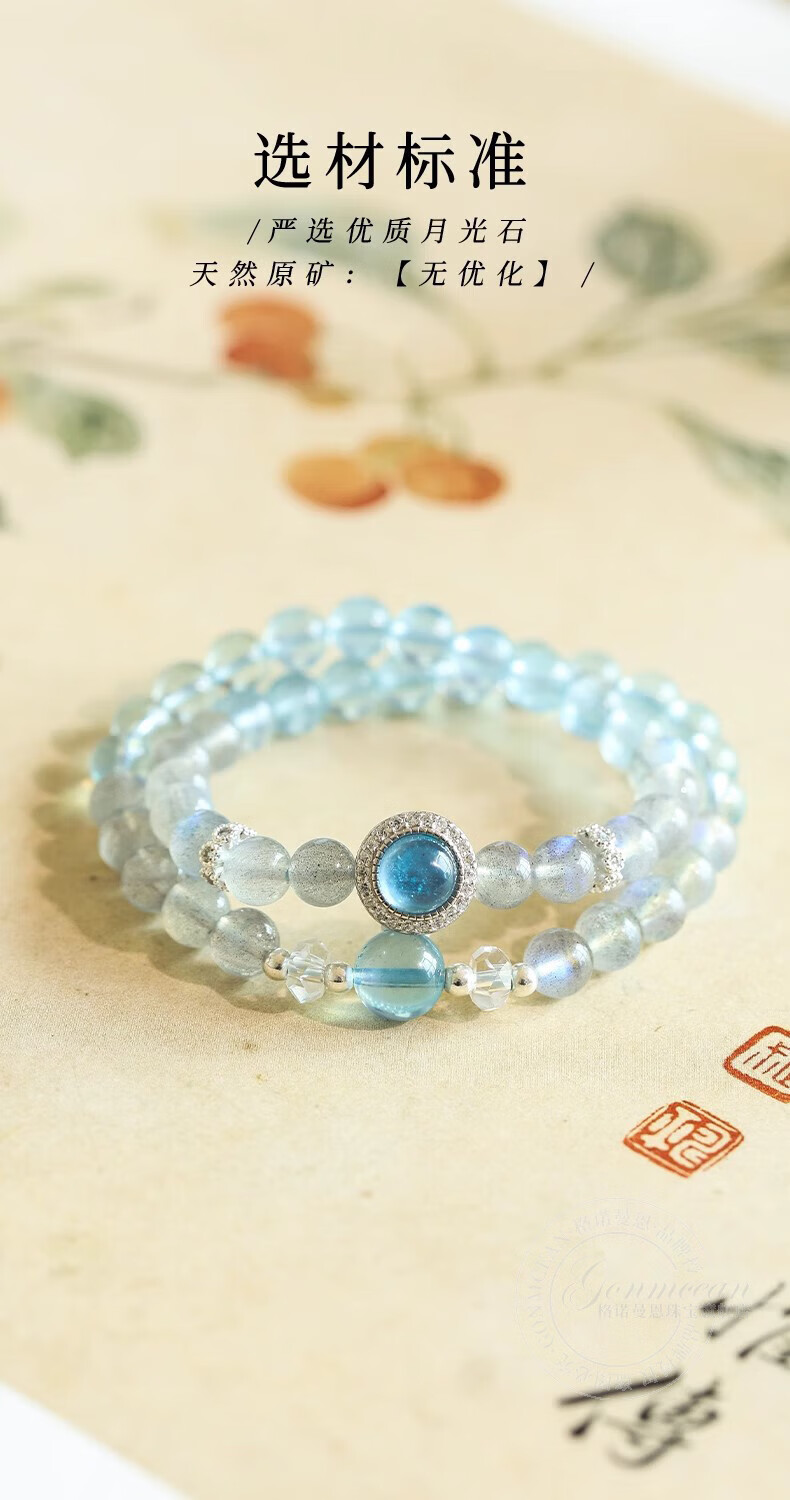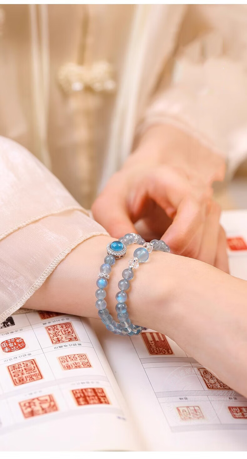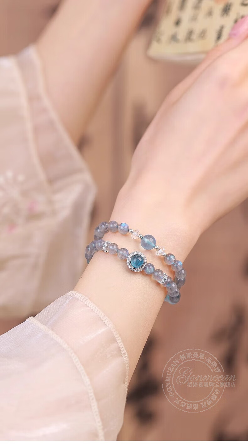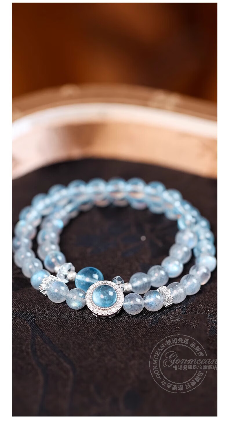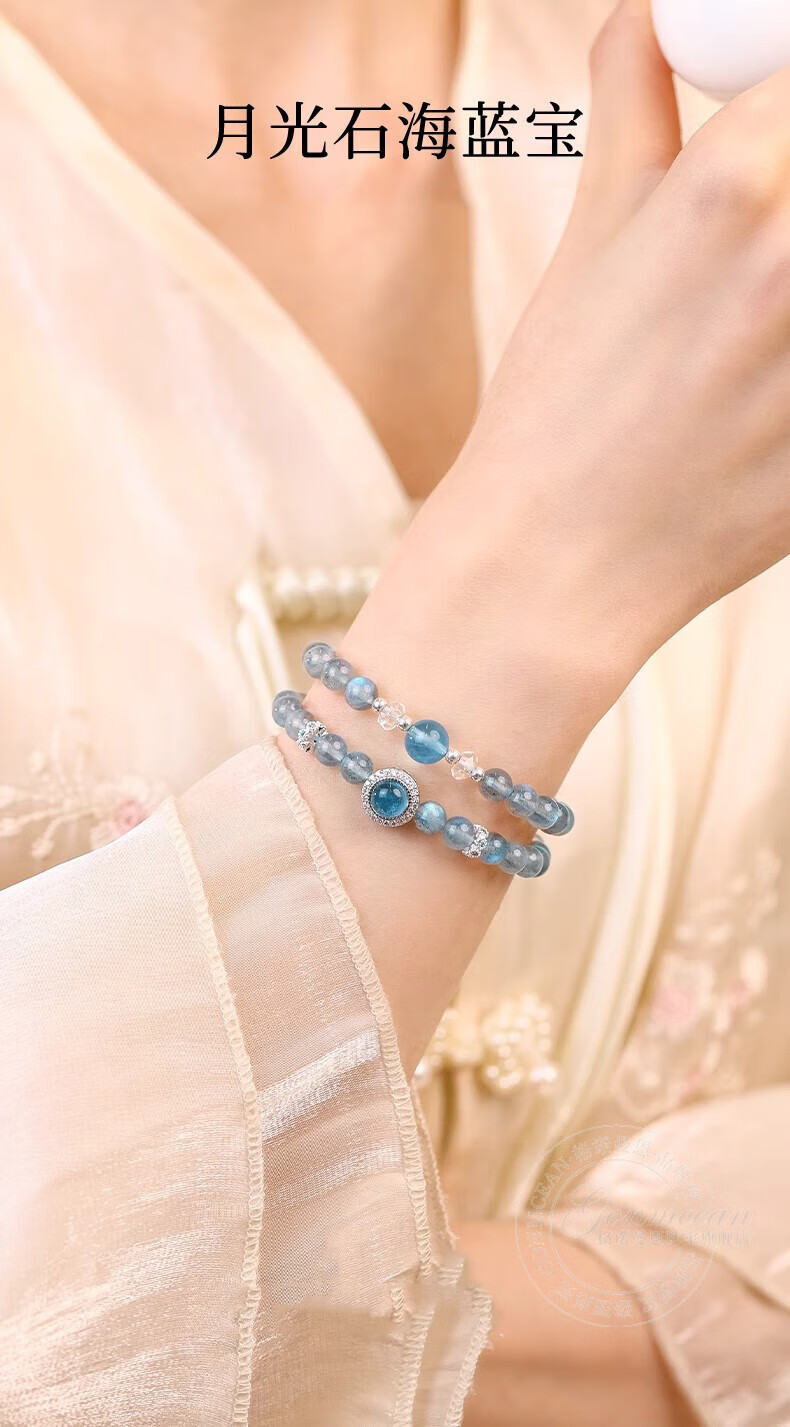 Genomanman natural moonstone aquamarine double circle bracelet women's blue crystal bracelet beaded hand decoration beads 8mm