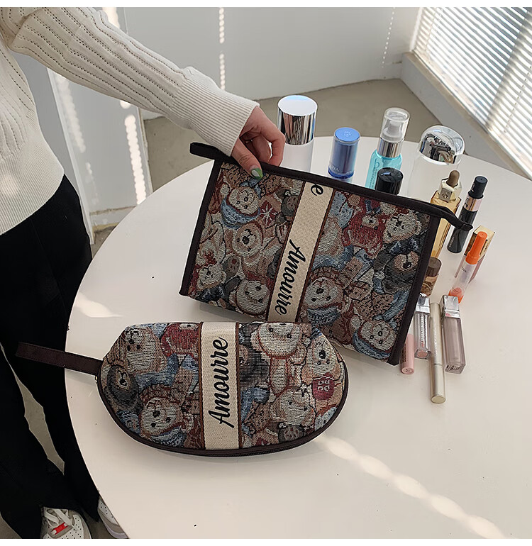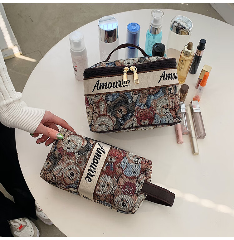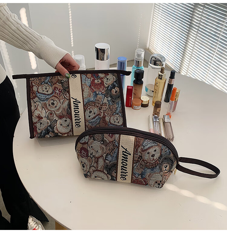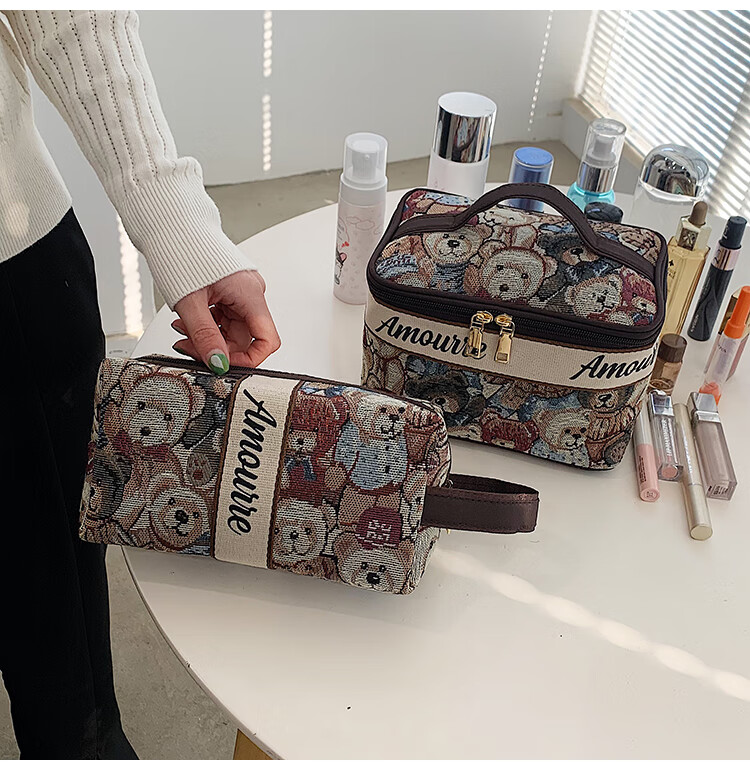 Cute Cartoon Bear Cosmetic Bag Large Capacity Portable Toiletries Bag Travel Storage Bag Portable Clutch Storage Bag Style 1