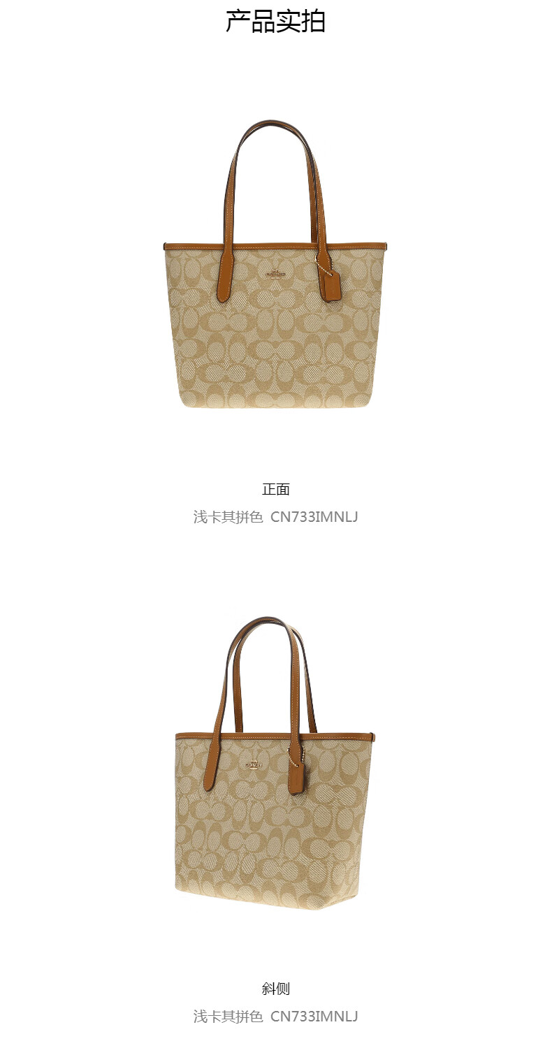 COACH/Coach Women's Bag Women's Tote Bag Large Capacity Shoulder Portable Commuting Bag Gift for Girls Khaki CN733IMNLJ