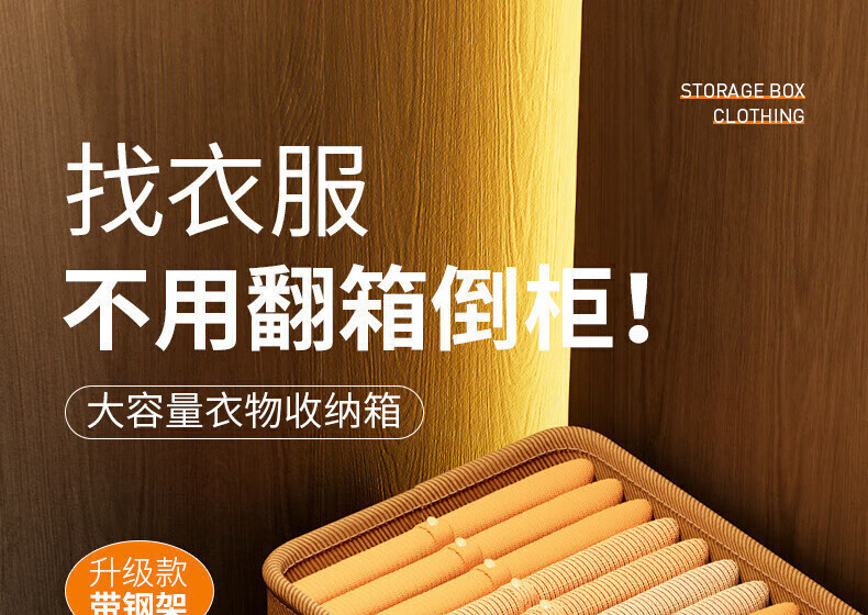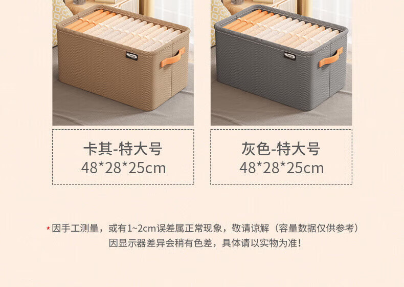 Clothes storage box household foldable fabric storage box wardrobe clothing large capacity storage box dormitory steel frame upgrade gray extra large 47*28*20