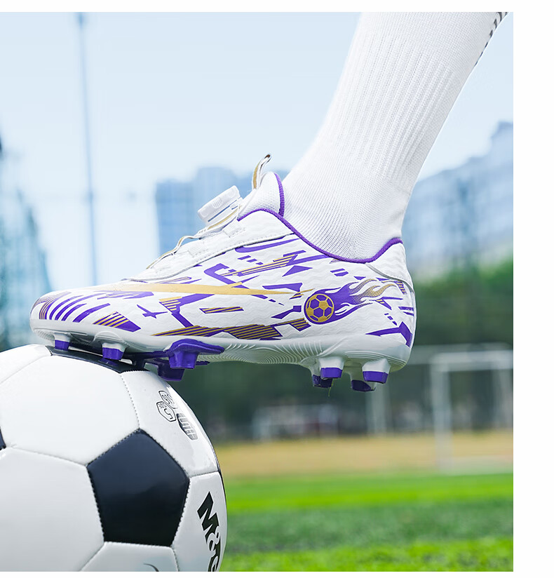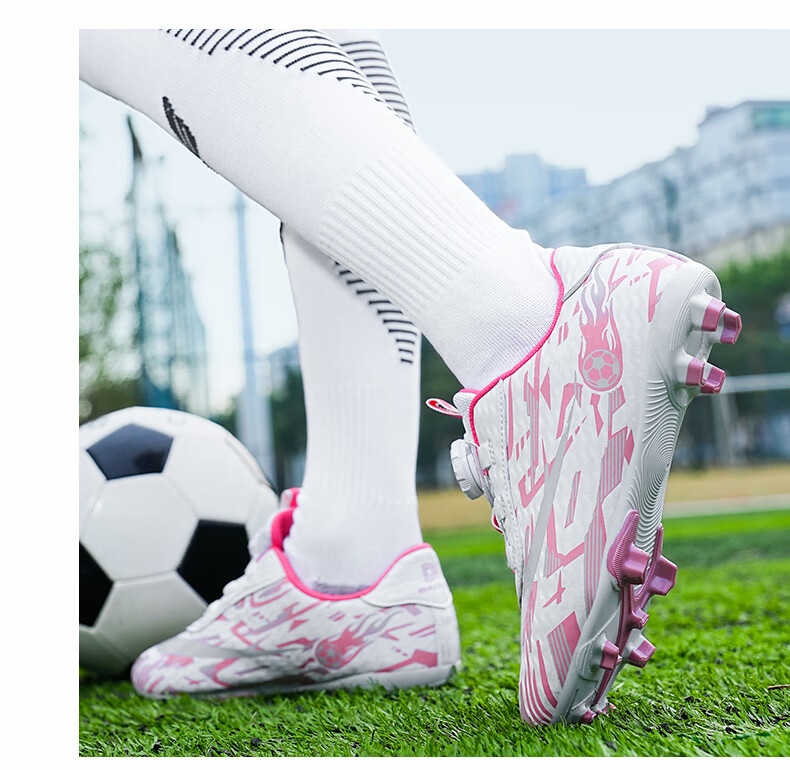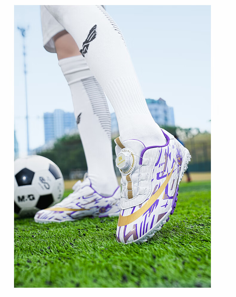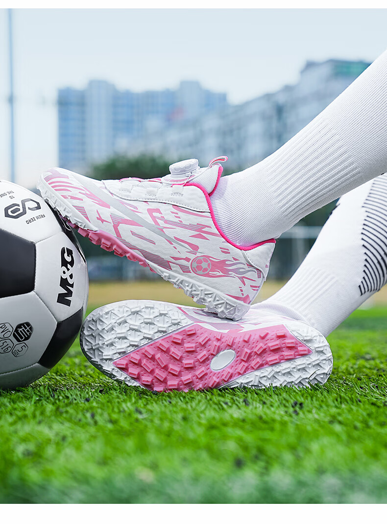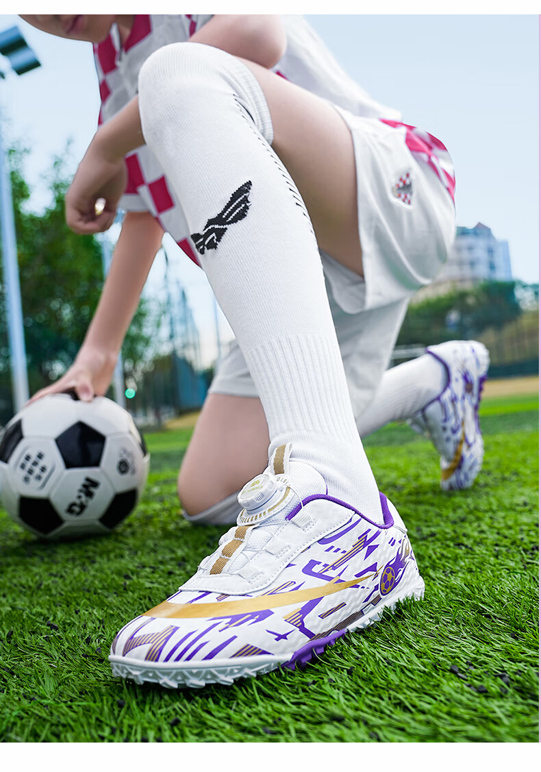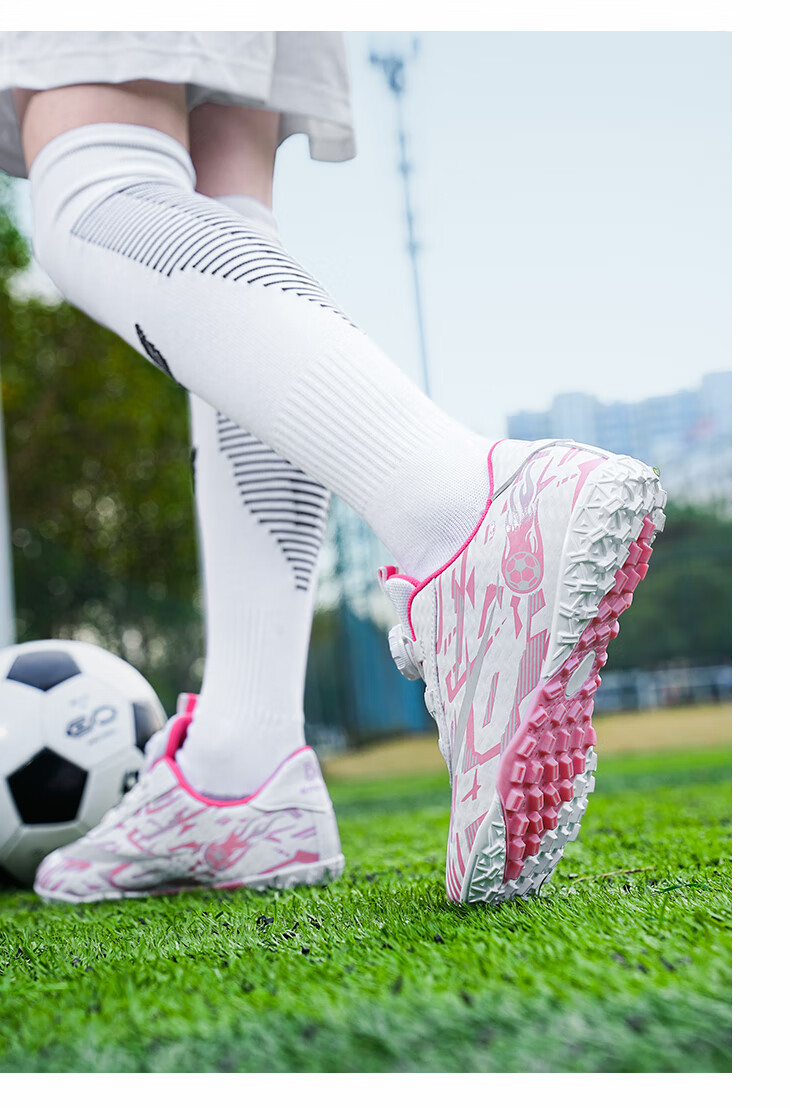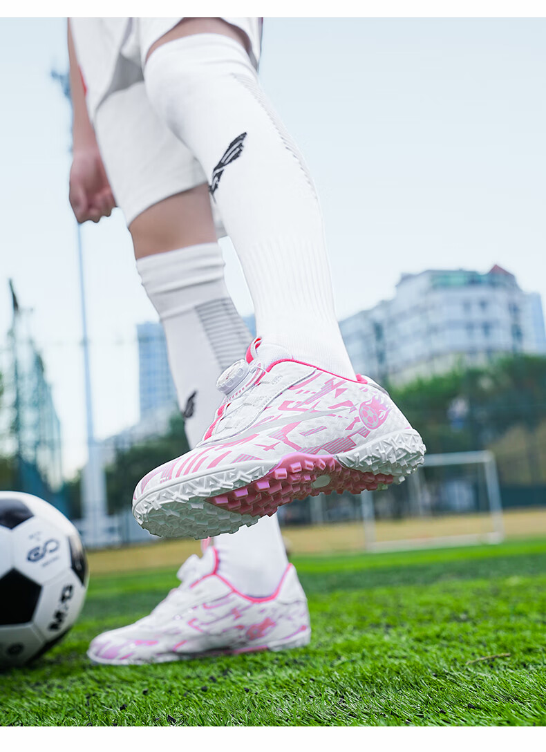 2025 spring and summer style rotating button boys and girls non-slip breathable football shoes youth competition training shoes football shoes broken nails-white powder 37