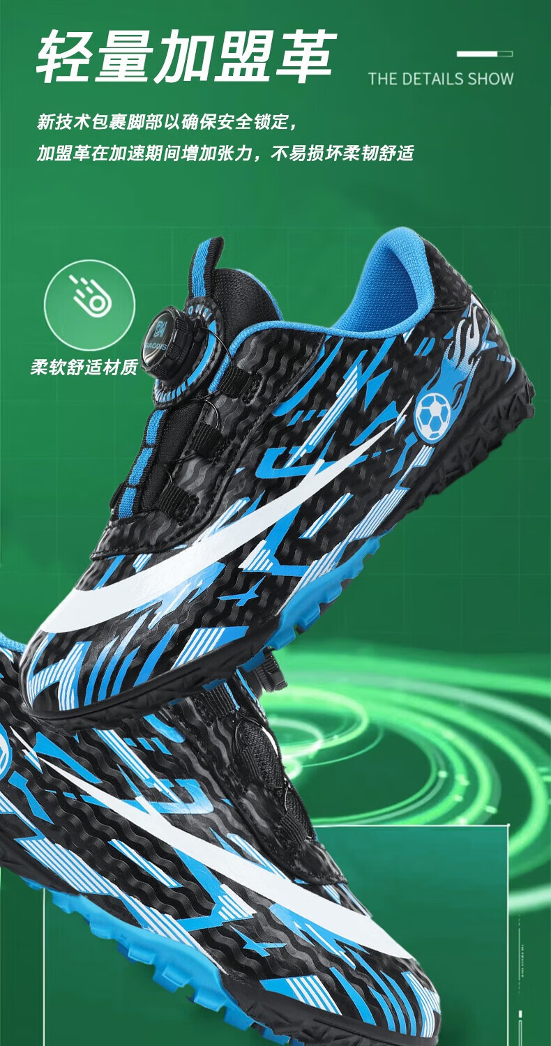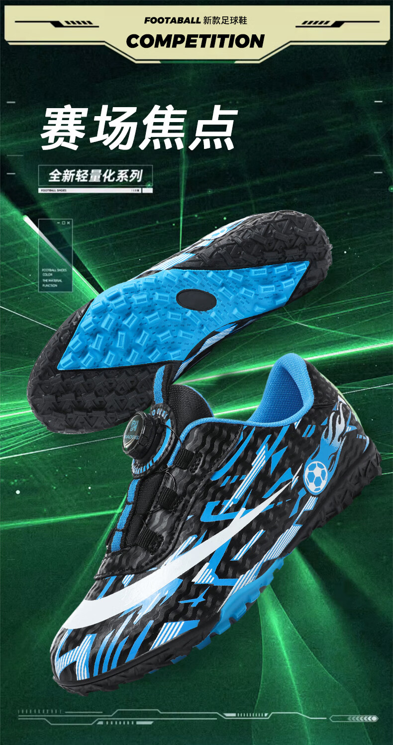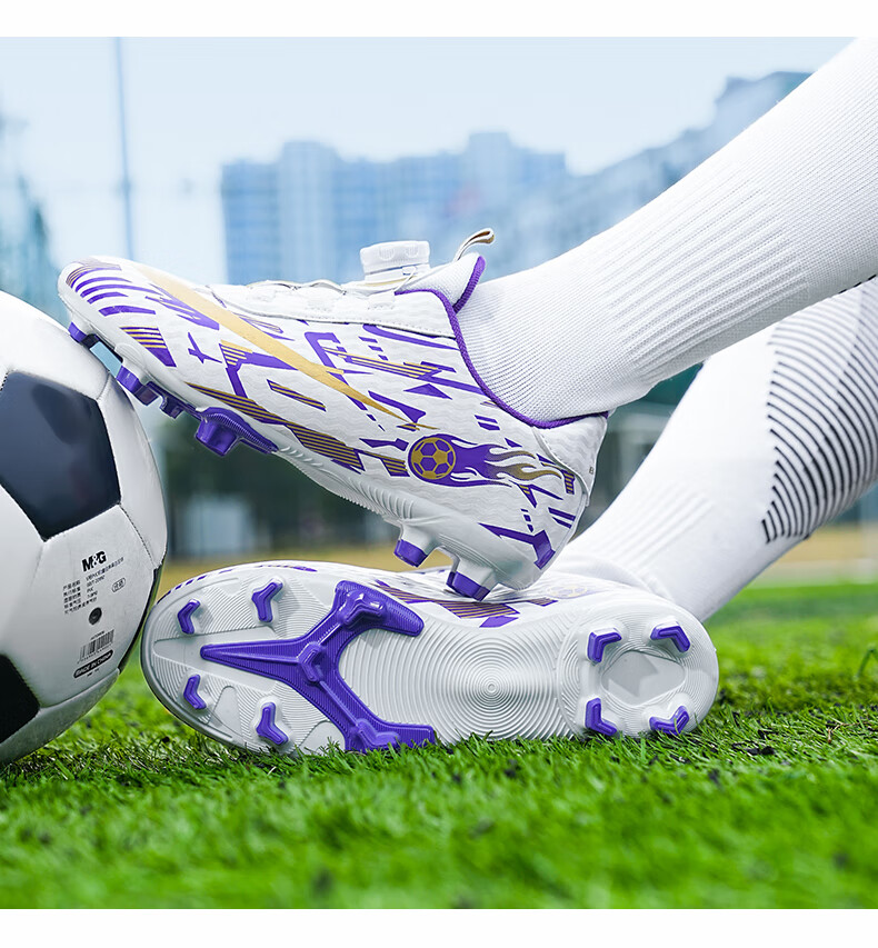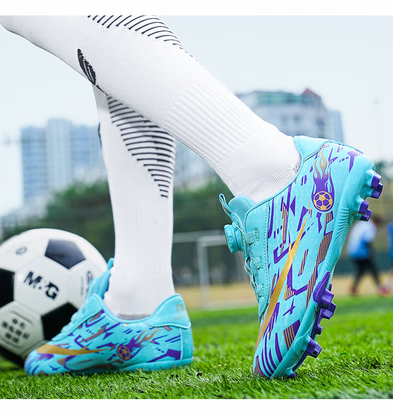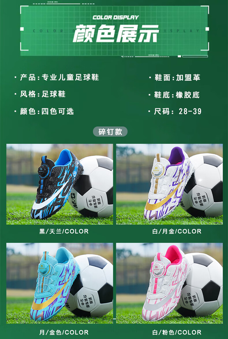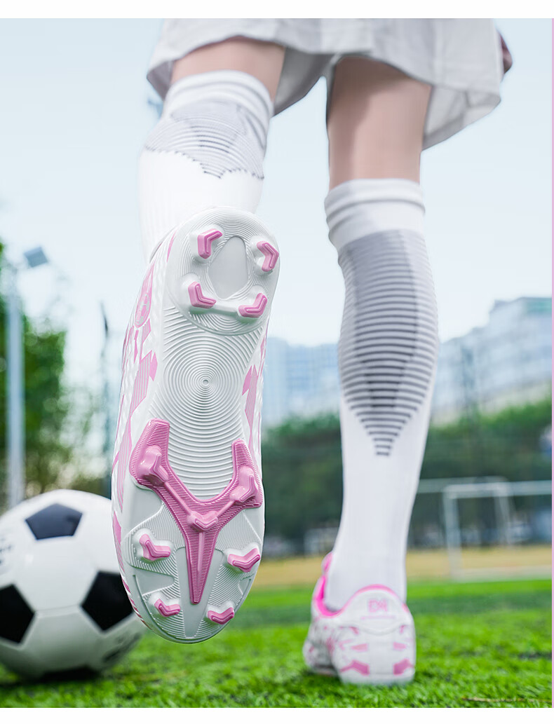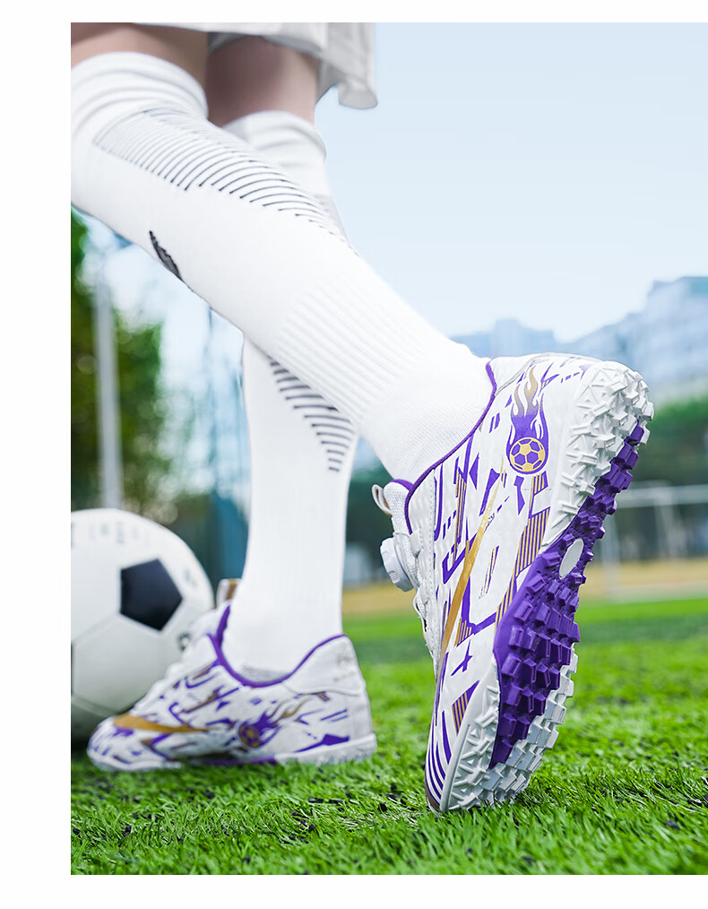 2025 spring and summer style rotating button boys and girls non-slip breathable football shoes youth competition training shoes football shoes broken nails-white powder 37