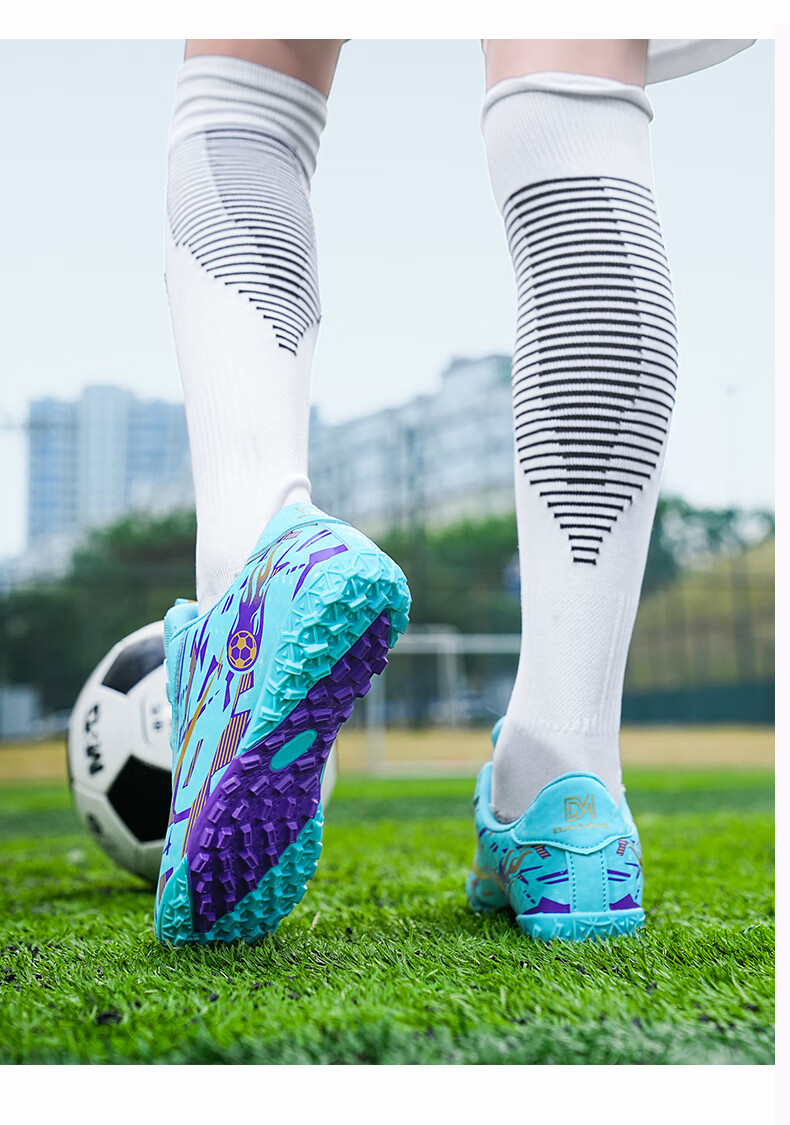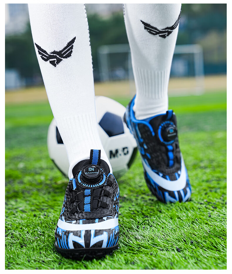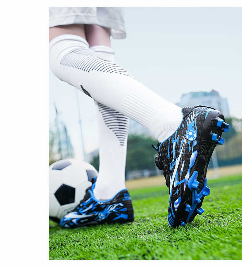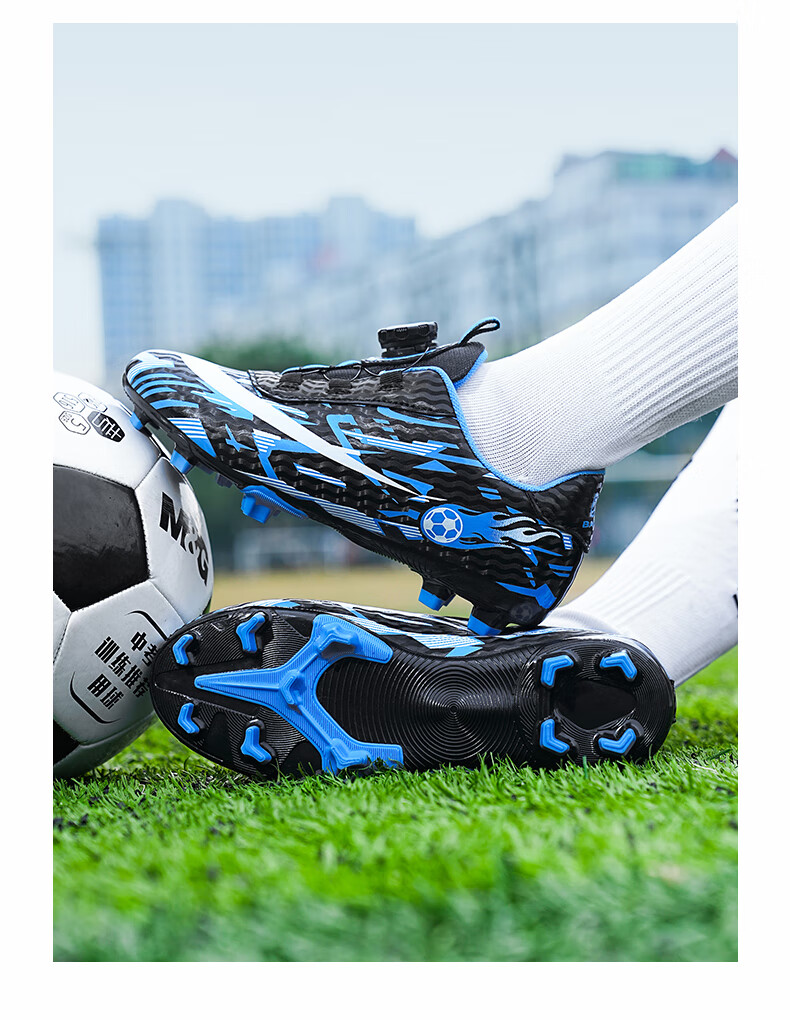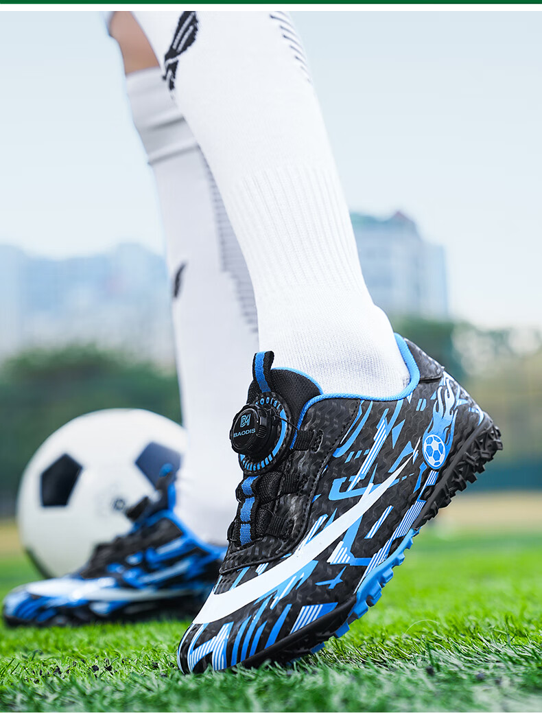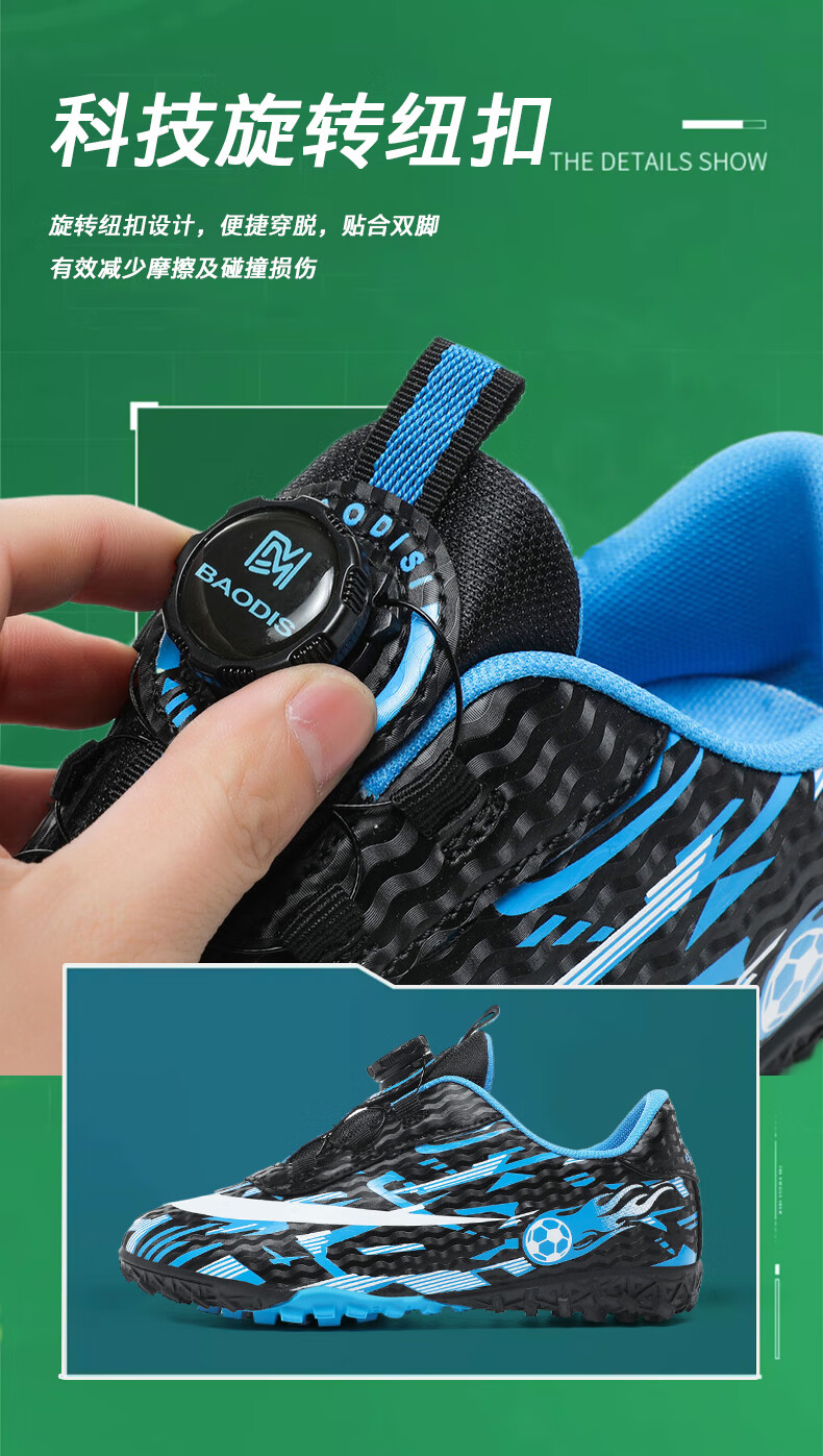 2025 spring and summer style rotating button boys and girls non-slip breathable football shoes youth competition training shoes football shoes broken nails-white powder 37
