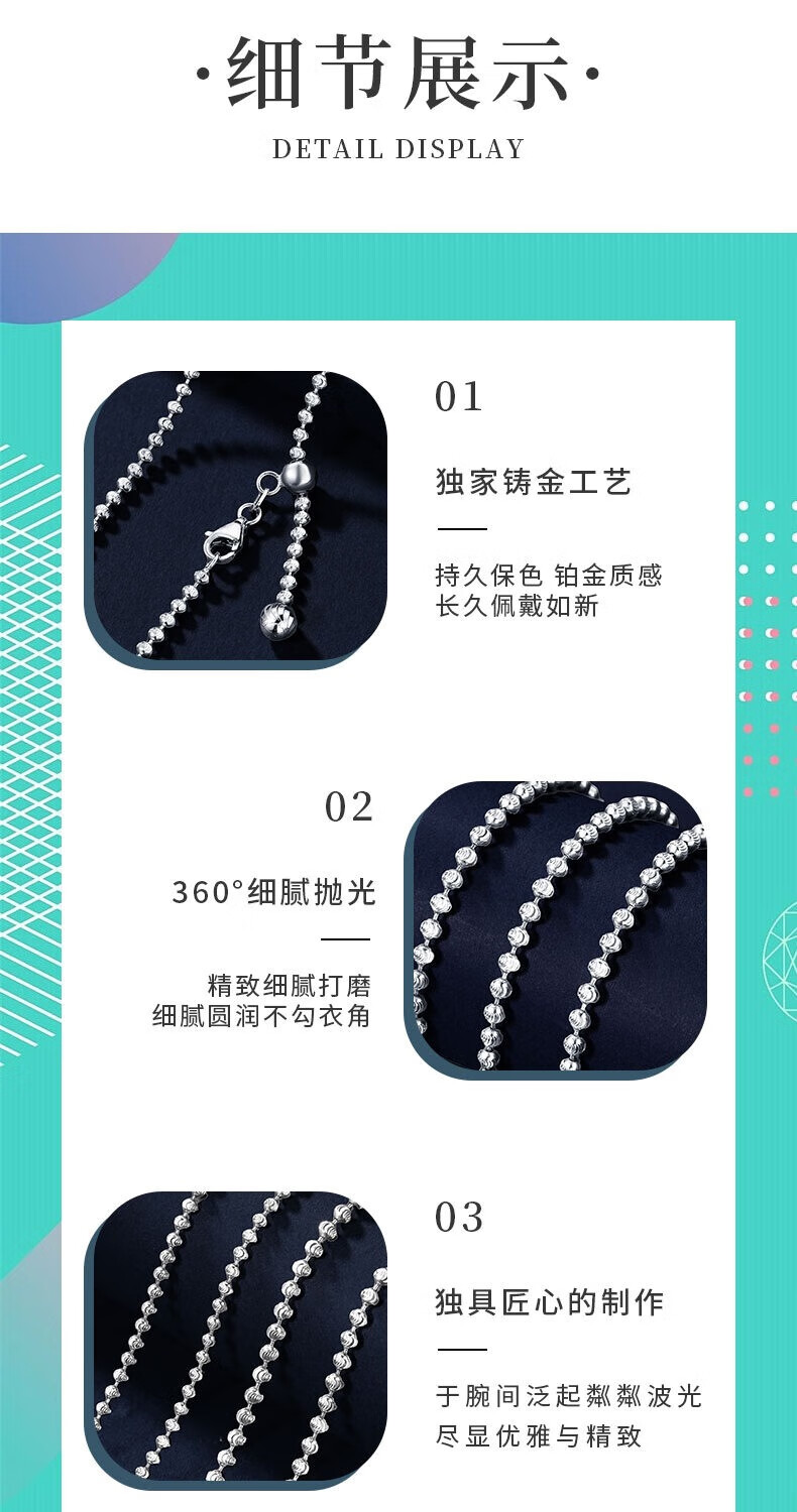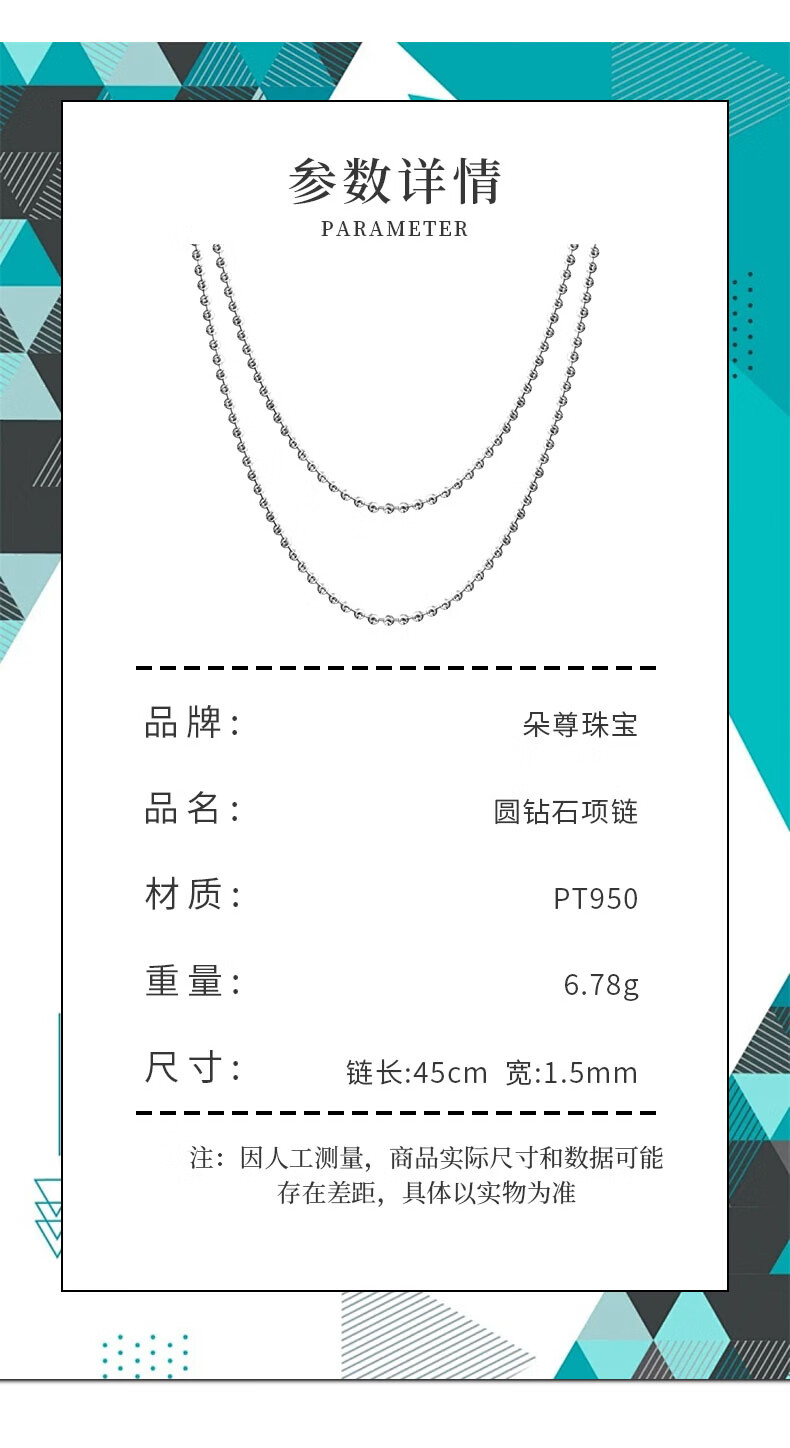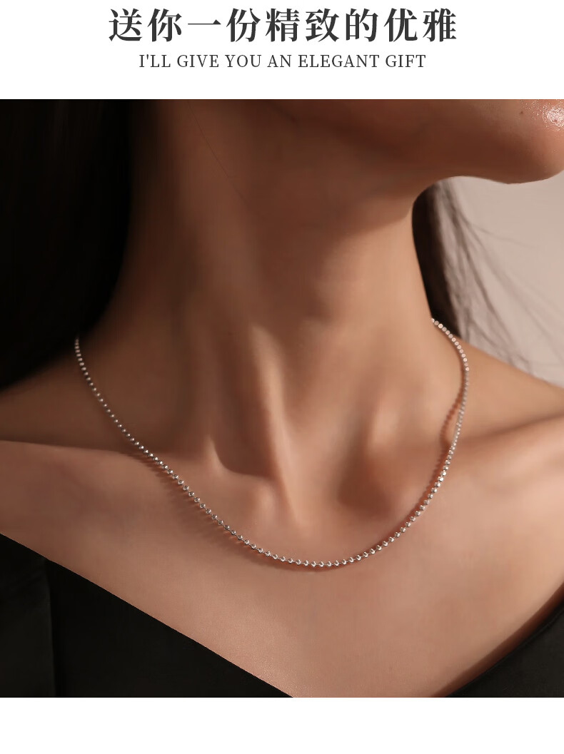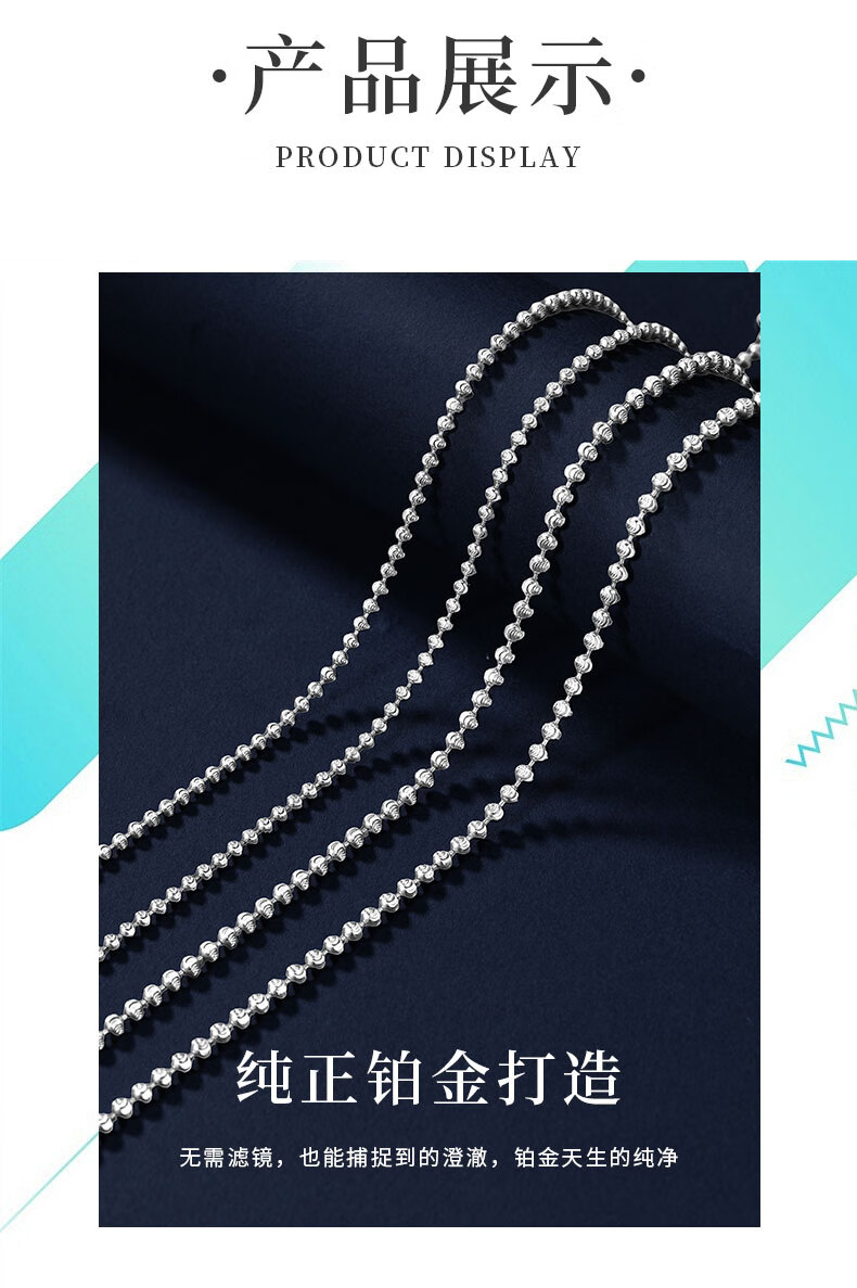 Duozun pt950 platinum necklace for women, sparkling bead chain, platinum diamond necklace, plain chain, sweater chain, women's Chinese Valentine's Day gift, length 50cm, 8.1g, thickness about 1.8mm, adjustable