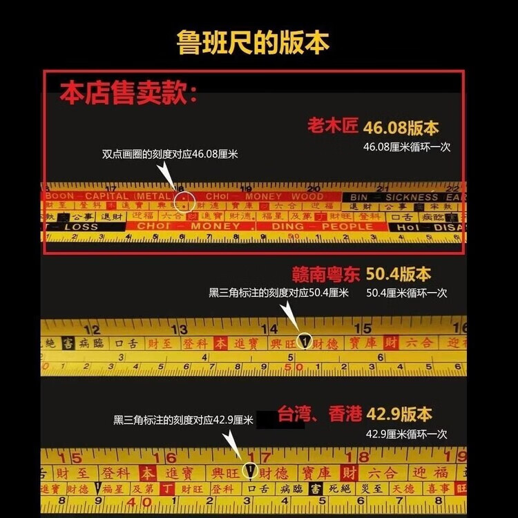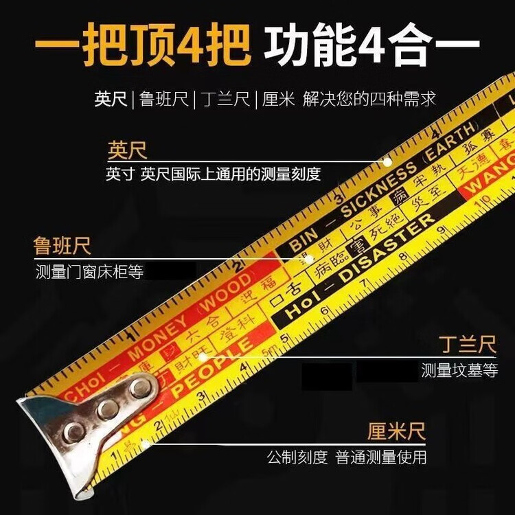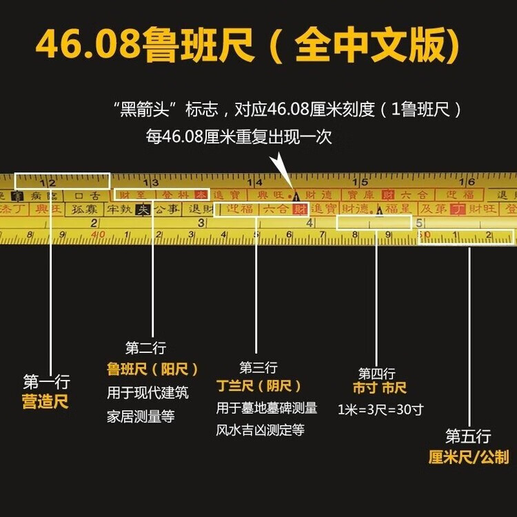 Luban ruler gate auspicious number comparison table authentic Forbidden City old model 4608 Feng Shui Yin and Yang ruler door light ruler 42.9 version thickened 46.08 Chinese and English ruler with 7.5 meters with storage box