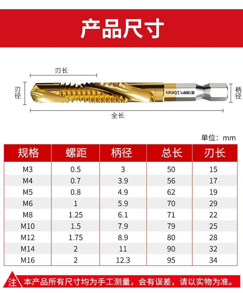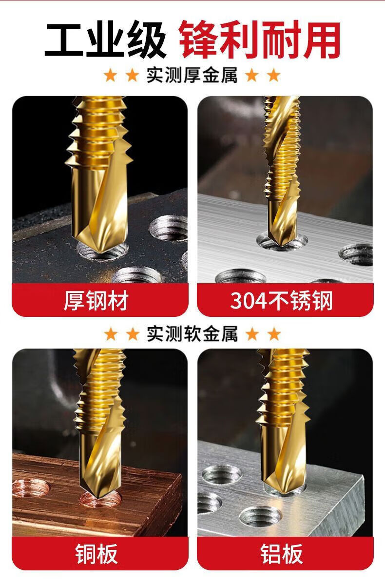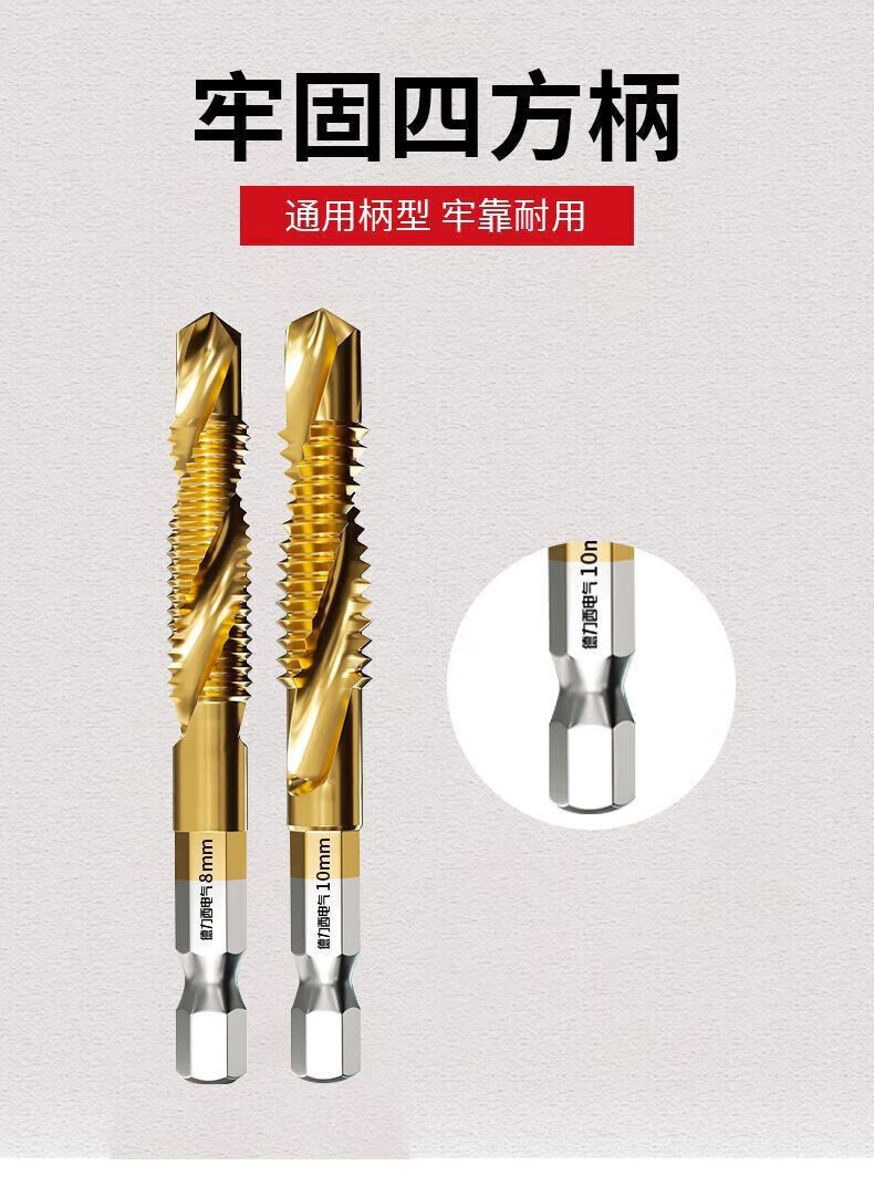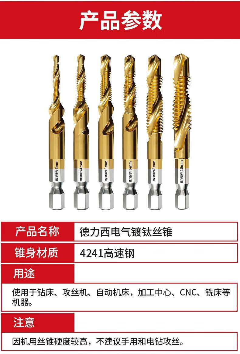 Delixi Electric titanium-plated composite wire tapping taper drill and punching hole integrated hexagonal threaded drill bit tapping self-tapping screw high-speed steel 3+4+5+6+8+10 6 pieces in total