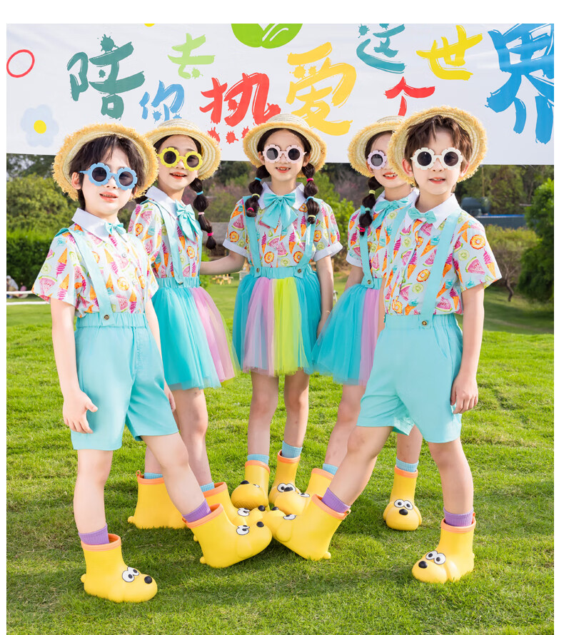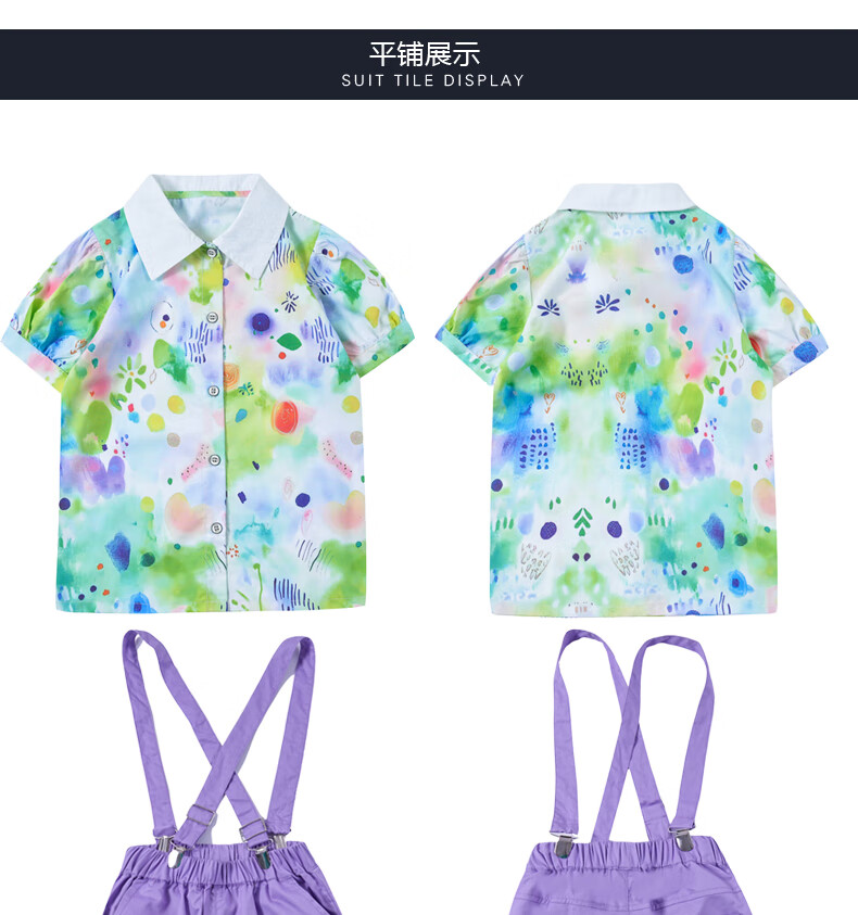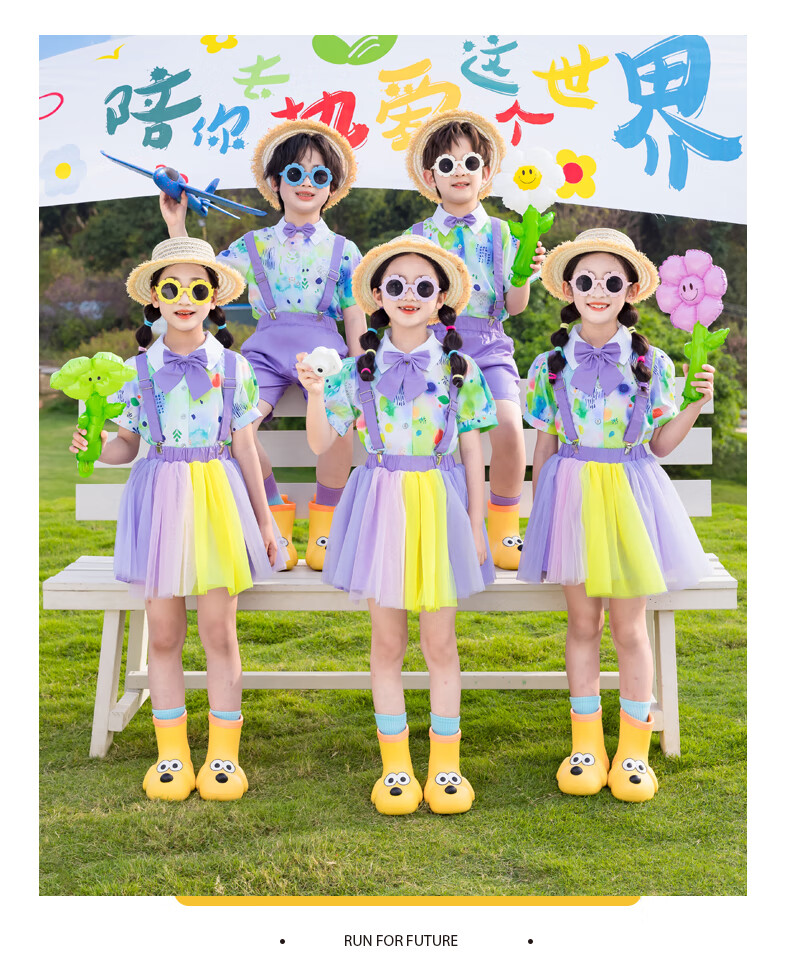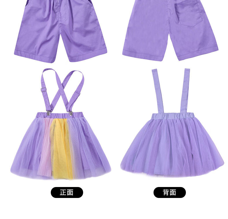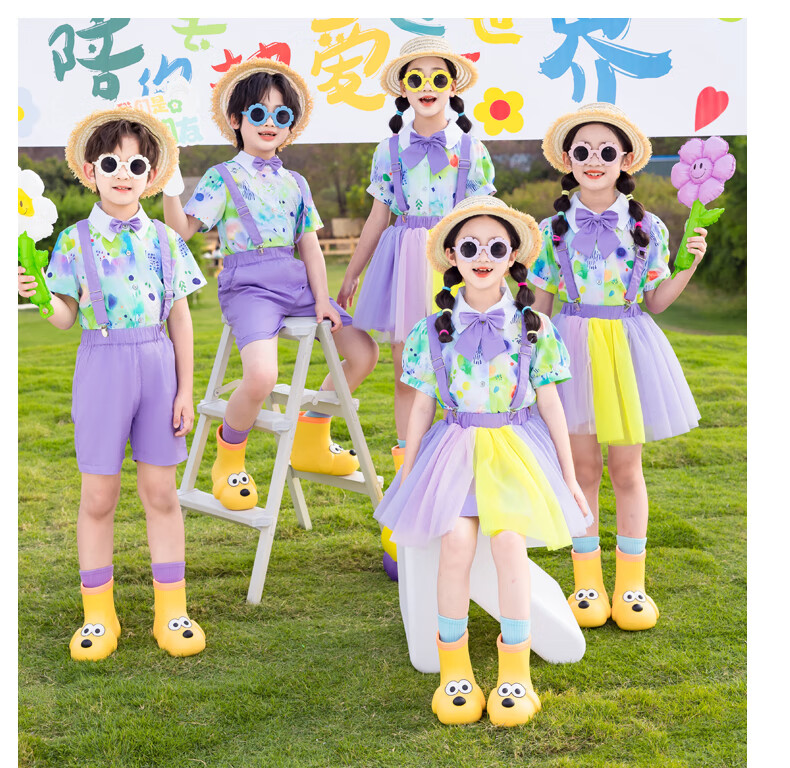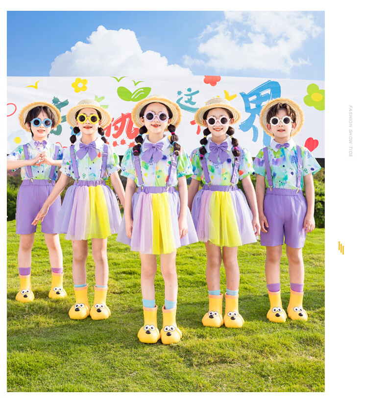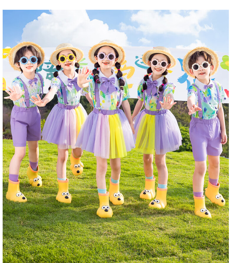 Tongran Children's Performance Costumes Kindergarten Graduation Photo Dance Class Uniforms Primary School Cheerleading Sports Meet Performance Costumes Purple Short Sleeves + Overalls Shorts 130 Sizes