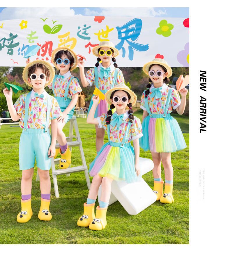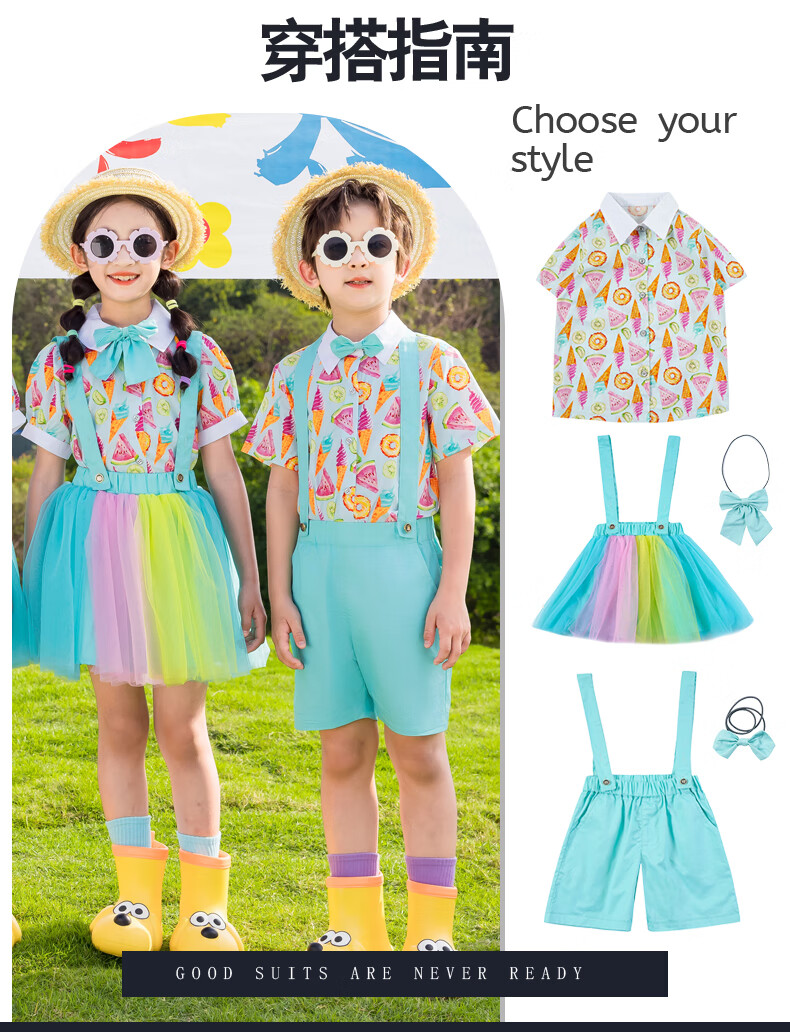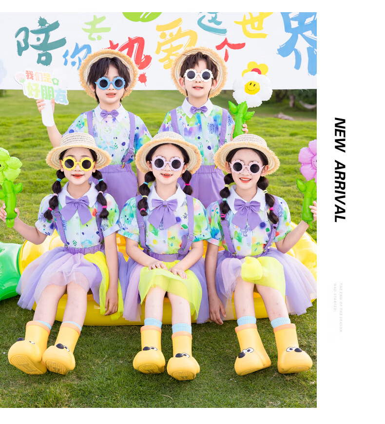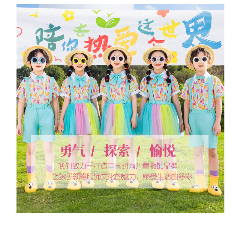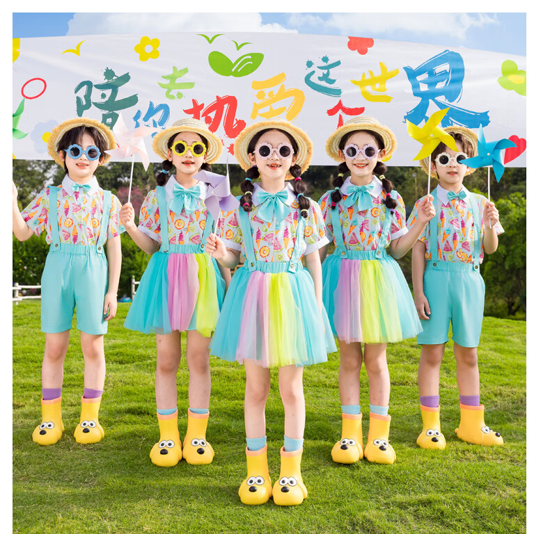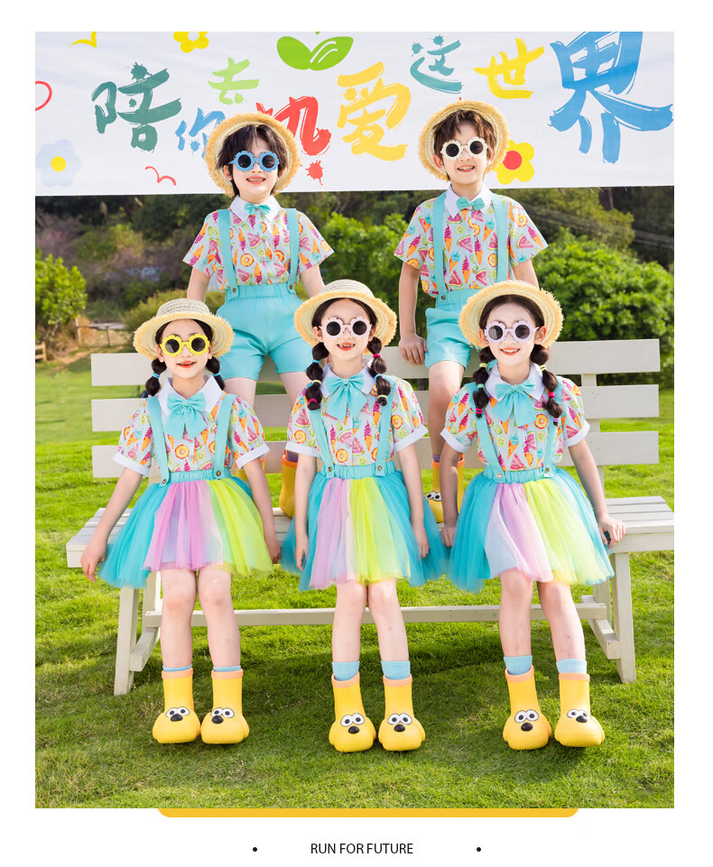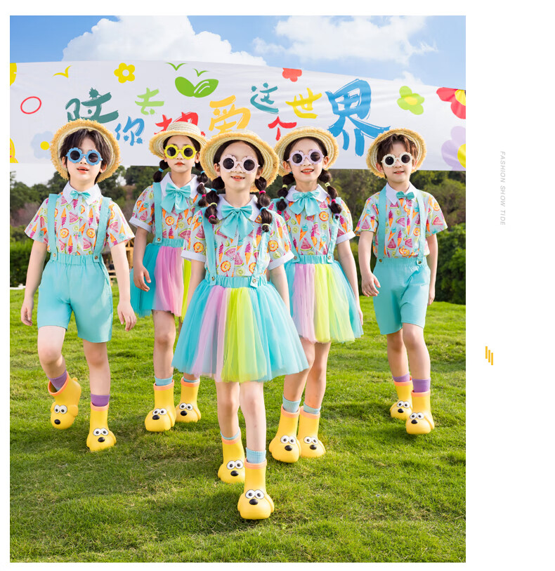 Tongran Children's Performance Costumes Kindergarten Graduation Photo Dance Class Uniforms Primary School Cheerleading Sports Meet Performance Costumes Purple Short Sleeves + Overalls Shorts 130 Sizes
