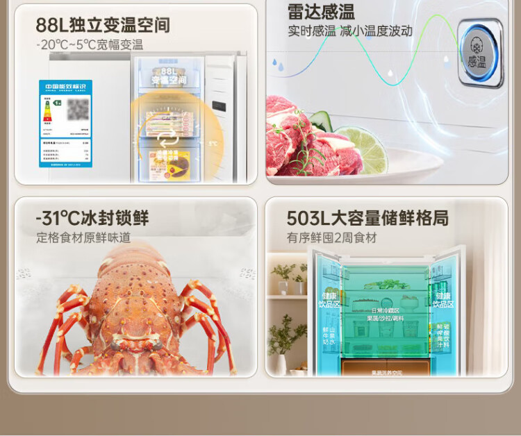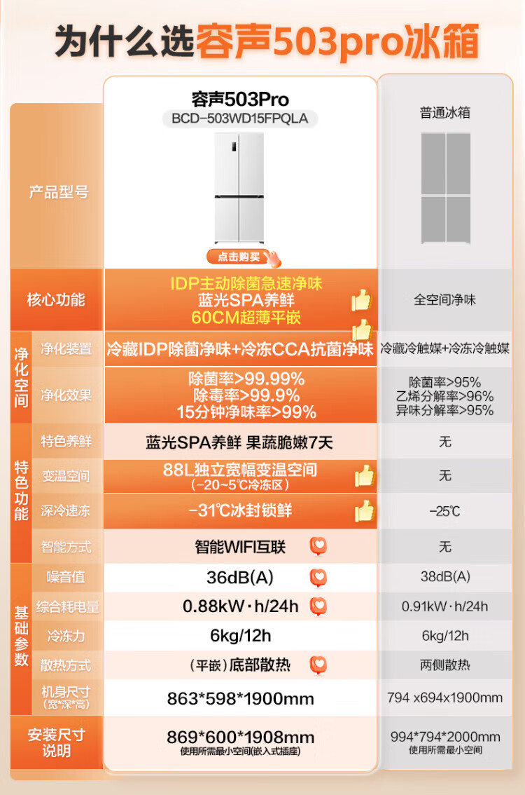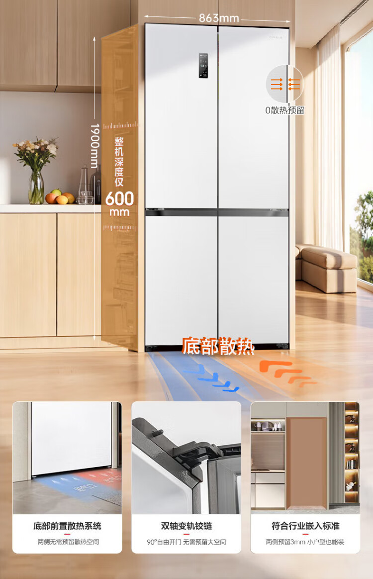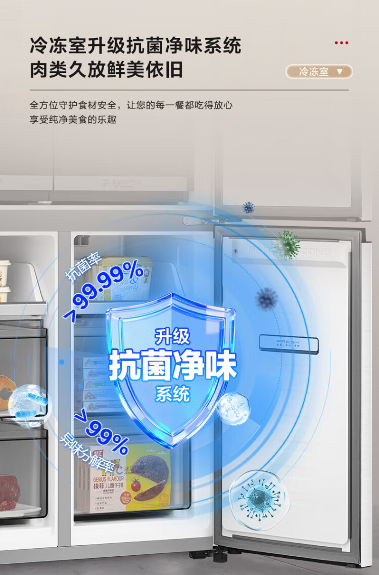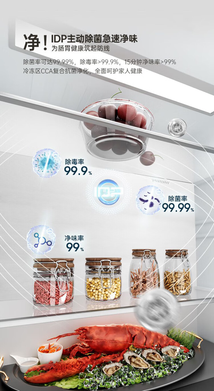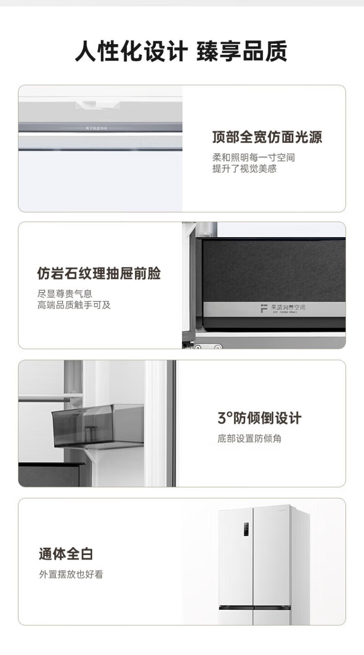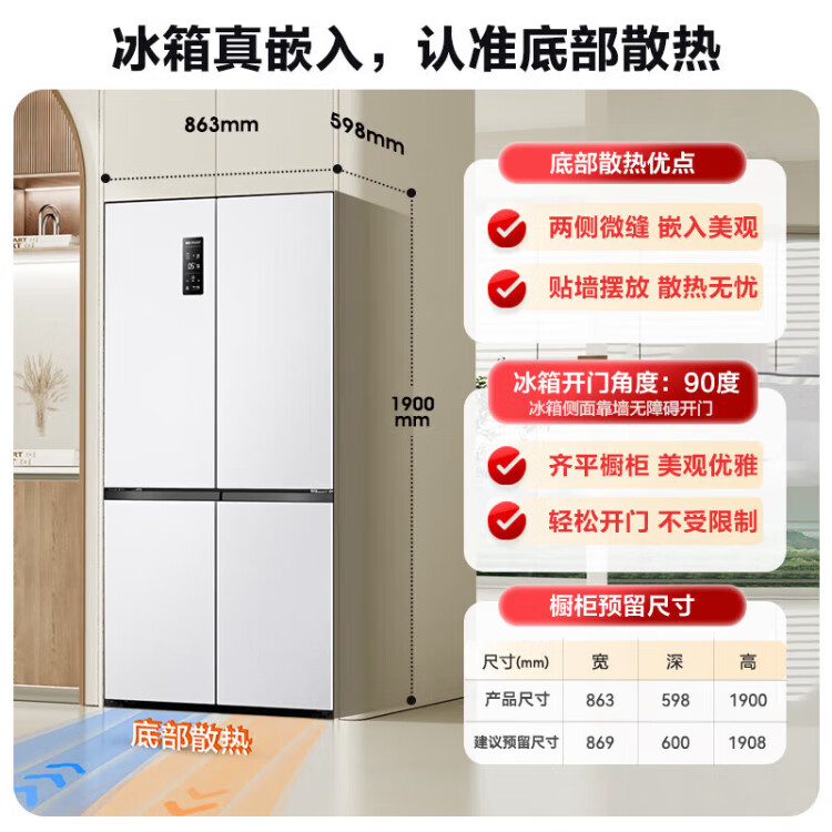 Rongsheng 503proIDP clean smell cross-door four-door household refrigerator thin zero embedded bottom heat dissipation first-class energy efficiency air-cooled frost-free frequency conversion trade-in appliance subsidy IDP blue light freshness BCD-503WD15FPQLA white