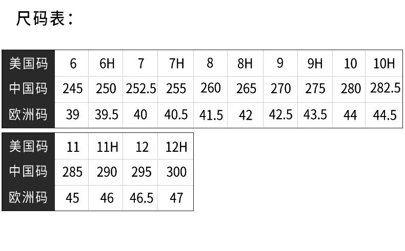 USA 6 7 8 8.5 9.5 10 11 12 12.5 13