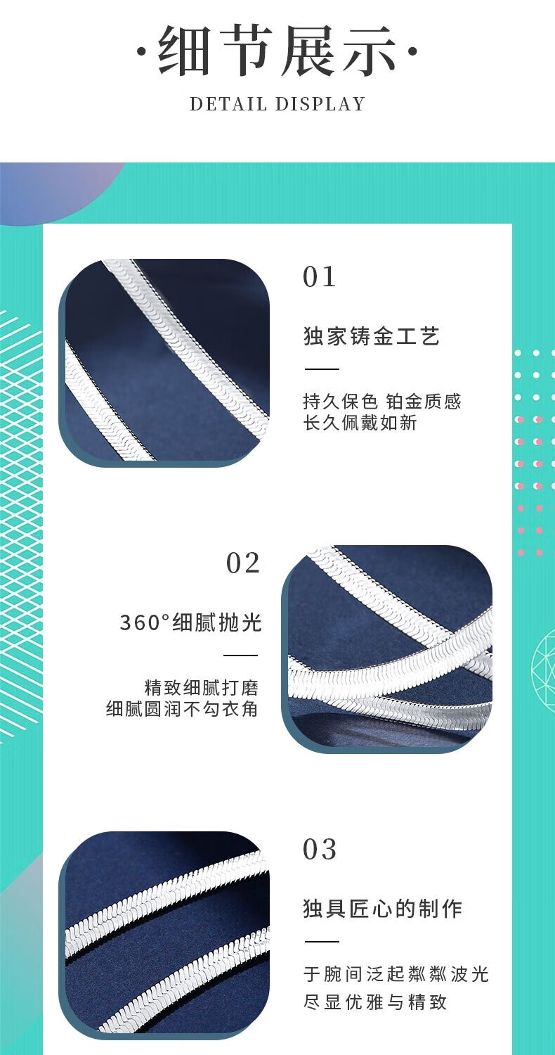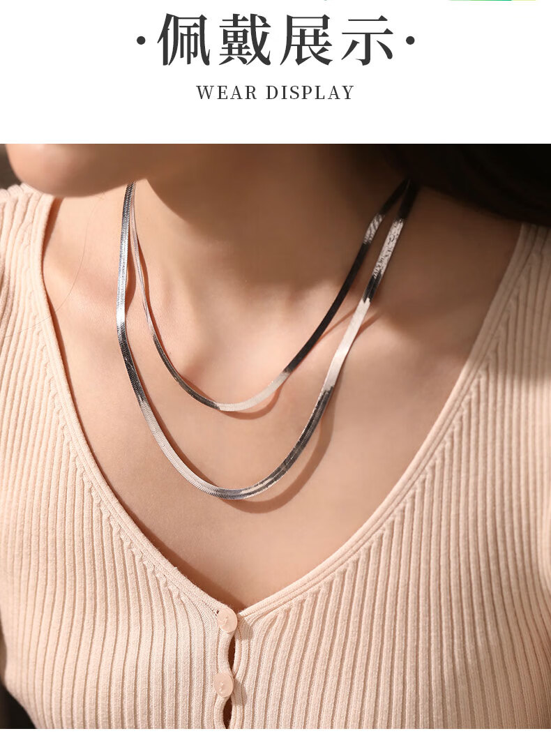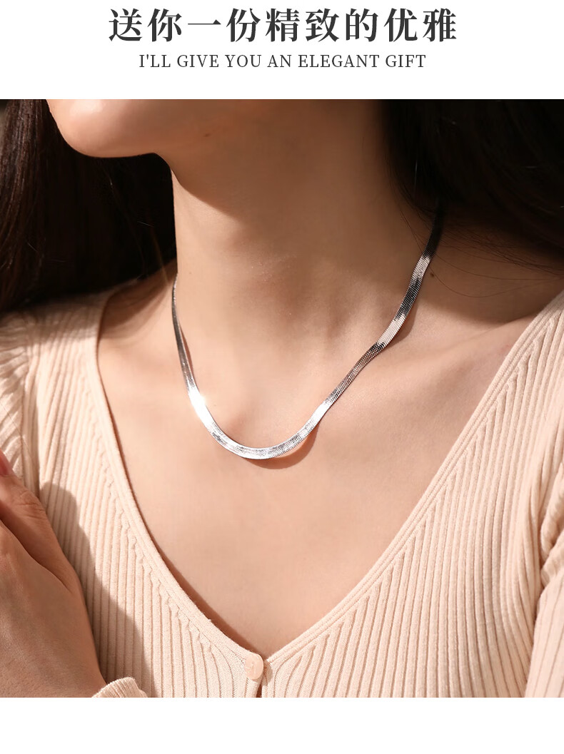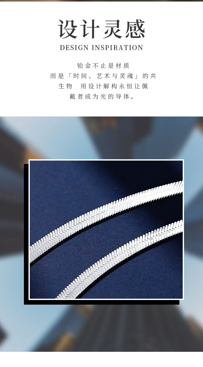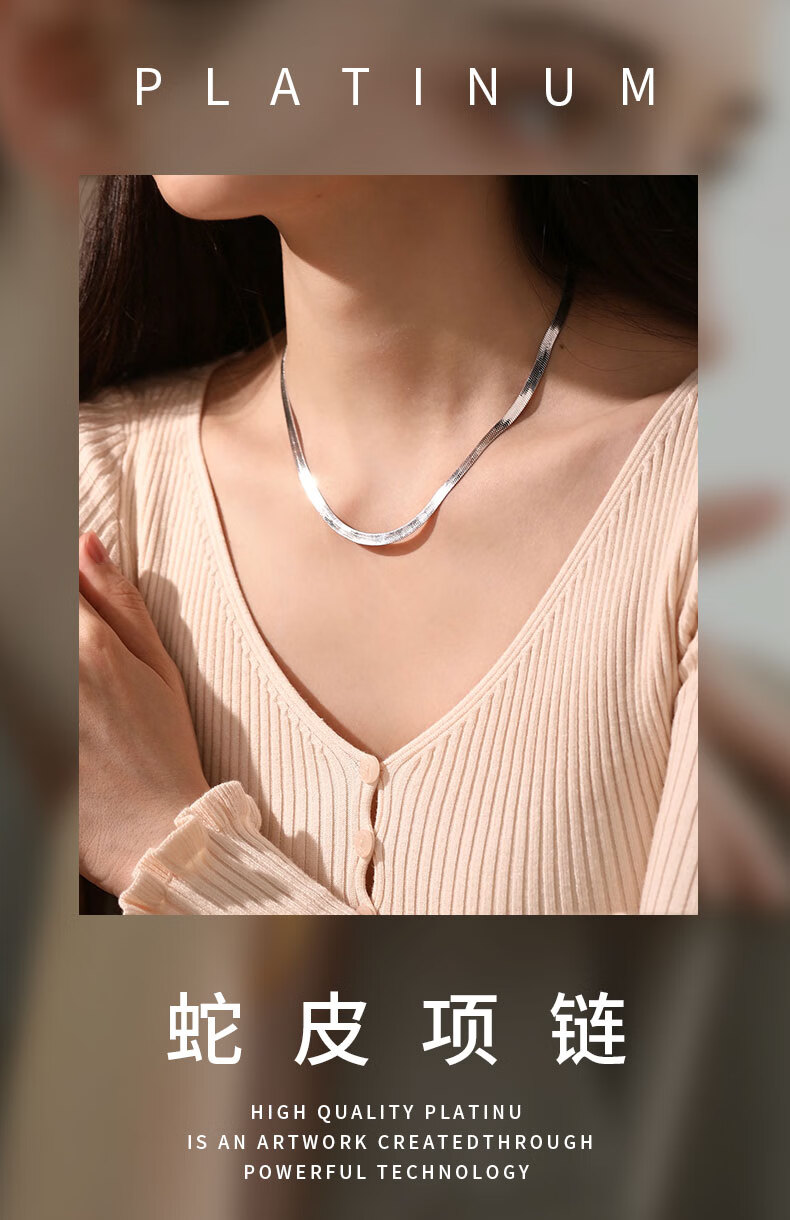 Duozun pt950 platinum necklace women's snakeskin necklace clavicle flat blade chain platinum necklace women's versatile necklace 12.71 grams long 45cm thick about 3.2mm